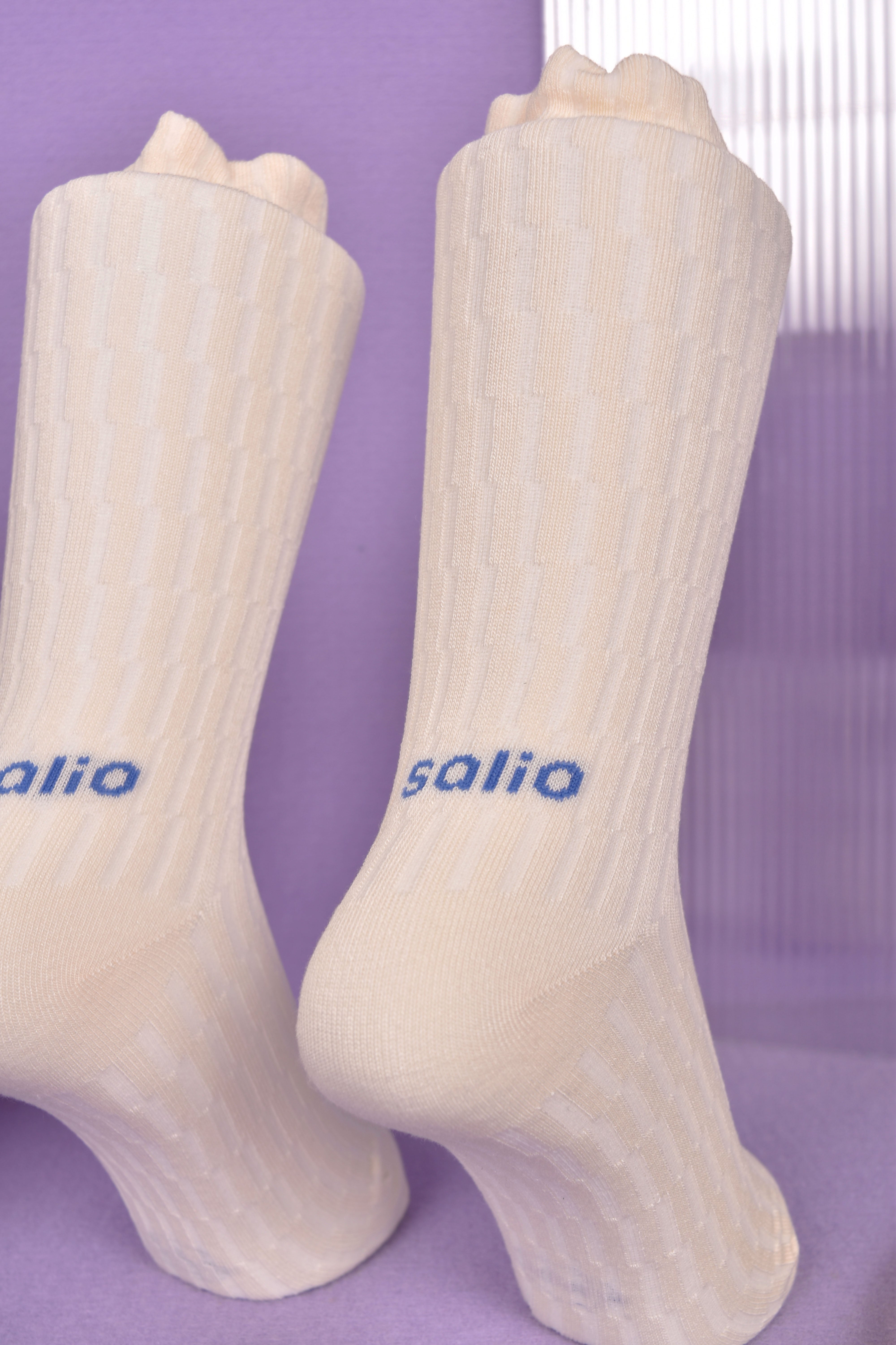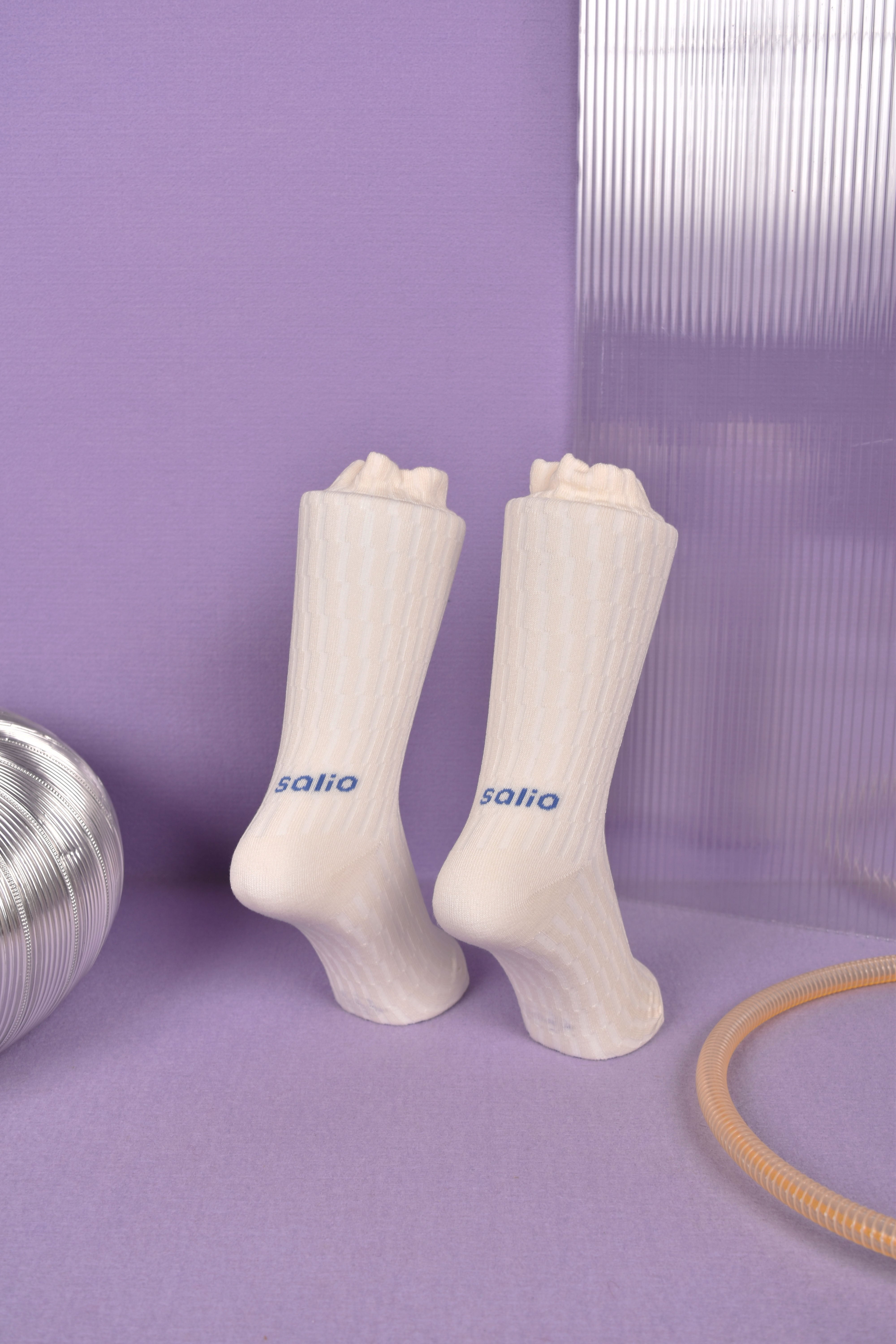 NY発のソックスブランドsalioが日本初上陸しました!国内ではWRAP SHOPのみのお取り扱いです。クラシックなリブ柄を再解釈し、歪んだラインによる独自のグリッドパターンを表現したソックス。一般的なリブとは一線を画すデザインに加え、シルク混紡糸を使用した特別仕様で、通気性と吸湿性に優れた快適な履き心地を実現しています。