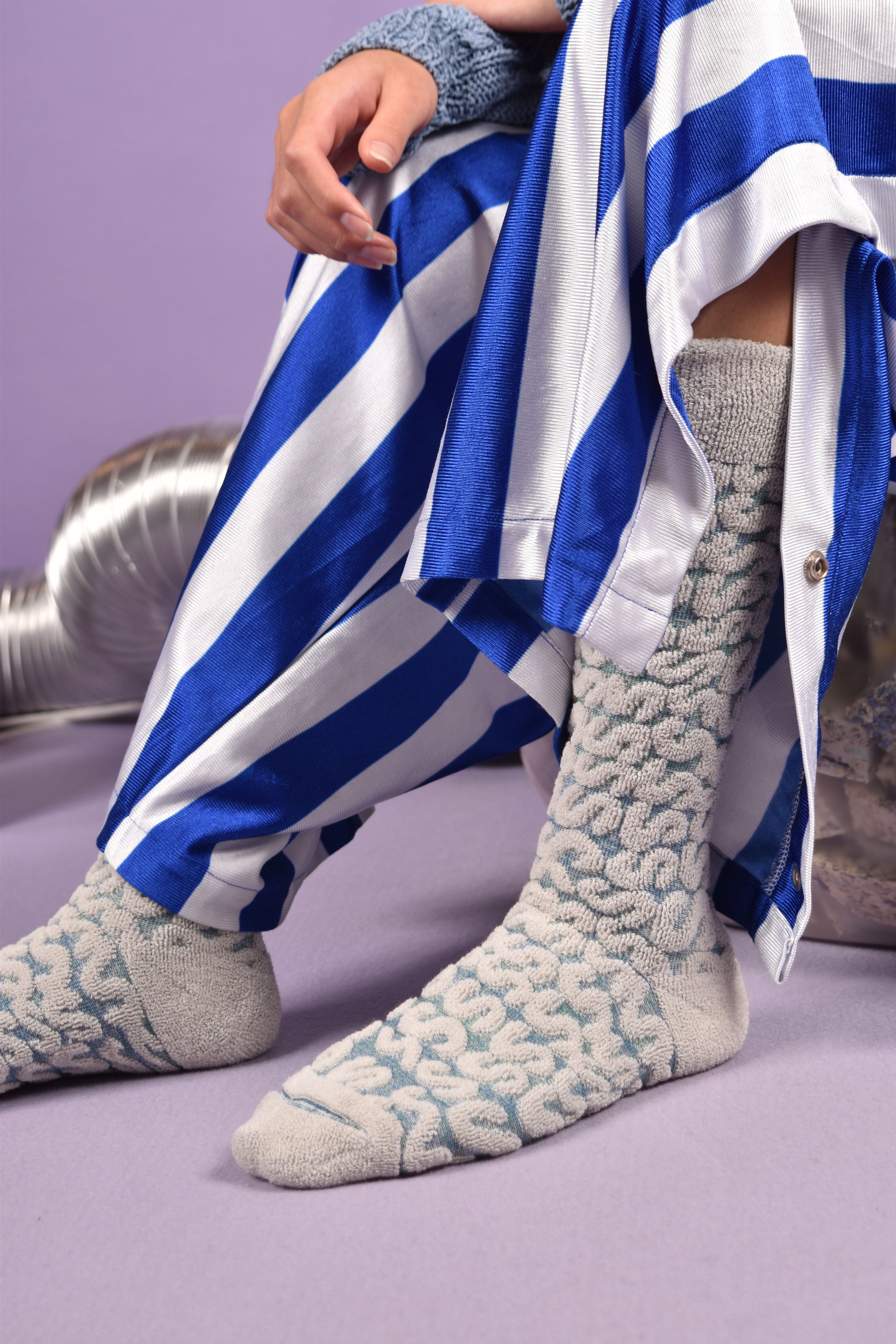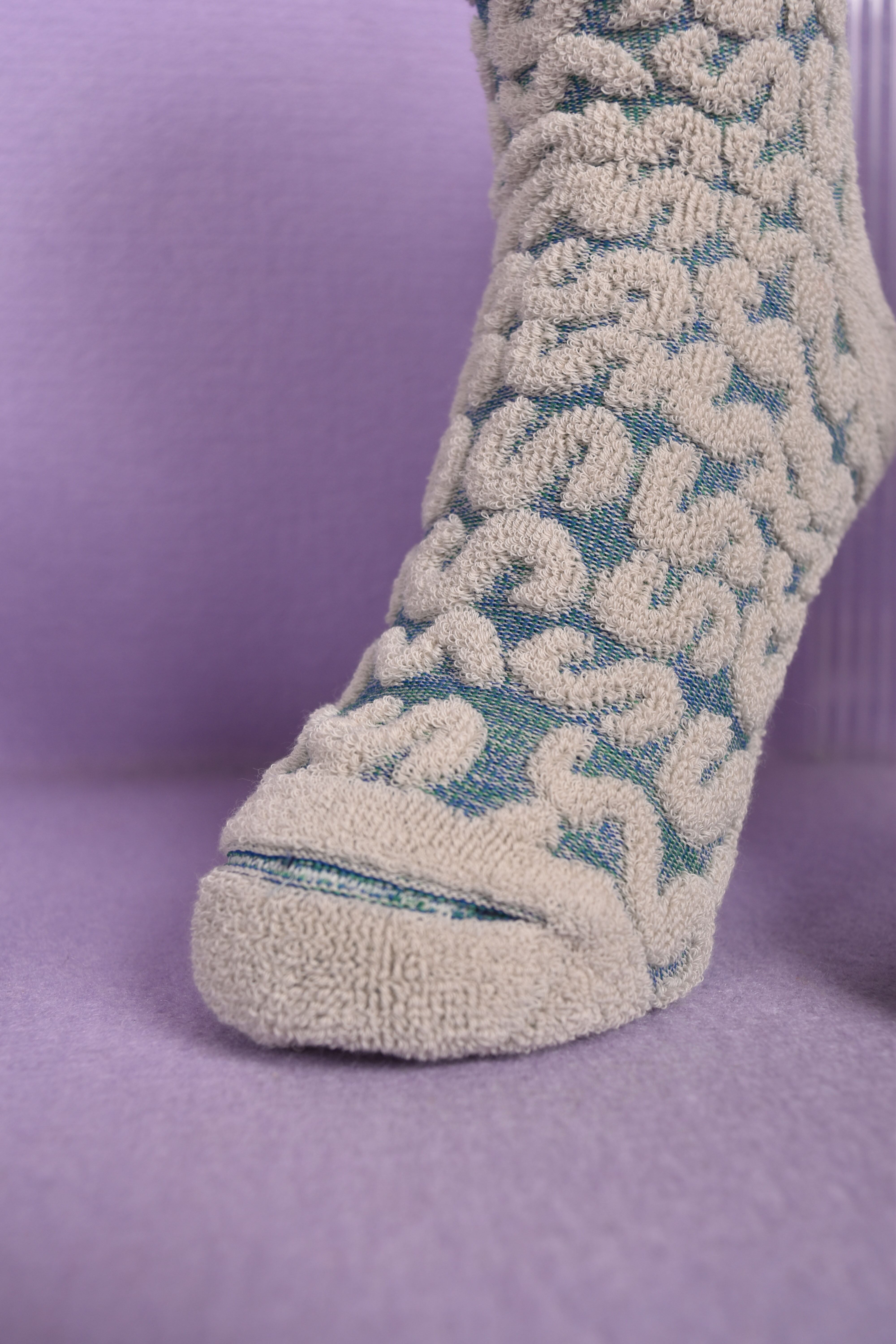 NY発のソックスブランドsalioが日本初上陸しました!国内ではWRAP SHOPのみのお取り扱いです。自然界の有機的な模様から着想を得た、シグネチャーのSロゴを用いたリズミカルなデザインのソックス。三重構造の糸を2色で撚り合わせることで、遊び心のあるマルチカラー表現を実現しています。快適な履き心地と個性を兼ね備え、ベーシックなコットンソックスとは一線を画す存在感のある一本です。