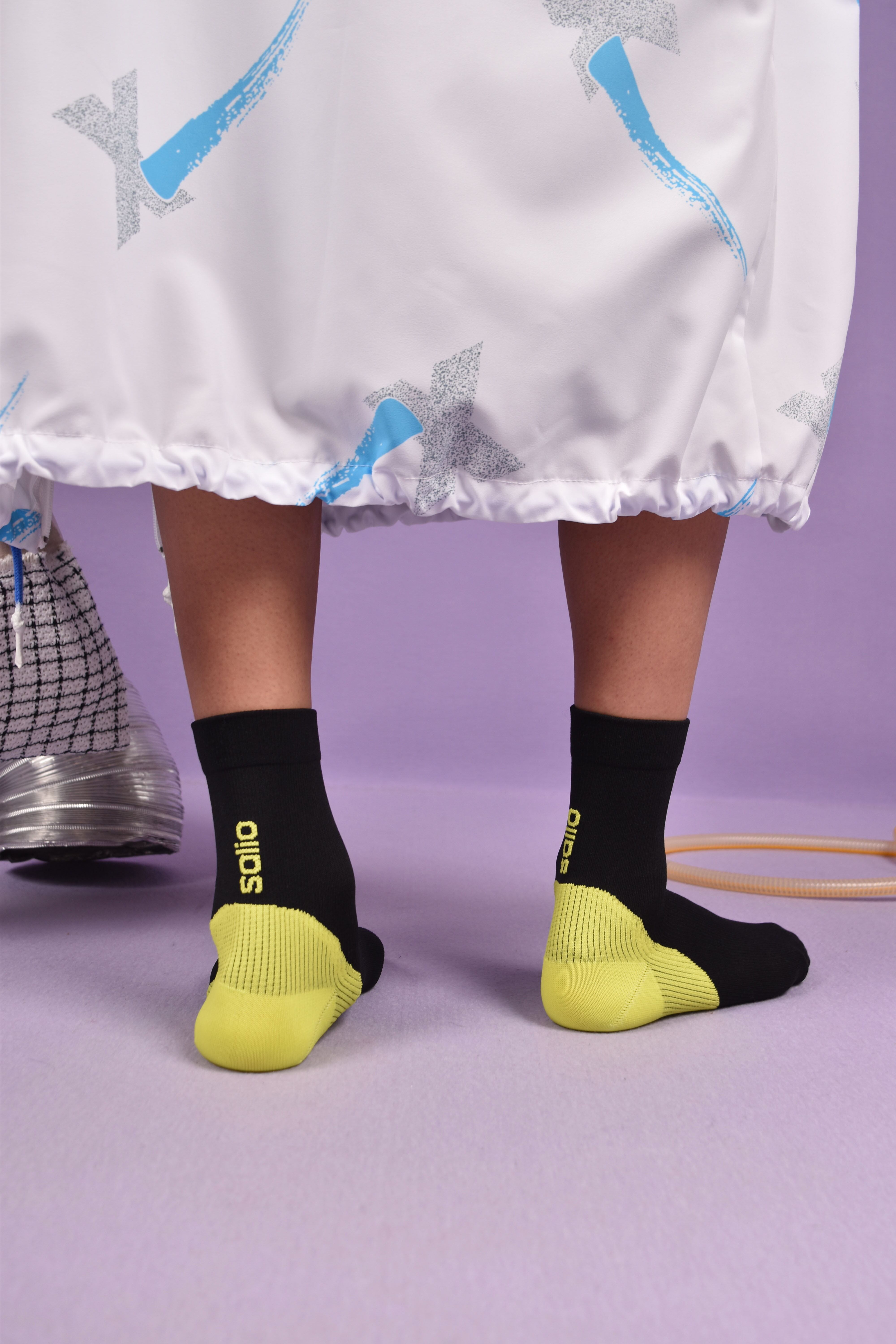 NY発のソックスブランドsalioが日本初上陸しました!国内ではWRAP SHOPのみのお取り扱いです。高強度ナイロン糸を使用し、コンプレッション構造で編み立てた高機能ソックス。かかと部分にはクッション性を高めた設計を採用し、衝撃から足を保護しながらも、軽量で通気性の良い快適な履き心地を実現しています。スポーツやハイキング、旅行など、アクティブなシーンに最適な一本。