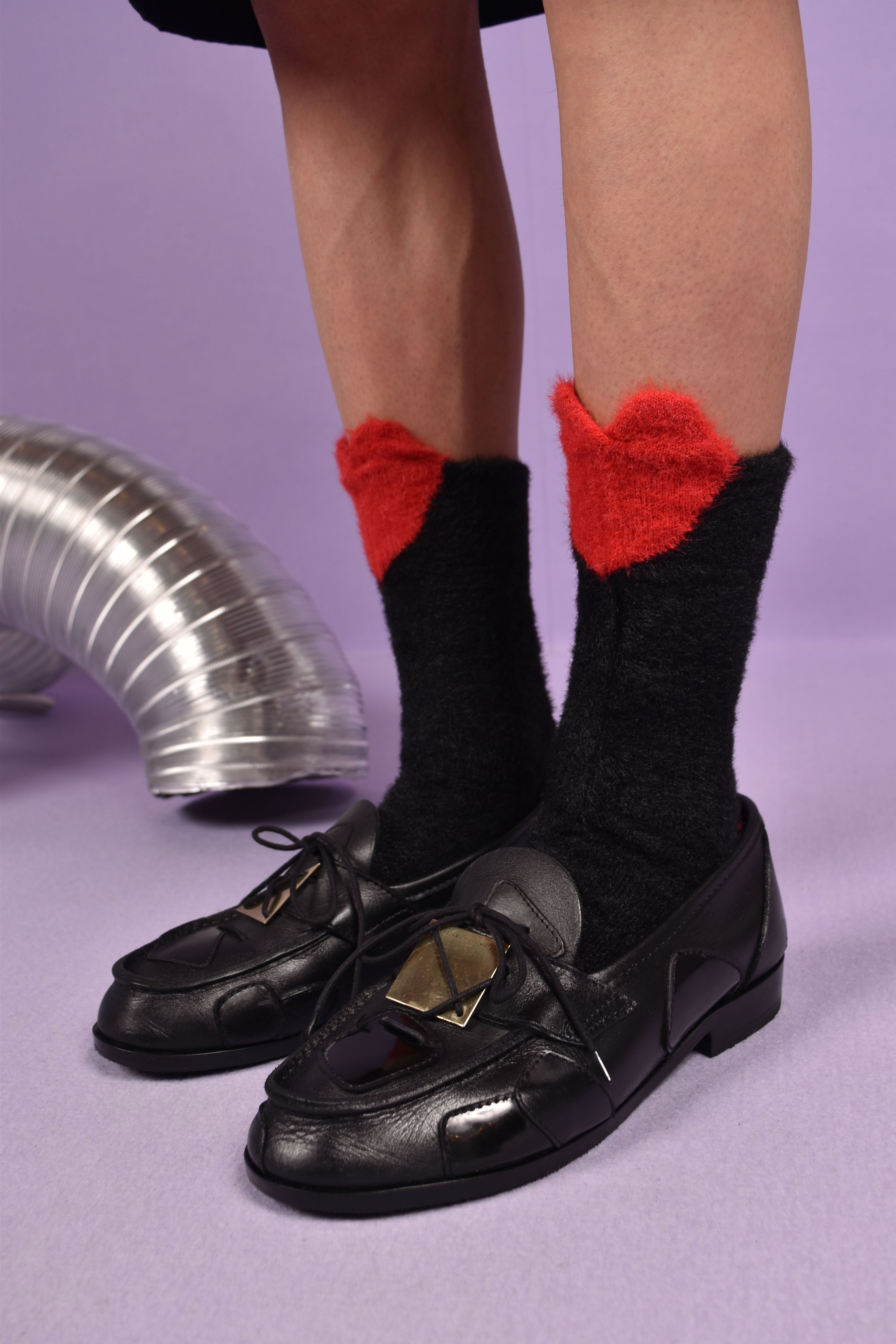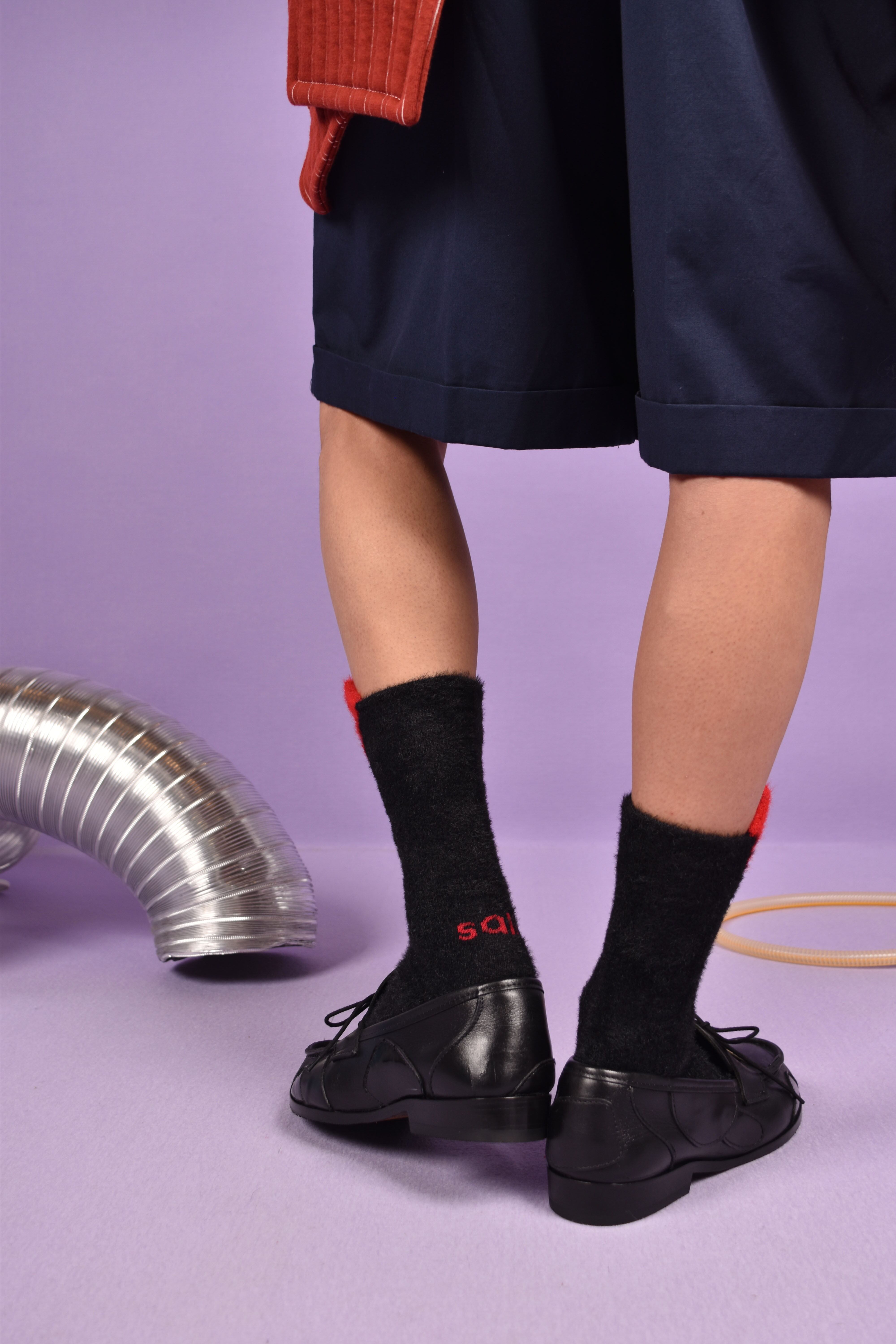 NY発のソックスブランドsalioが日本初上陸しました!国内ではWRAP SHOPのみのお取り扱いです。履き口からはみ出すように配した、スタイライズされたハートモチーフが印象的なソックス。モヘア調の風合いがコーディネートに遊び心を添えつつ、暖かさもしっかりと確保します。寒い季節のスタイリングにアクセントを加える一本です。