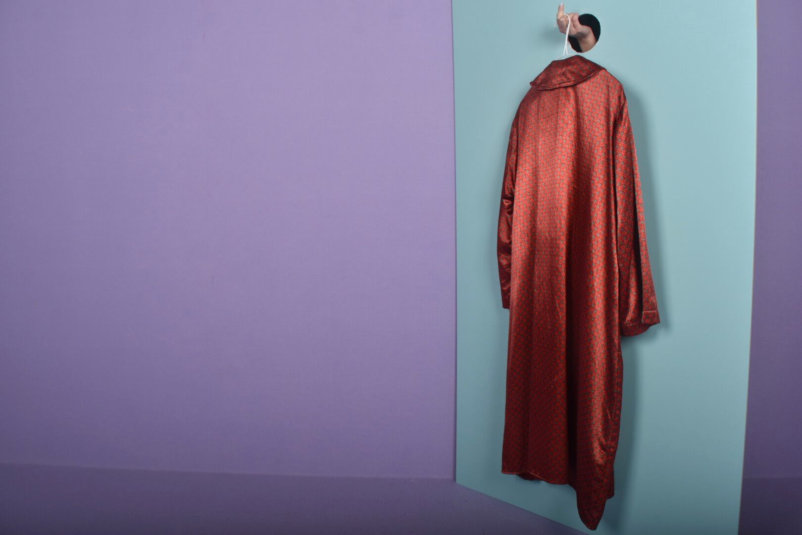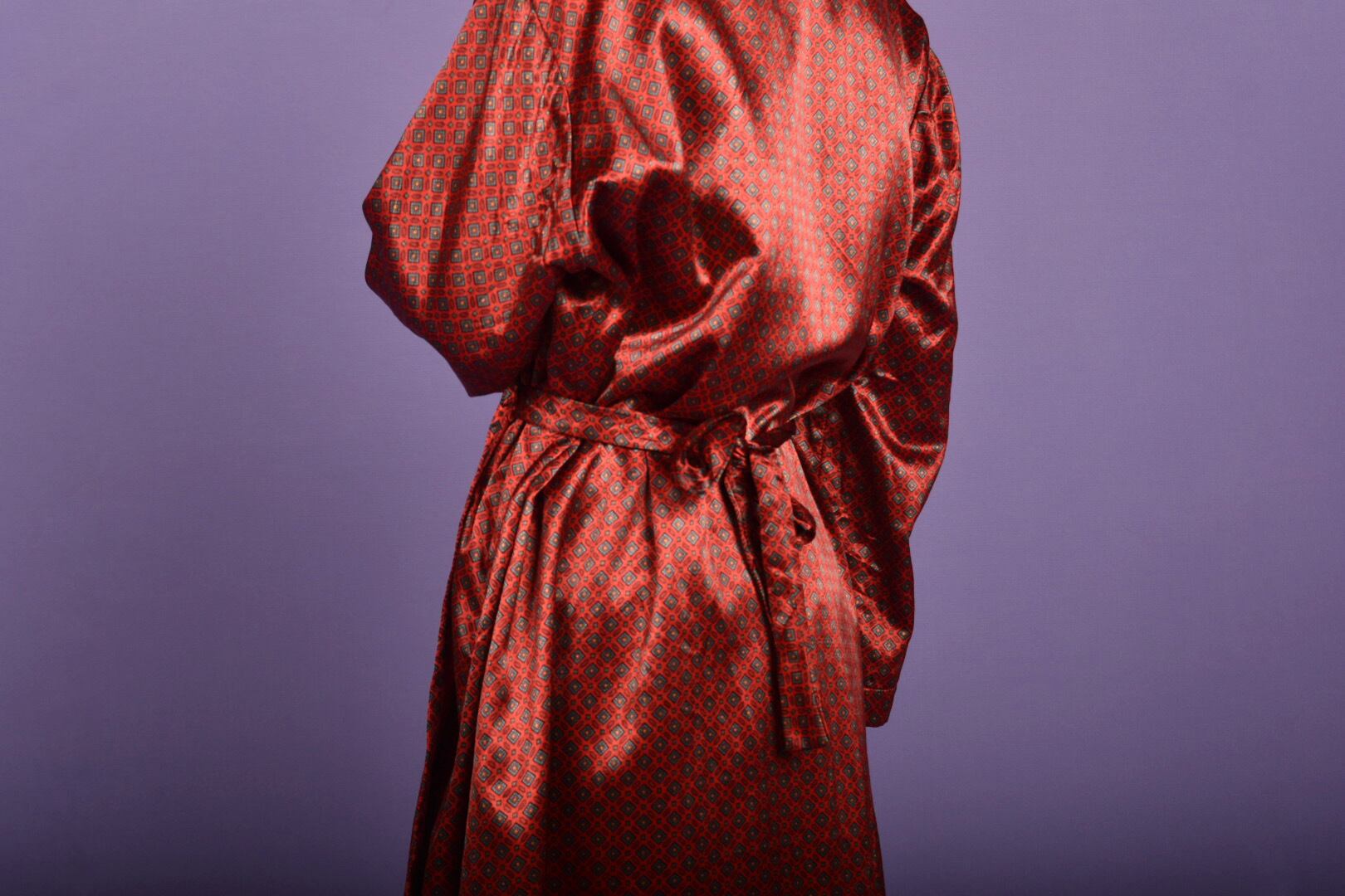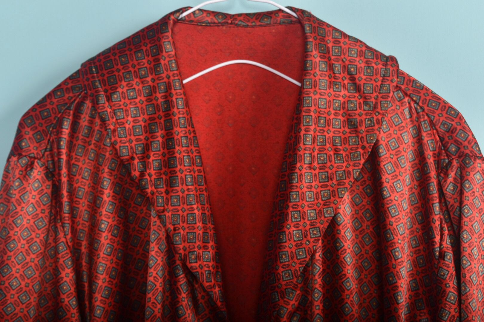 やや厚手で重厚感のあるガウンです。雰囲気がめちゃくちゃカッコいいです。ロングコートのインナーで使用してもいいかと思います。