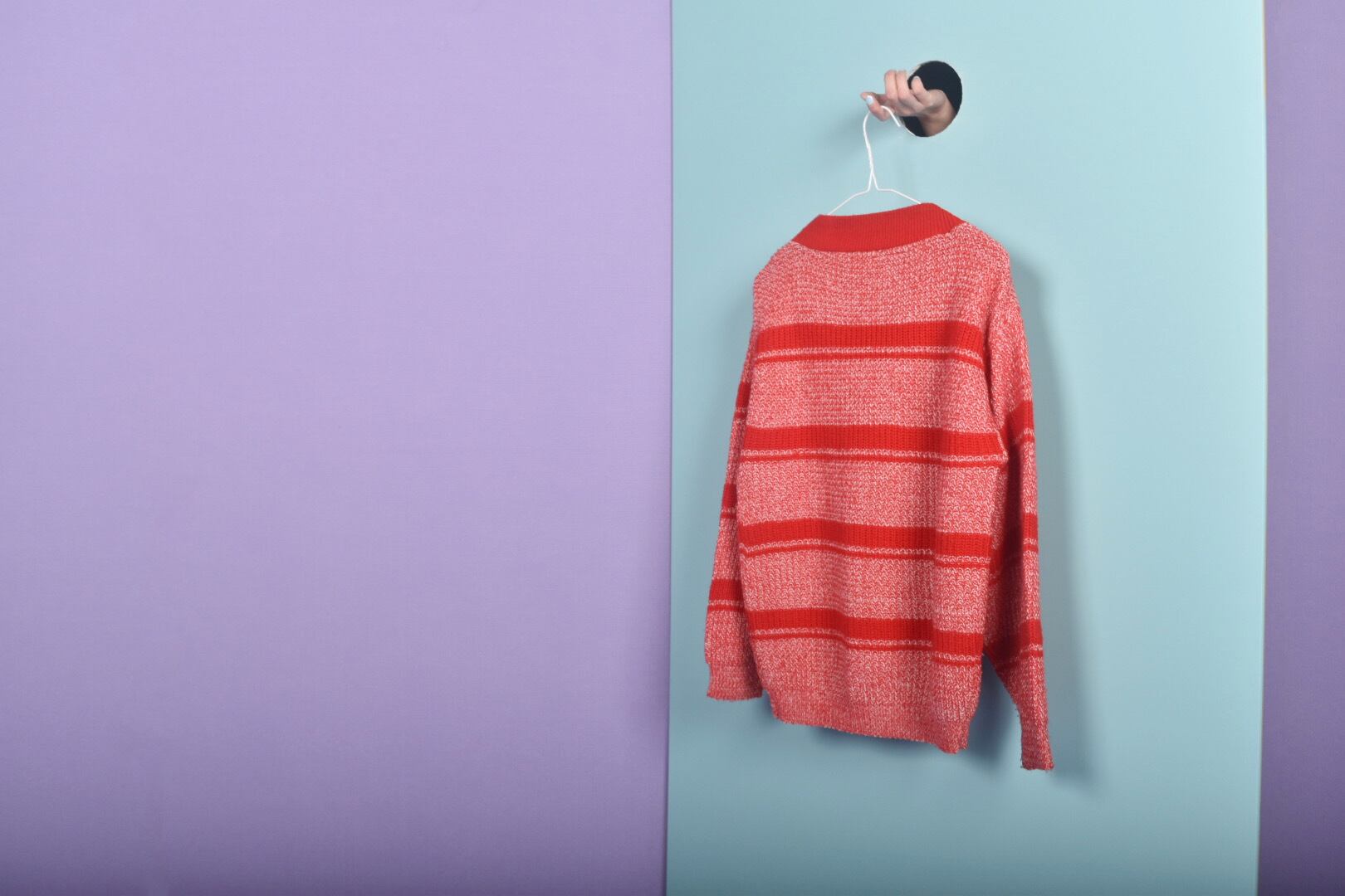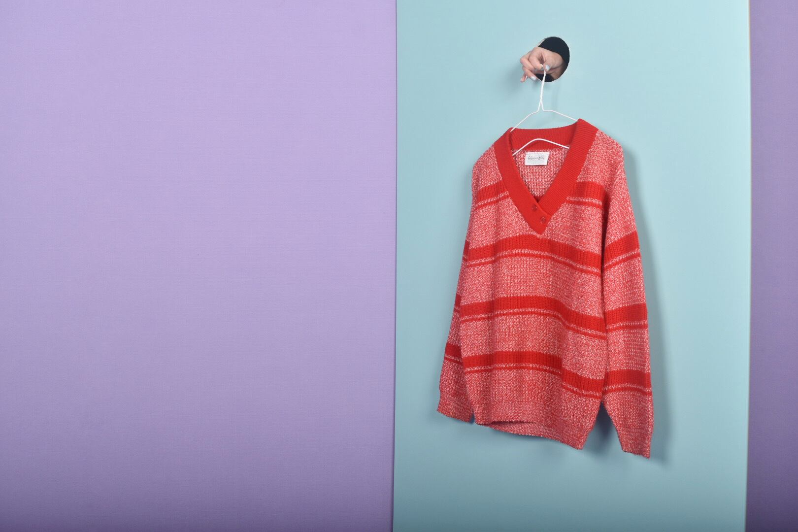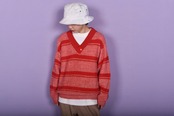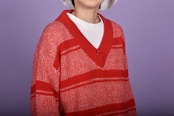 太リブの深Vネックがめちゃ可愛いニットです。Vネックのニットって結構着るの難しいですがこれくらい深いと、ネック詰まり気味のロンTeeとか下に重ねるといい感じに着れますよ!