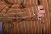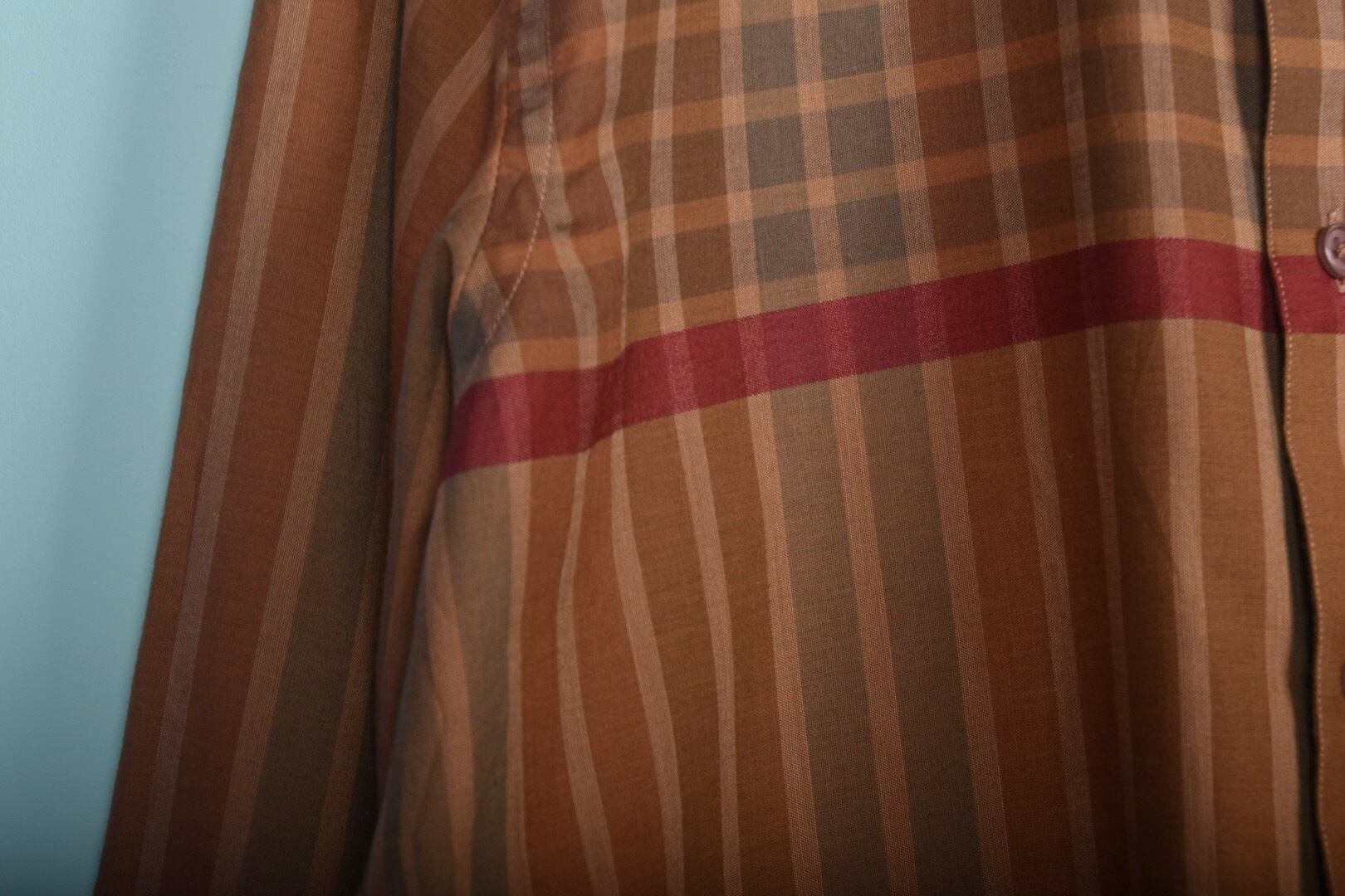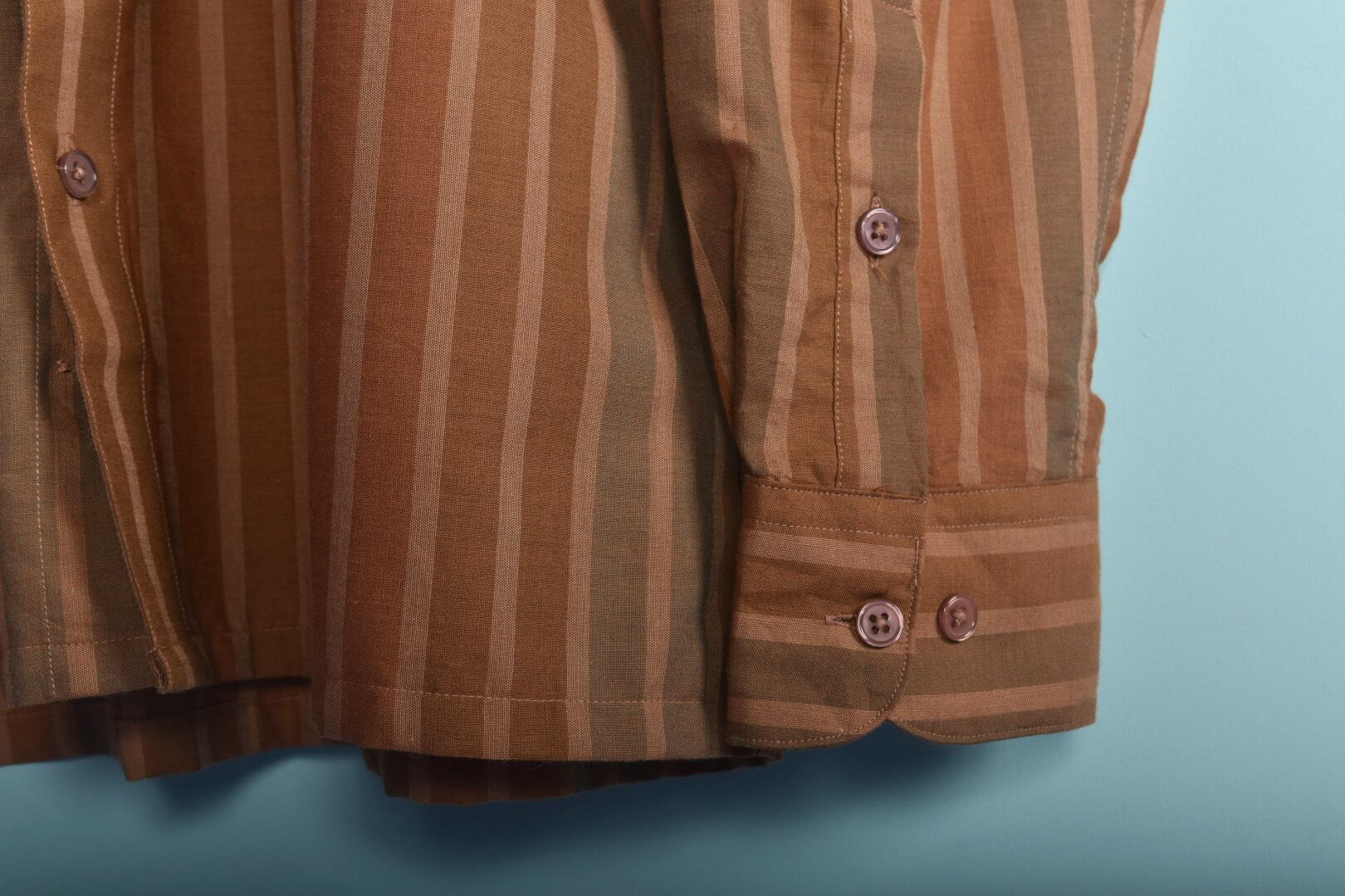 美しいシャンブレー生地を使用したシャツです。襟のリメイクの際に解体して気が付きましたがかなりしっかりとした仕様で作られています。襟を丸みのあるこじんまりとした形に作り変えタウンユースしやすいデザインにしました。クールです。