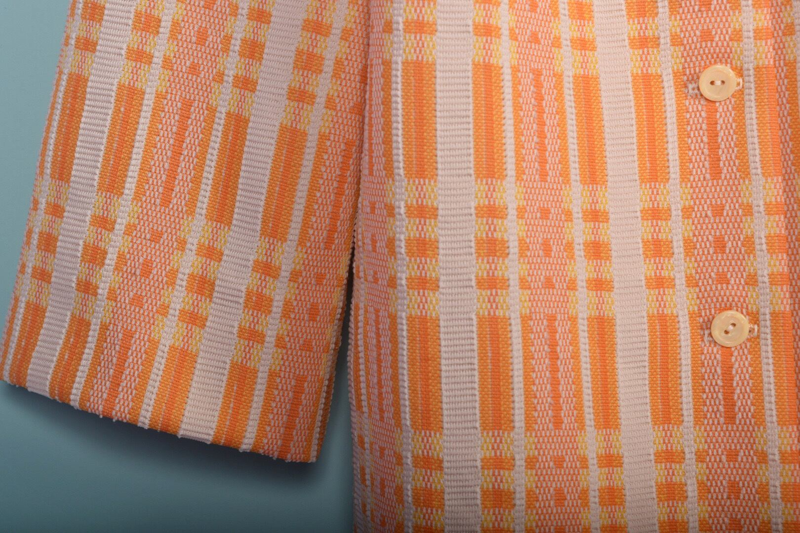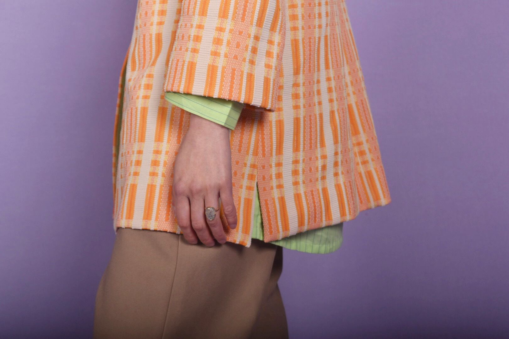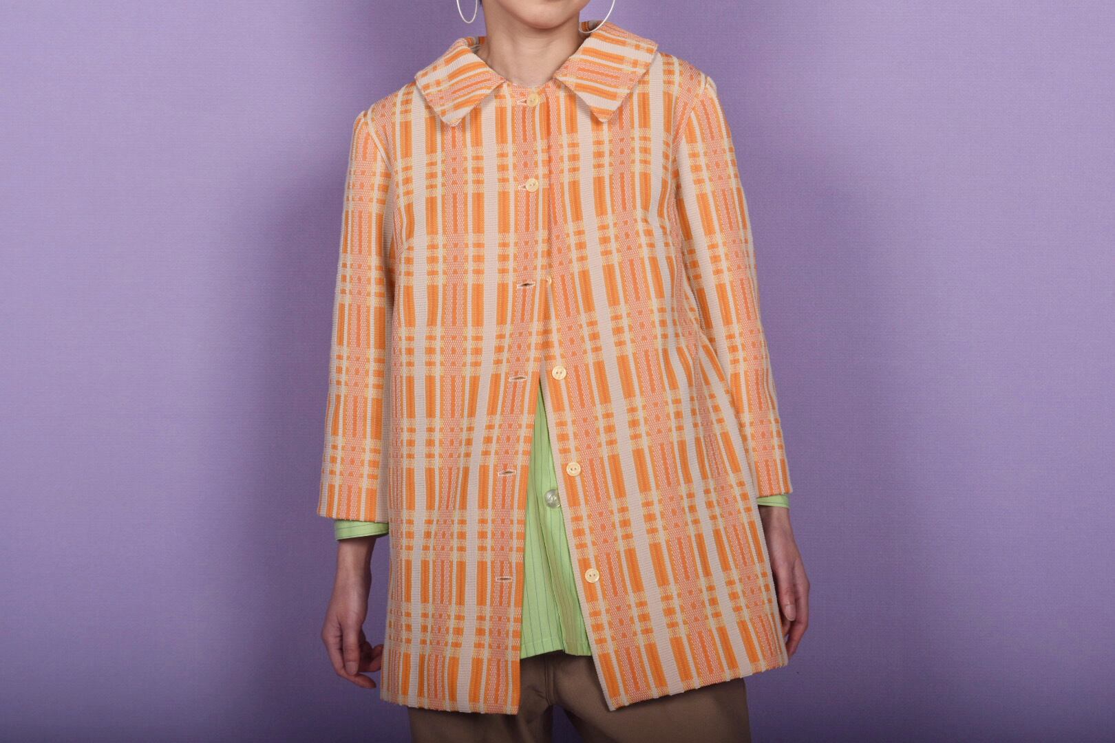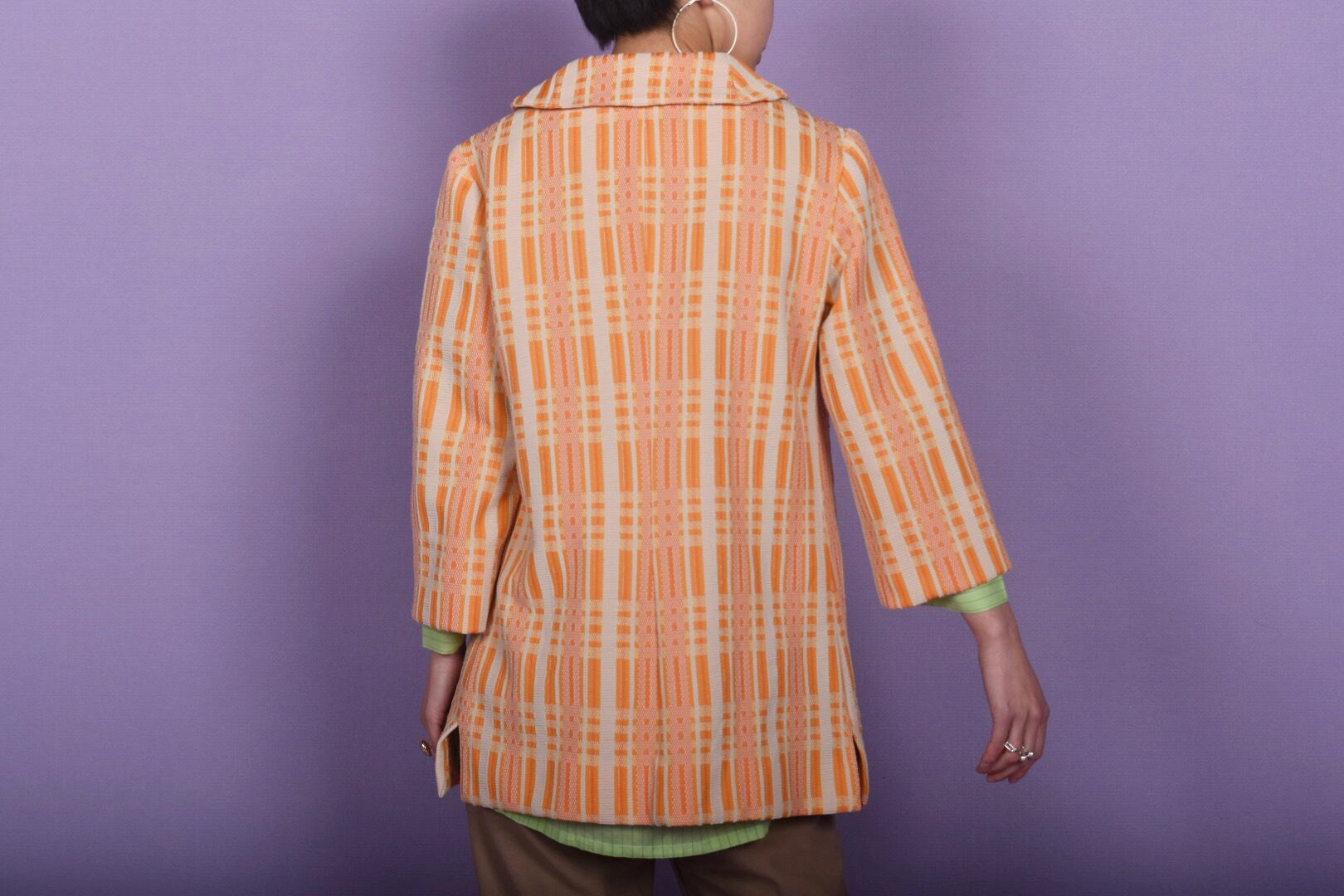 80年代USA製のジャケットです。時代を感じるシルエットを大幅にリメイクしました。襟の形成、袖丈をフルレングスから7分丈に、ウエストのくびれを緩やかにしました。生地がめちゃめちゃ可愛いこの手のジャケットを最大限生かせたかと思います!