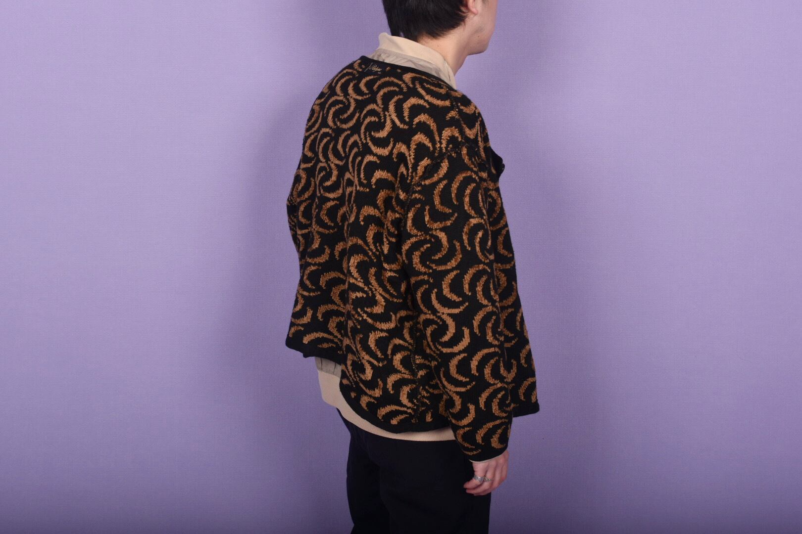 今はインナーでカーディガン代わりに、春先はジャケットとして活躍するニットジャケットです。緩めのシルエットなので男女兼用可能です。また、リバーシブル仕様ではないですが、気分で裏返しに着てもいいかと思います。こうゆうの結構出番多いんですよね。