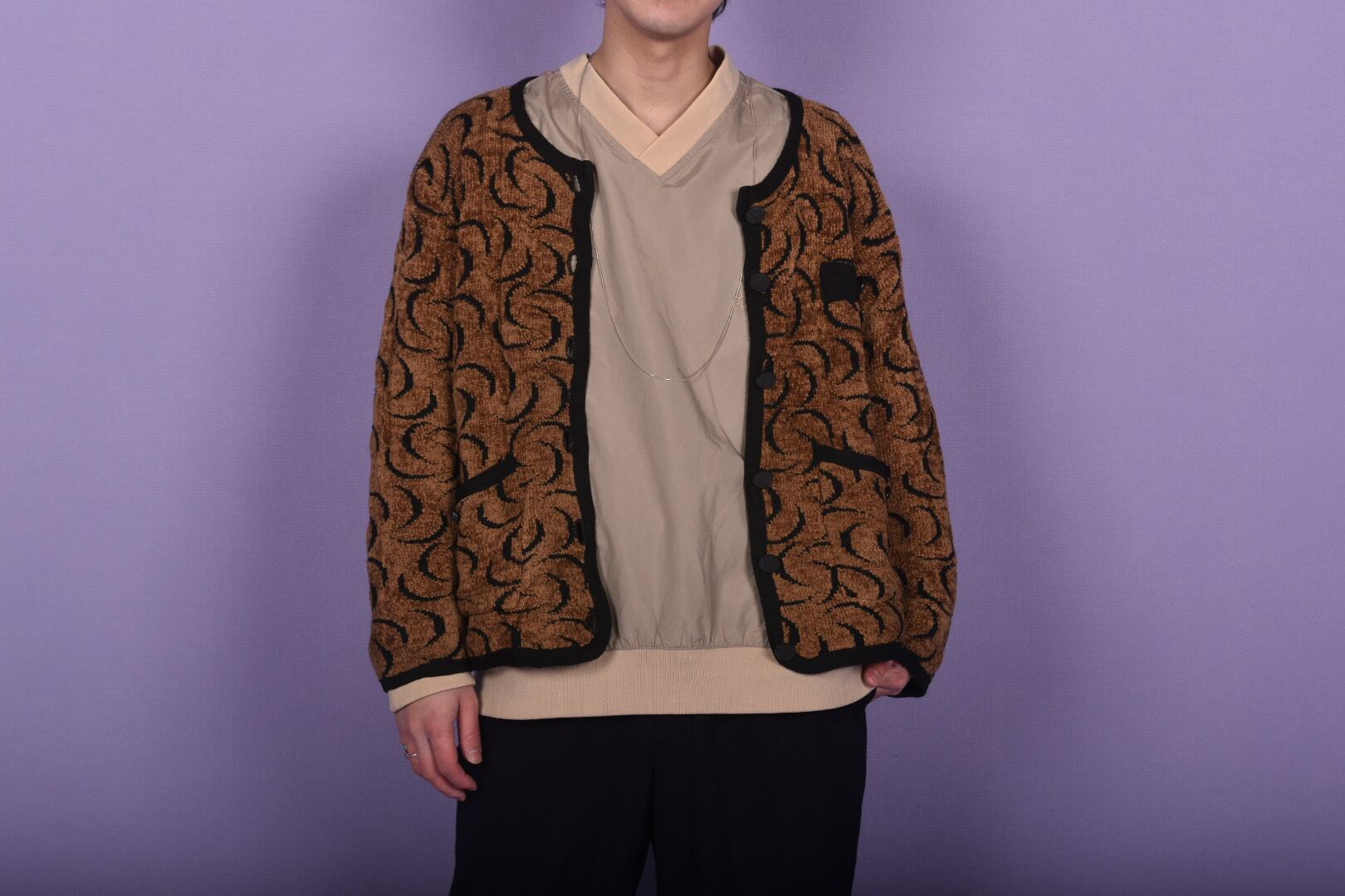 design no collar knit JK