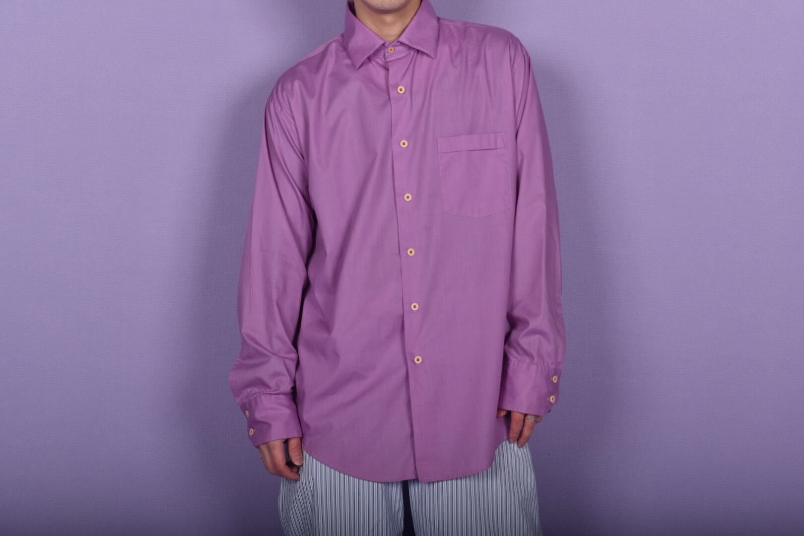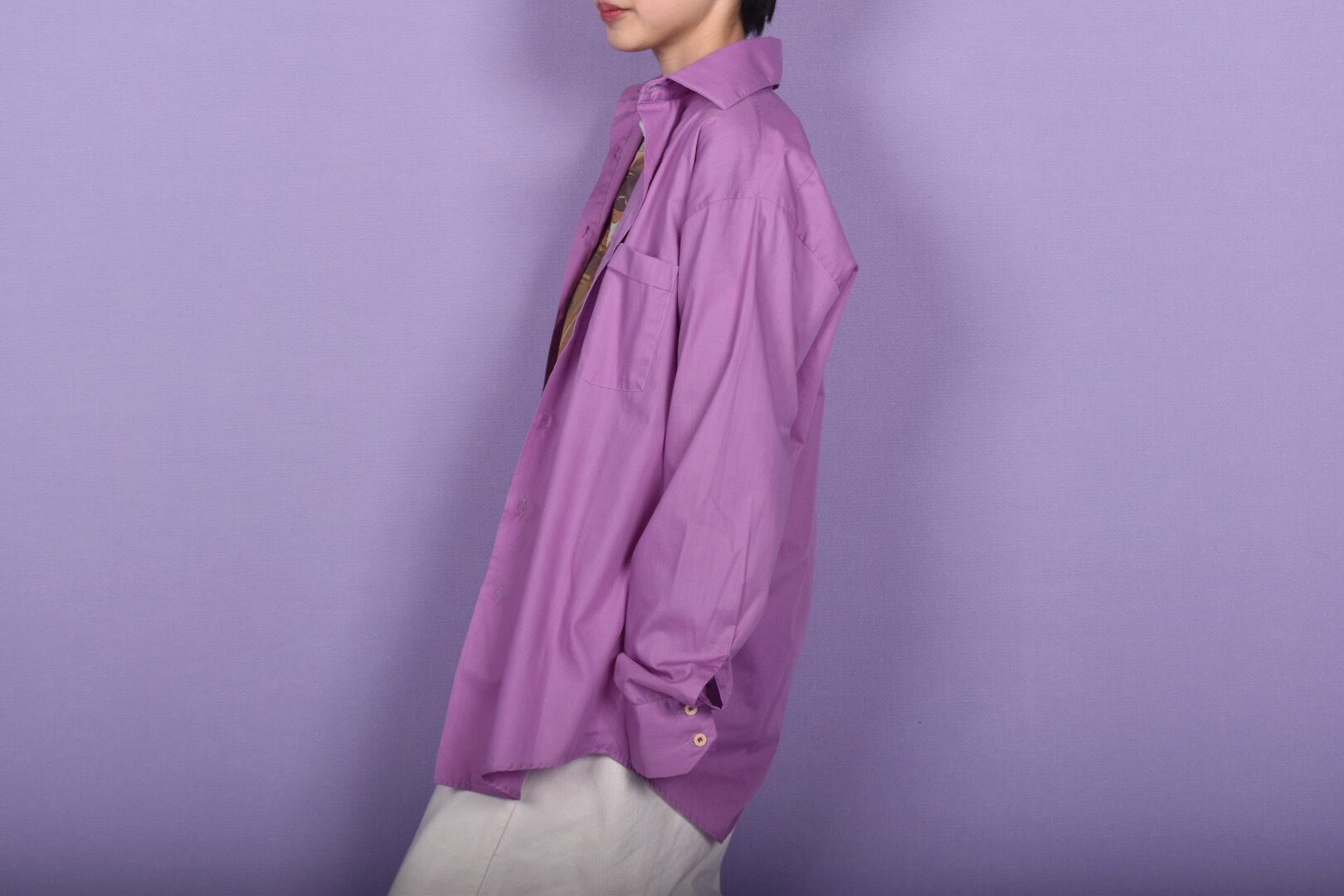 えげつない大きさの襟を、リメイクしました。大きめサイズなので女性は羽織って使ったらいいかもです。メンズは普通にシャツとして。とても綺麗なパープルです。