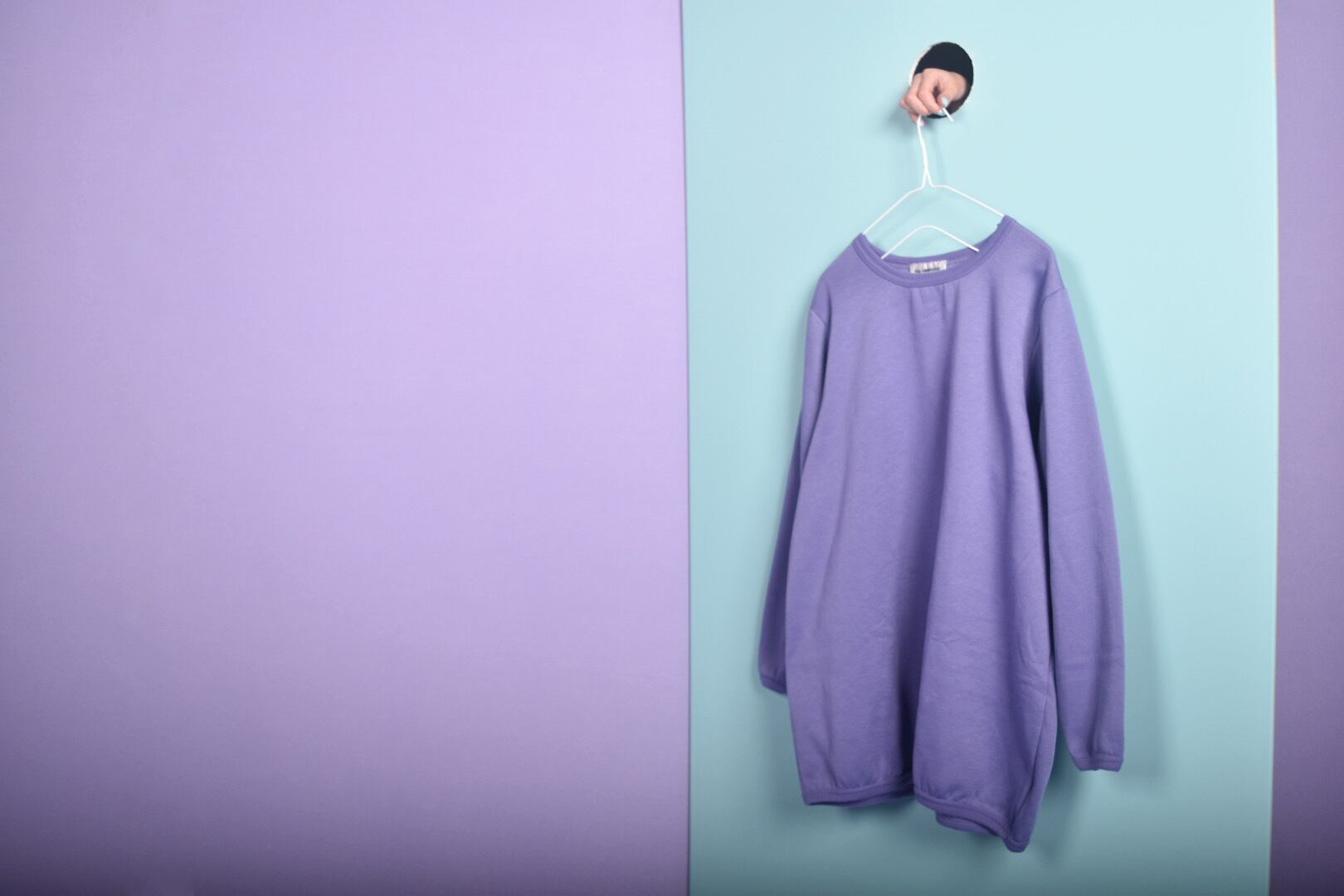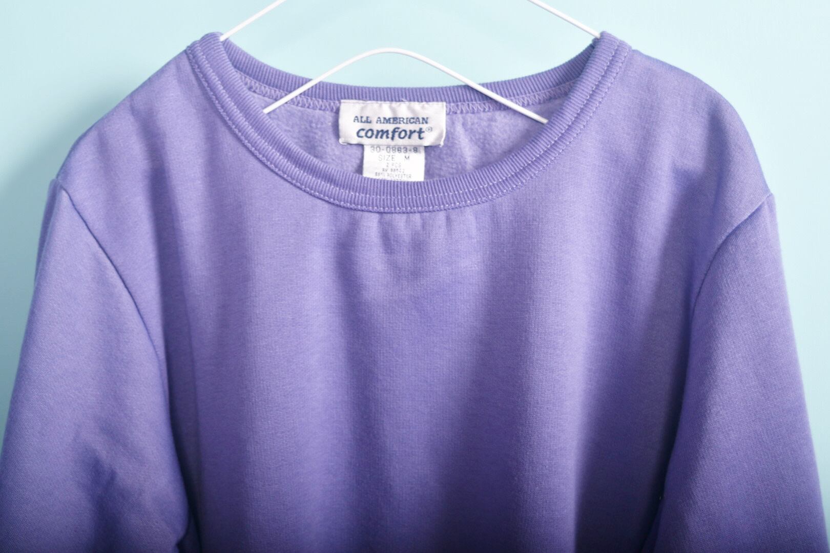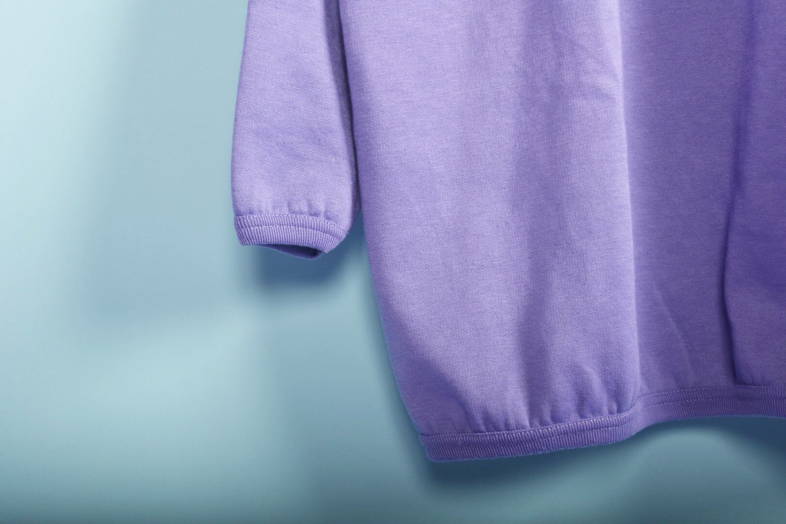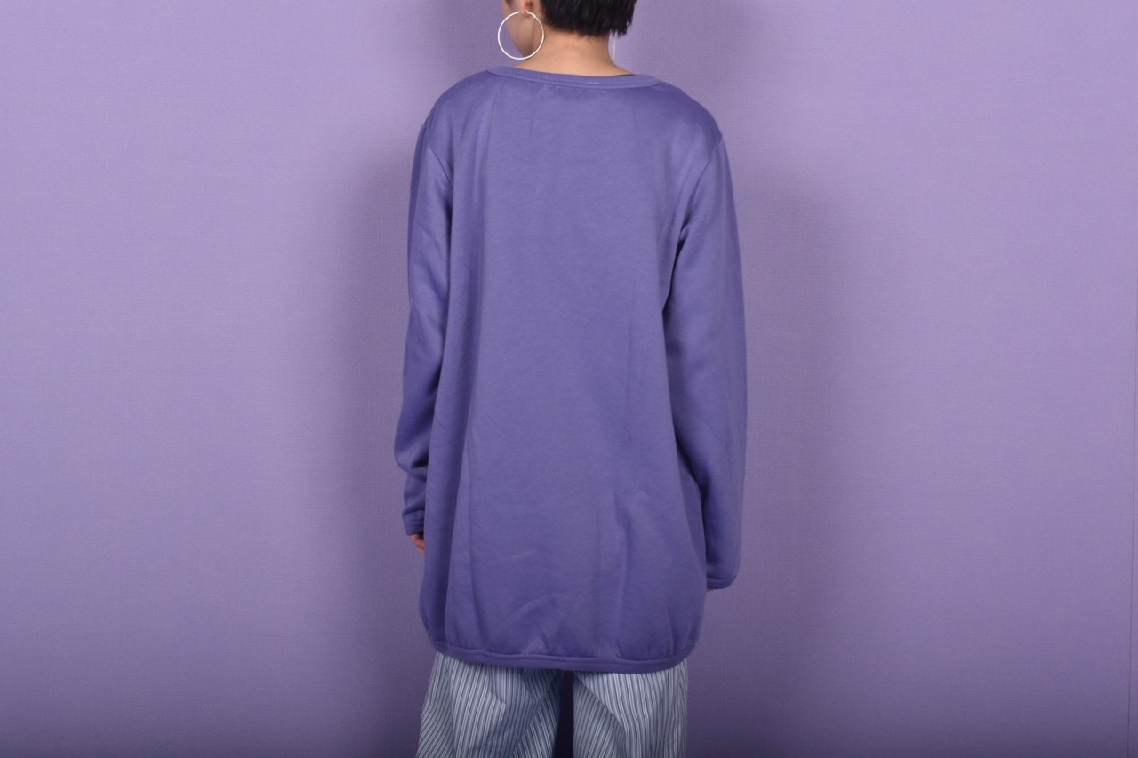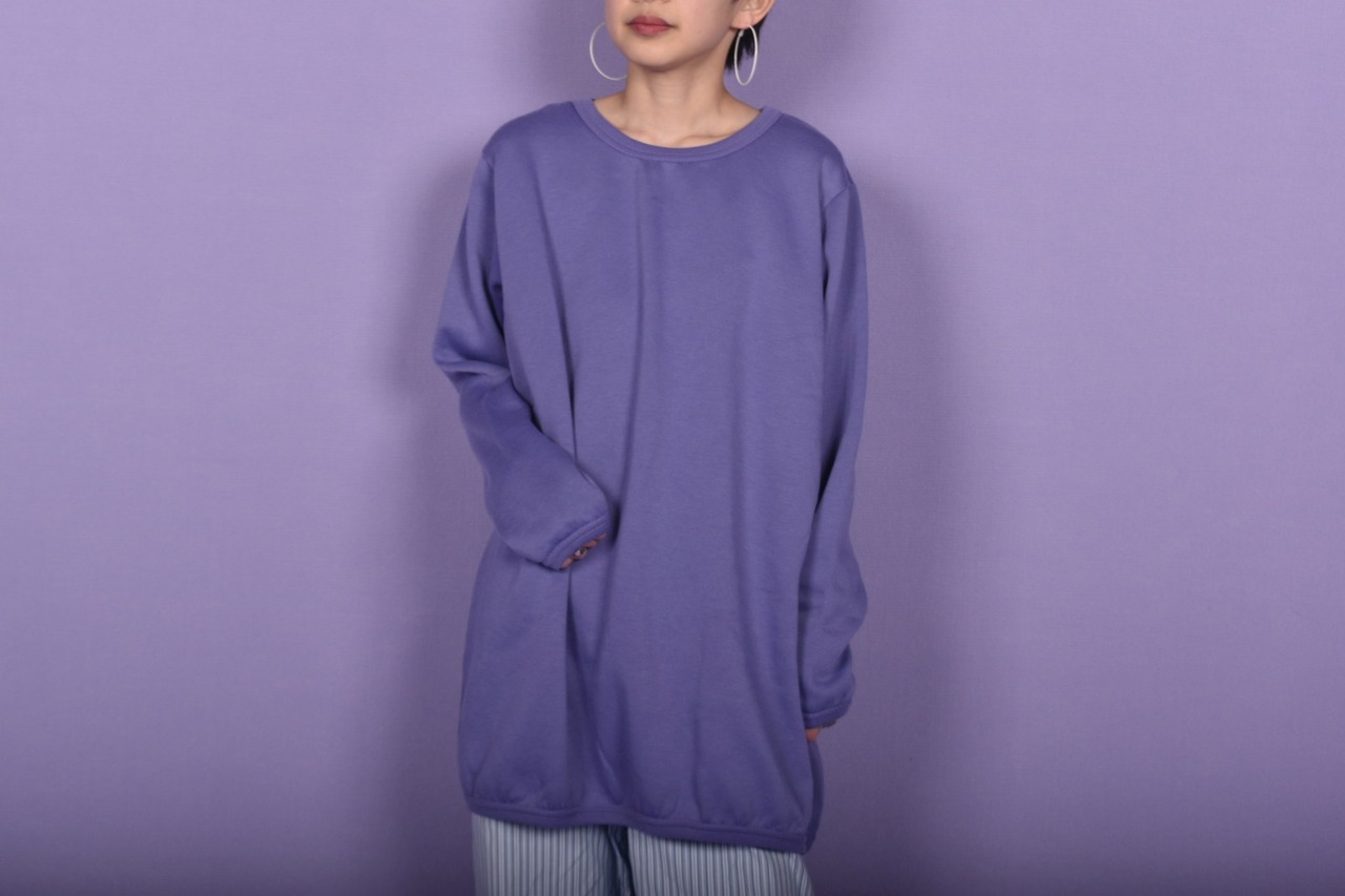 ややロング丈のスウェットです。華奢なリブ、光沢感のある生地がとても可愛いです。