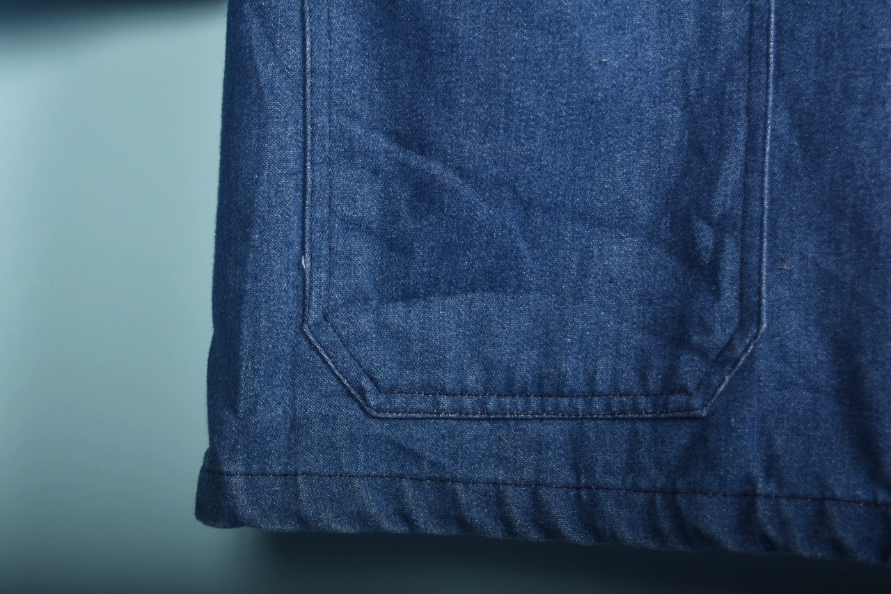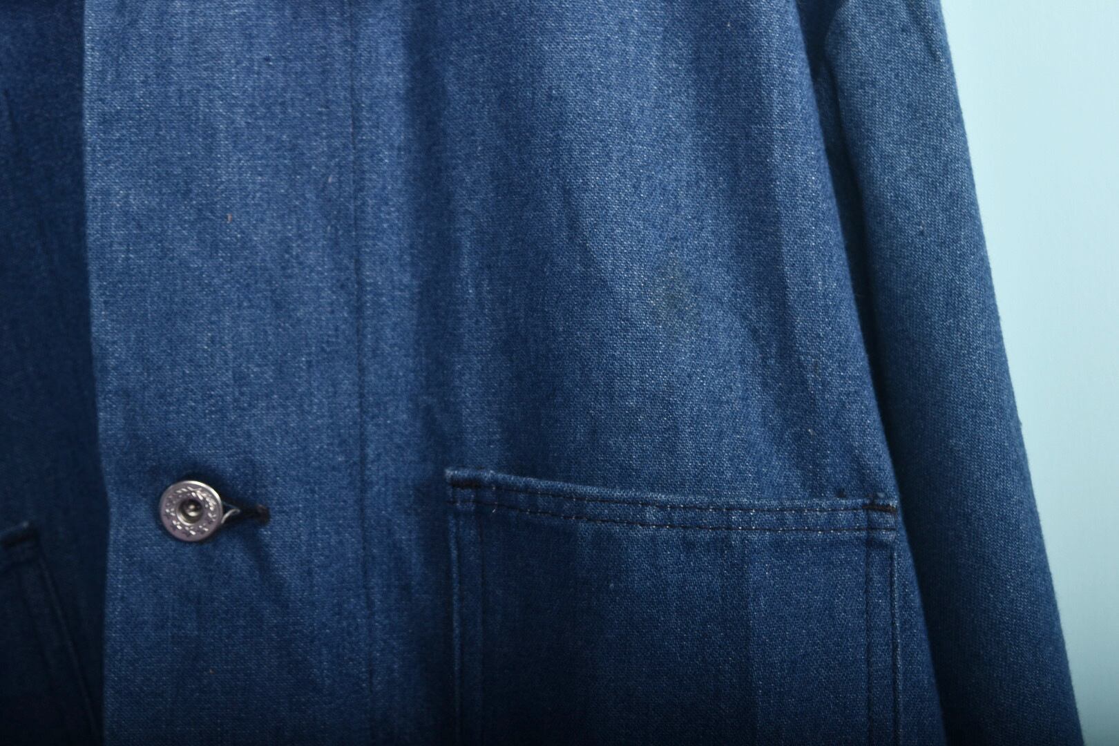コンディション:前見頃、左ポケット上、右ポケットに目立たない油汚れのようなシミあり。