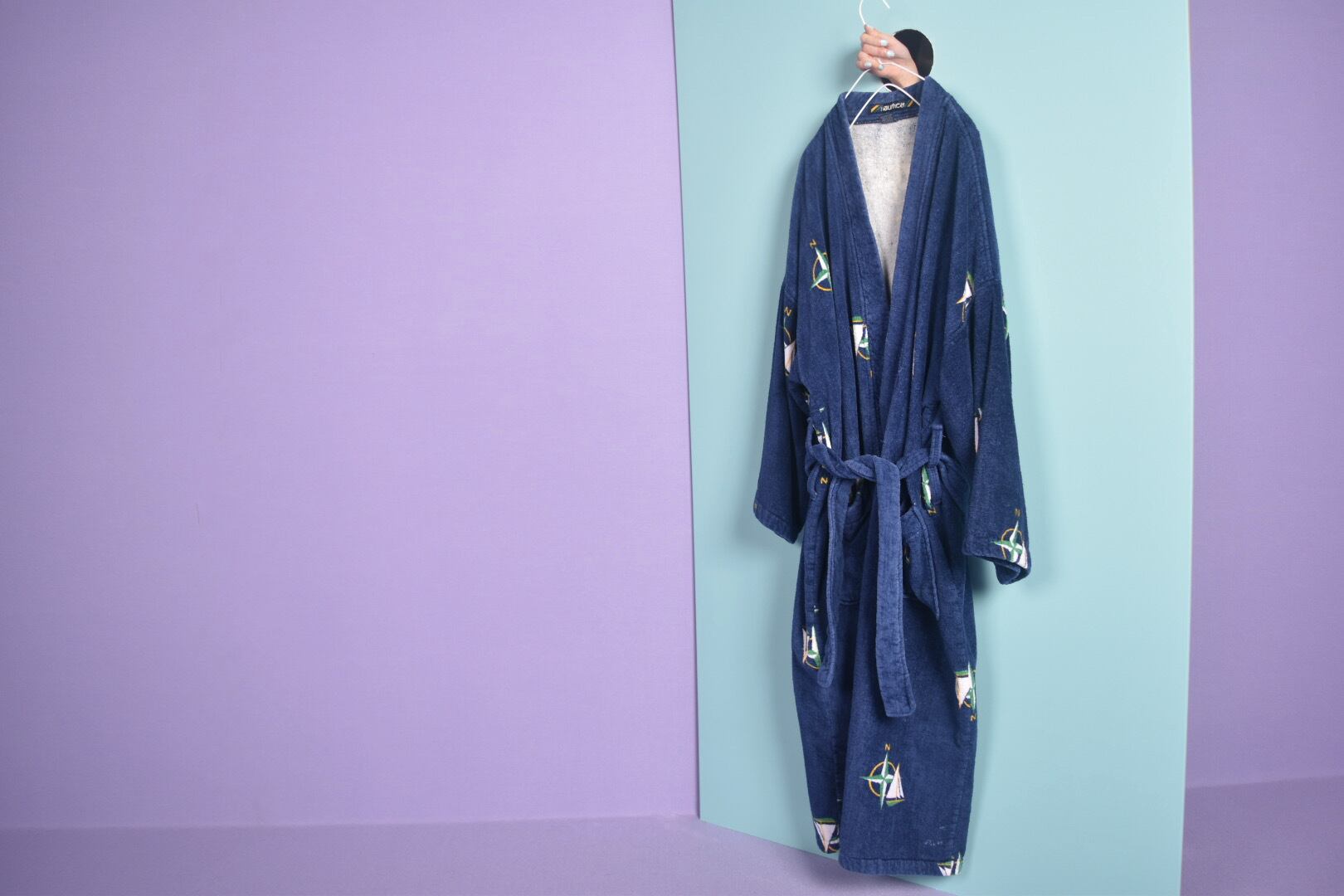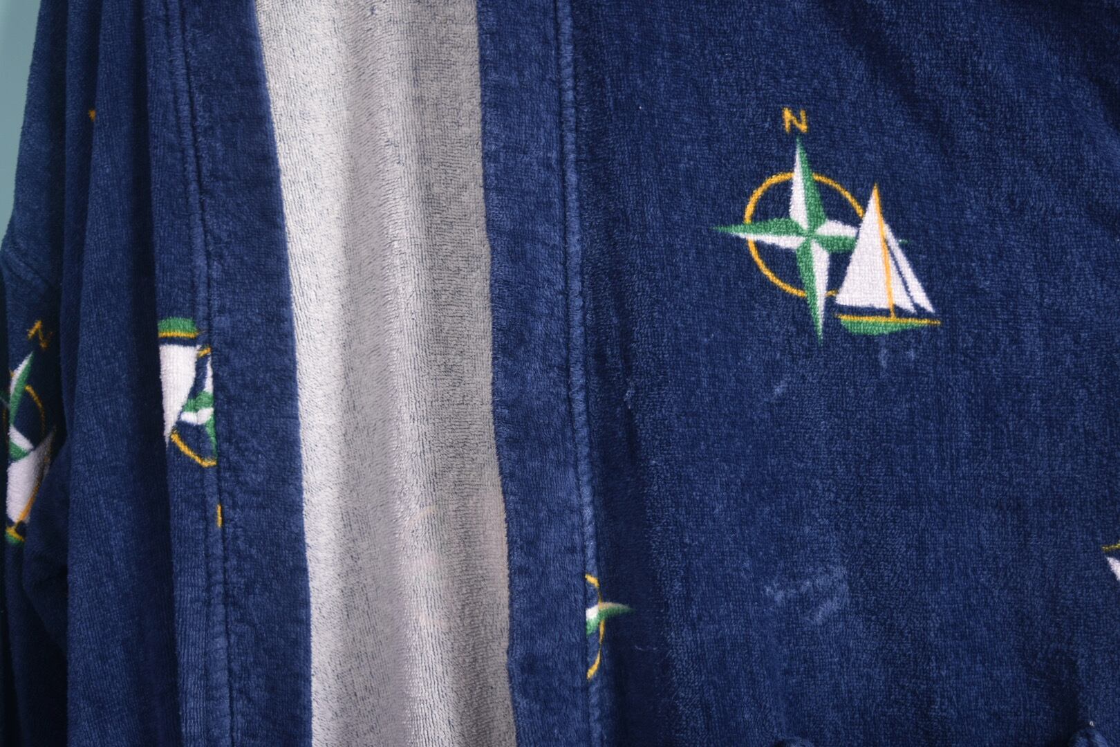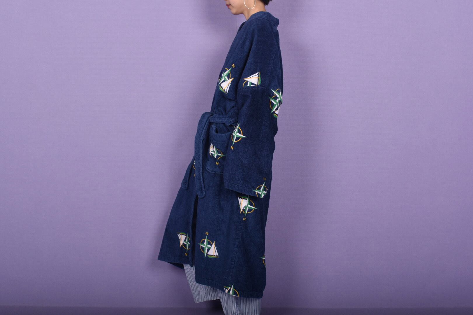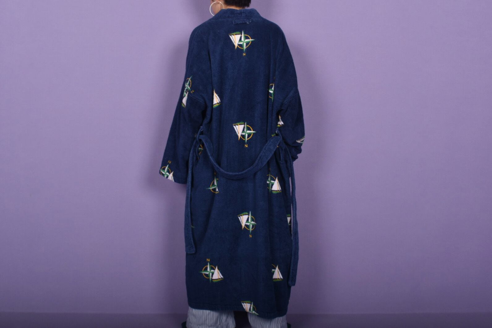 ノーティカのブランドロゴにも使用される船とコンパスのプリントが入ったガウンです。パイル素材で着心地も良くこれからの季節アウターとして重宝します。2段ベルトループがあるので、シルエットを変えながら男女問わず着用頂けます。