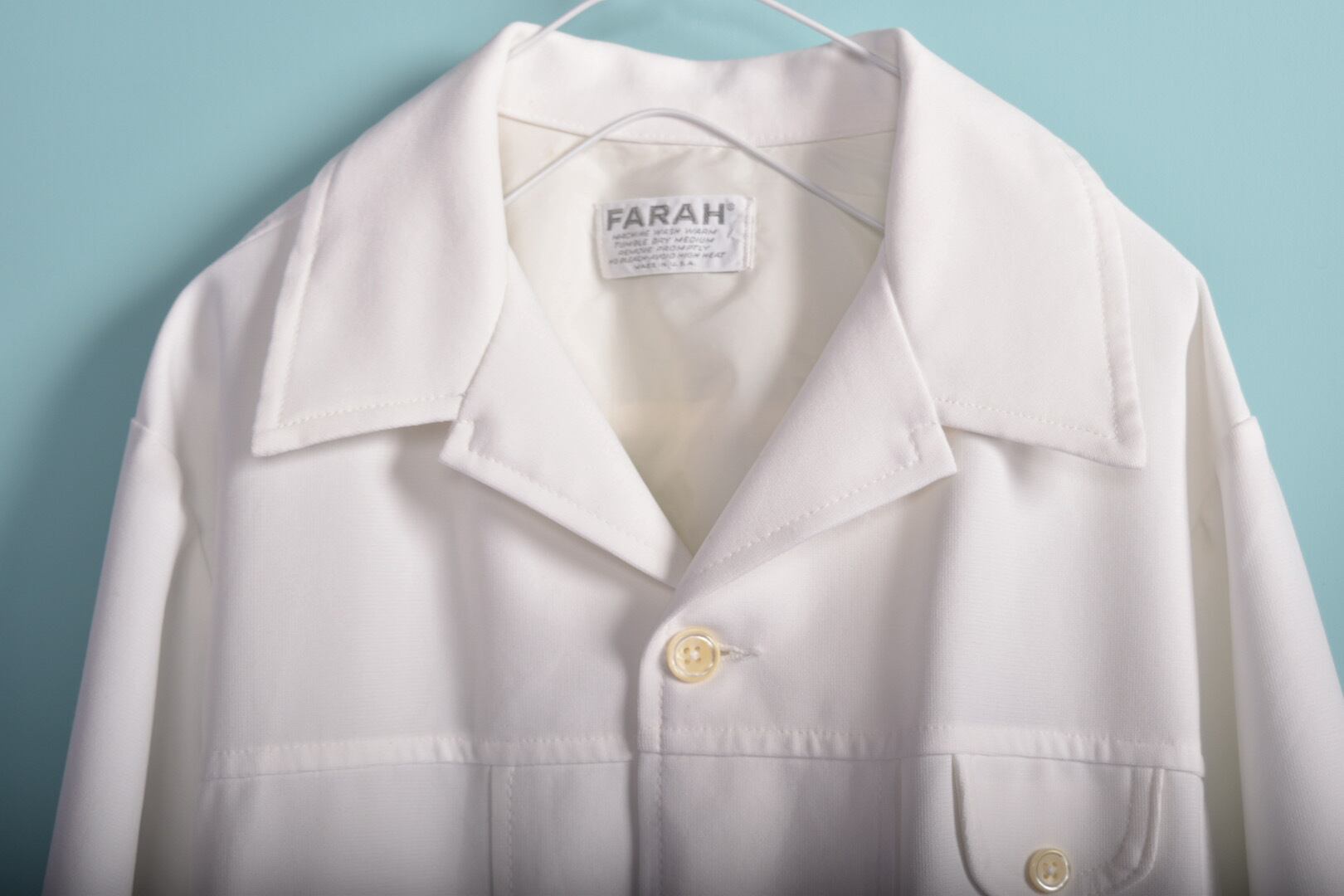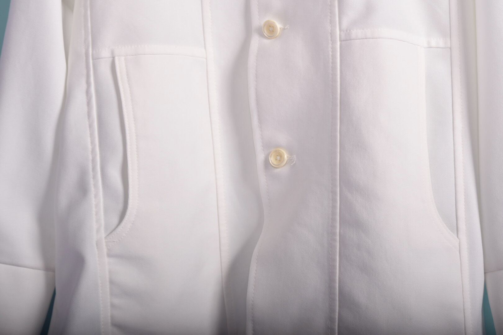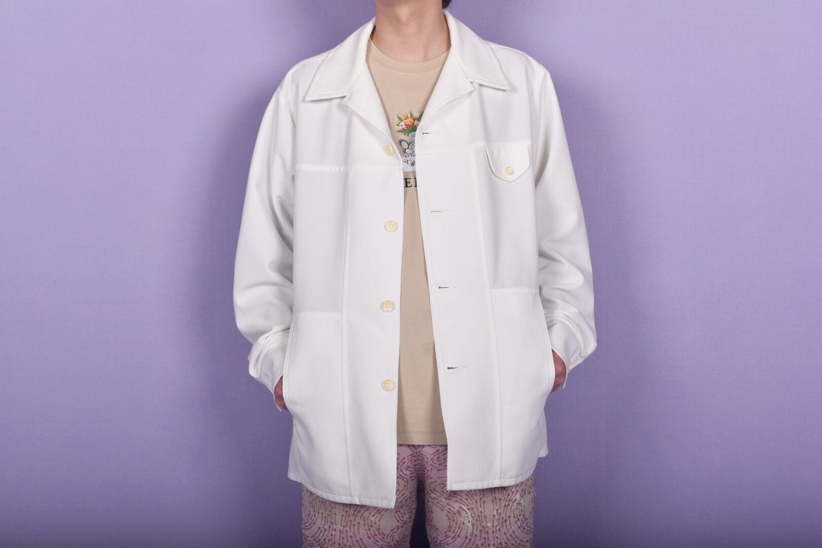 70年代のアメリカ製ジャケットです。70年代でノーダメージの白のジャケットはなかなか珍しいです。大きめの襟をリメイクして少し小さくしました。ポケットディテールがめちゃ可愛いです。春らしい白のジャケット、男女ともにおすすめです。