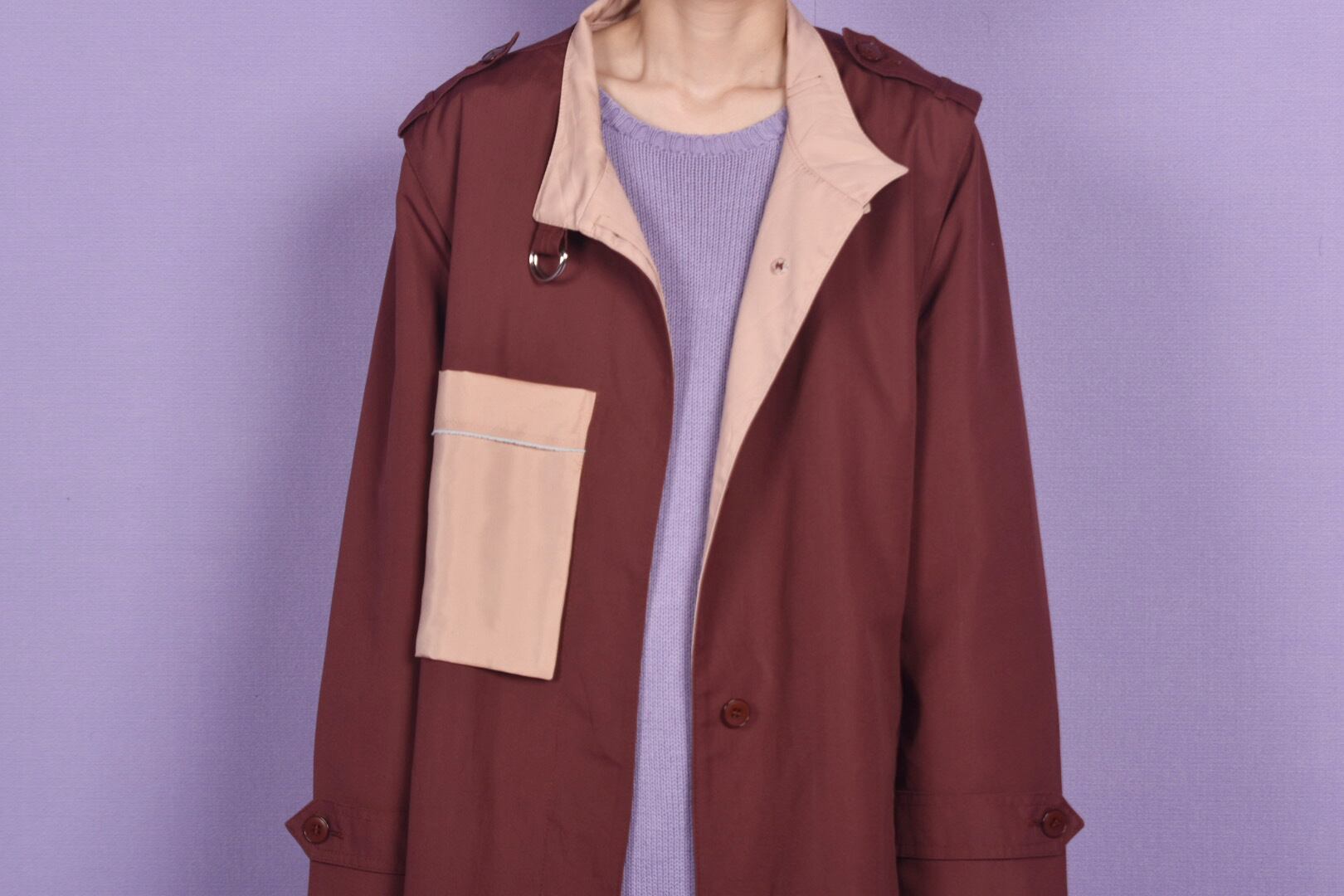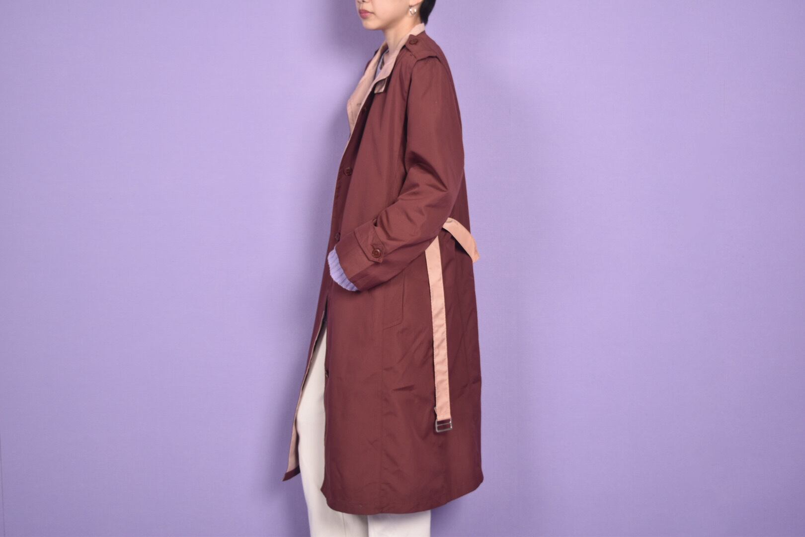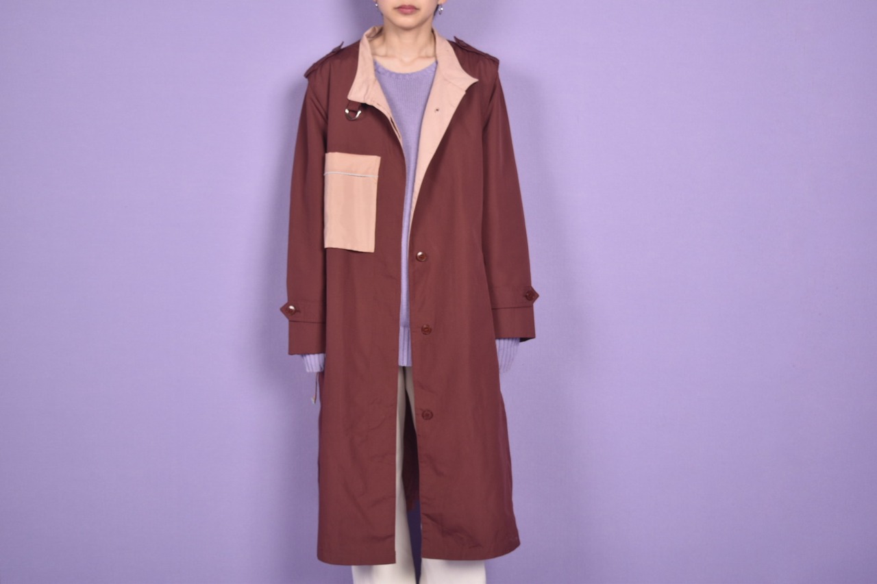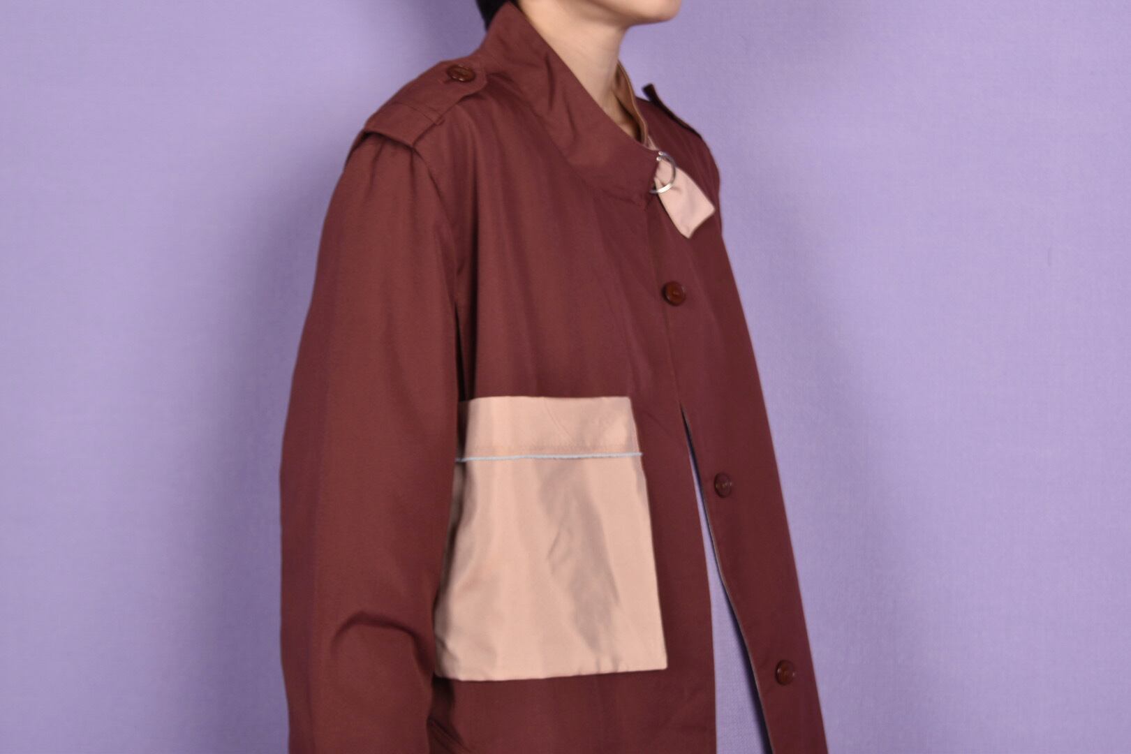 made in USAのステンカラーコート。生地感の良さ、ディティールの面白さが光ります。こちらはWRAP流にリメイクした商品です。肩パッドの取り外し、ウエストベルトの作製、パッチポケットの取り付けをしております。春先に活躍しそうな1着です。