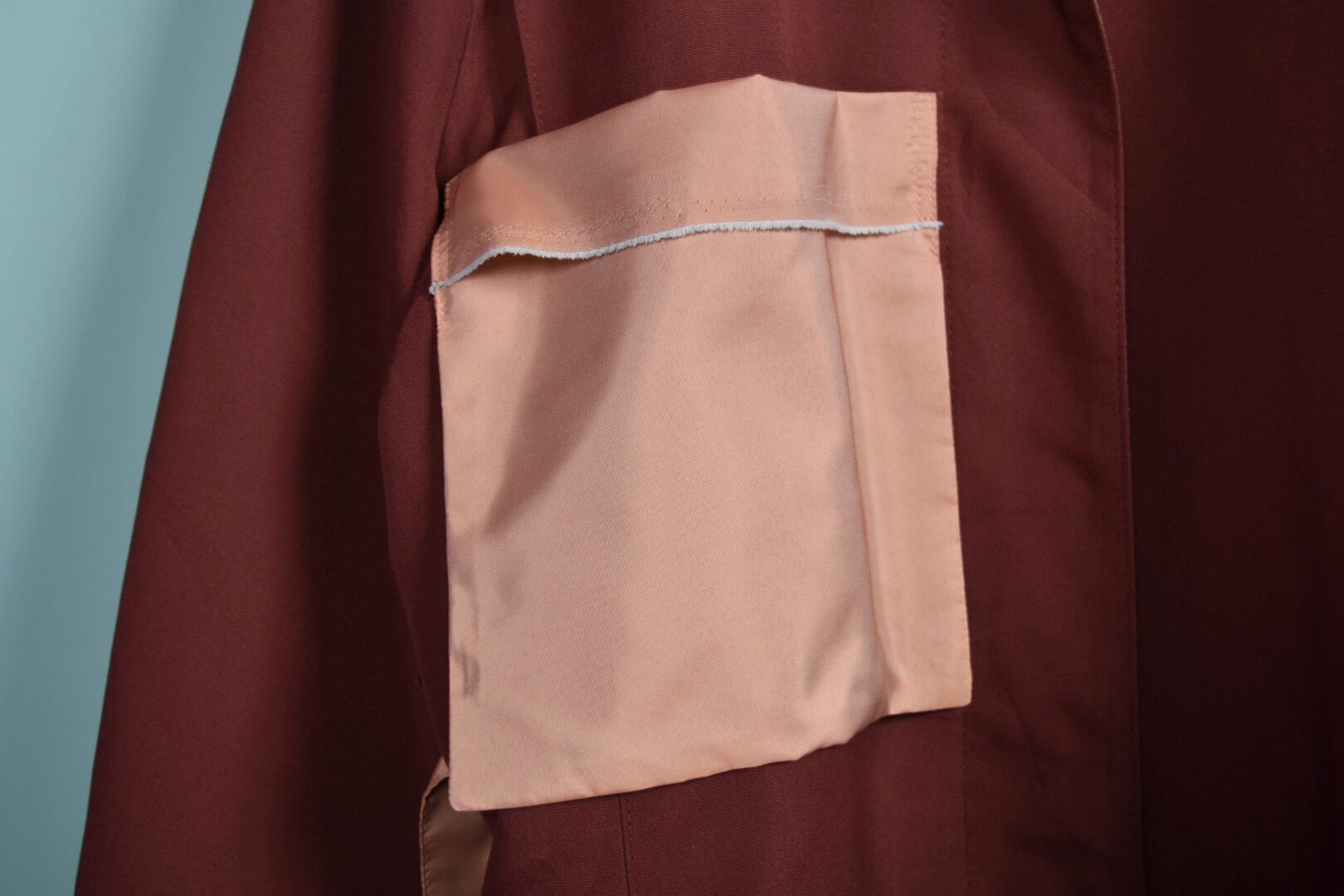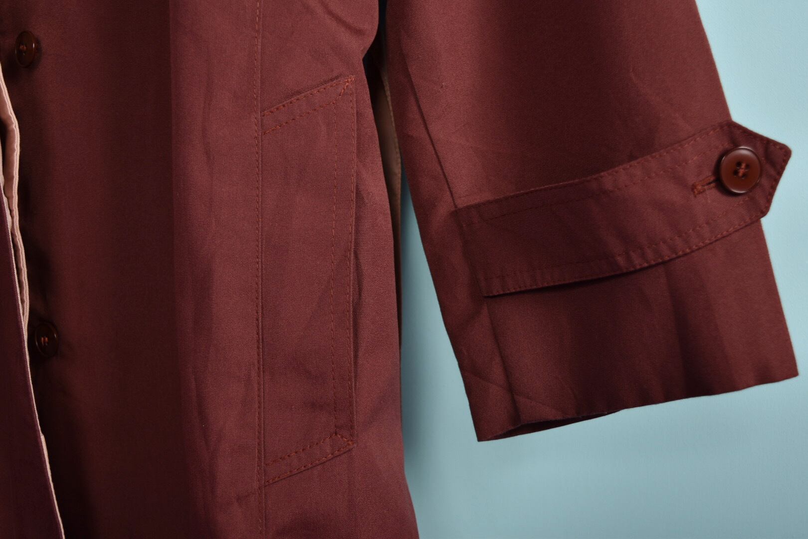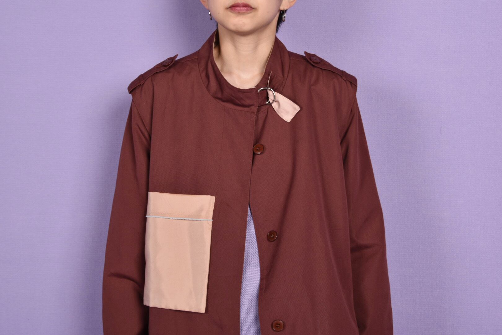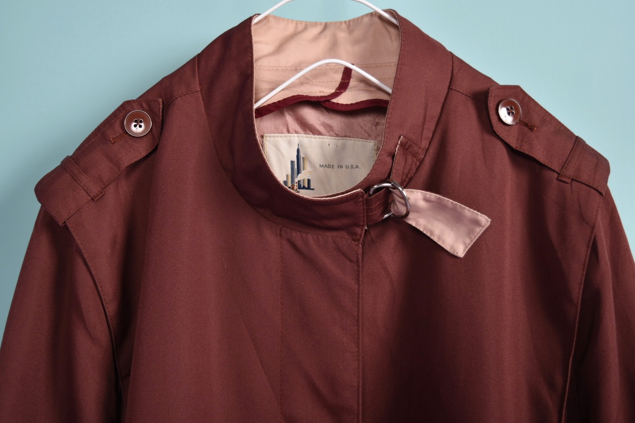 made in USAのステンカラーコート。生地感の良さ、ディティールの面白さが光ります。こちらはWRAP流にリメイクした商品です。肩パッドの取り外し、ウエストベルトの作製、パッチポケットの取り付けをしております。春先に活躍しそうな1着です。