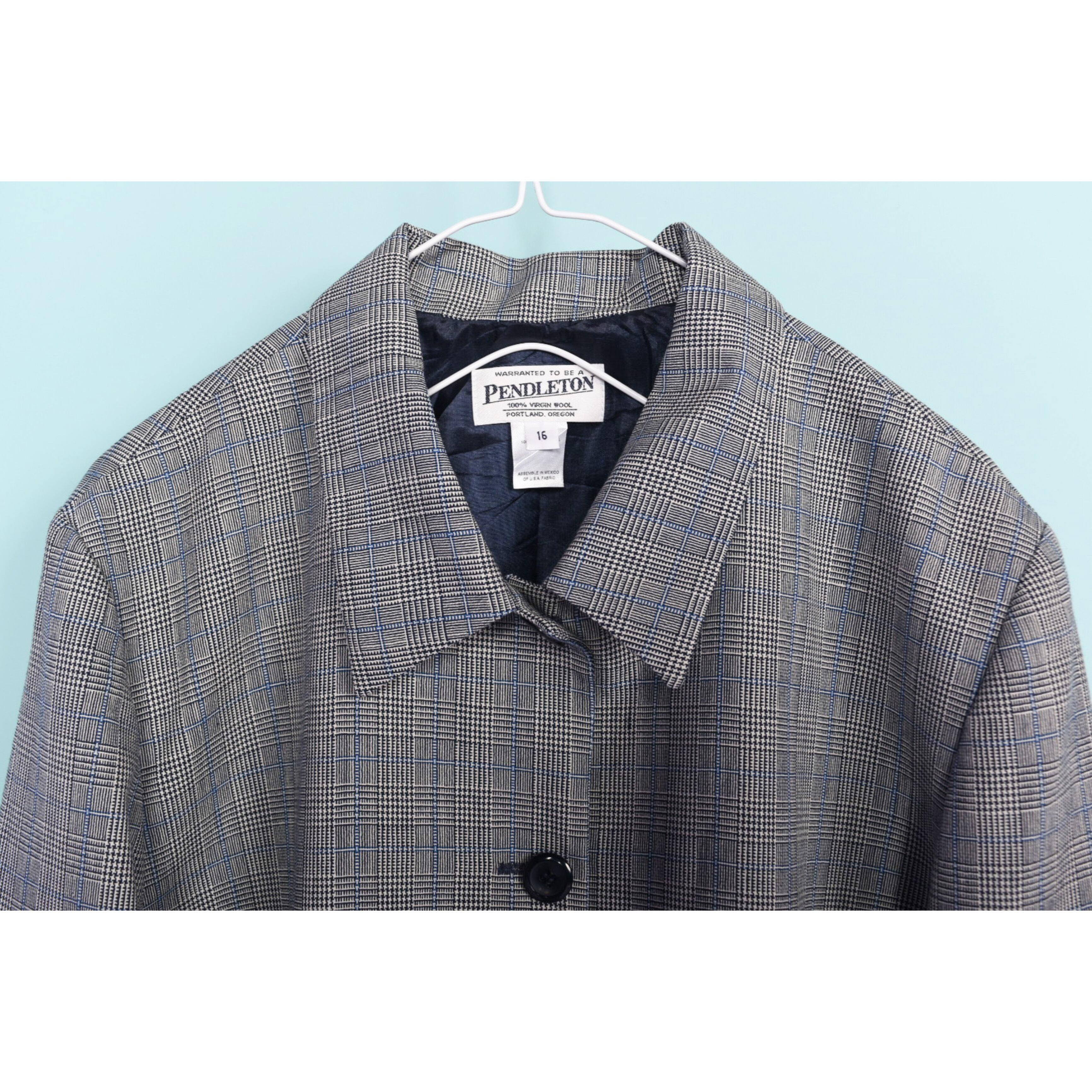 PENDLETONのサマーウールグレンチェック生地を使用したジャケットです。ブルーが入ったチェックがとてもカッコいい生地です。レディースですが、もともと肩パッドが入った80年代のシルエットなのでメンズがジャストサイズで着用出来ます。レトロな雰囲気が好きな女性ももちろん○シームポケットもミニマルな見た目でかっこいいです。