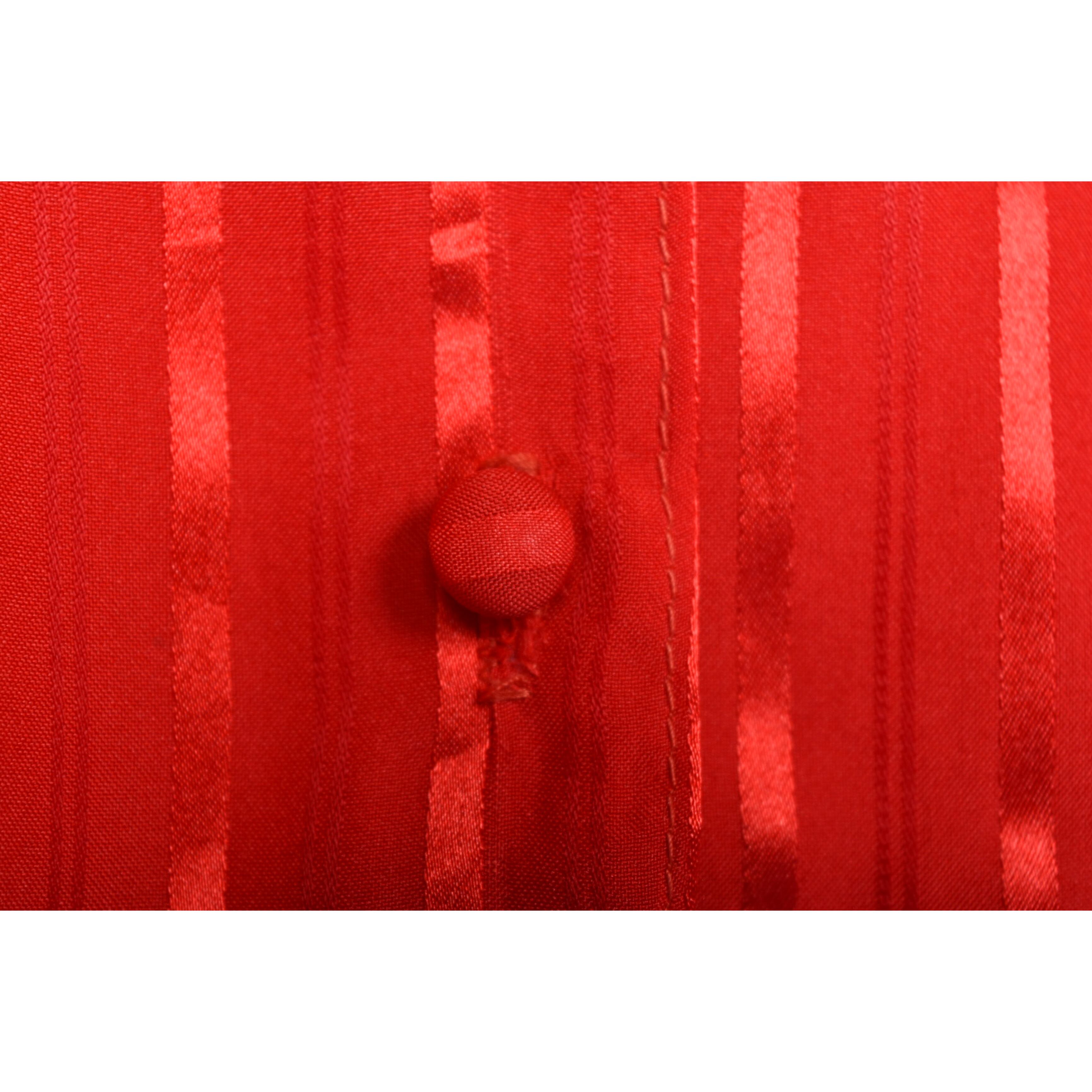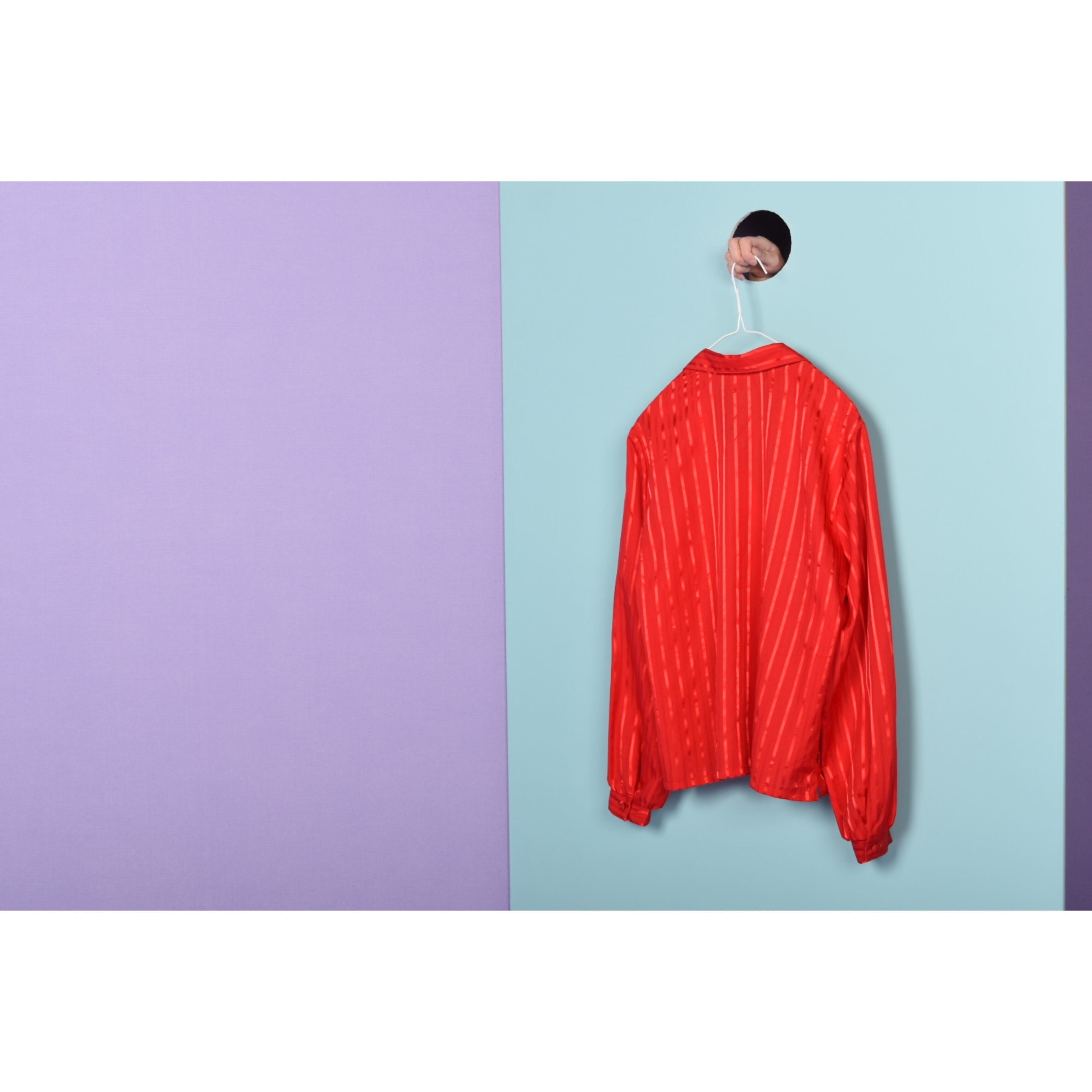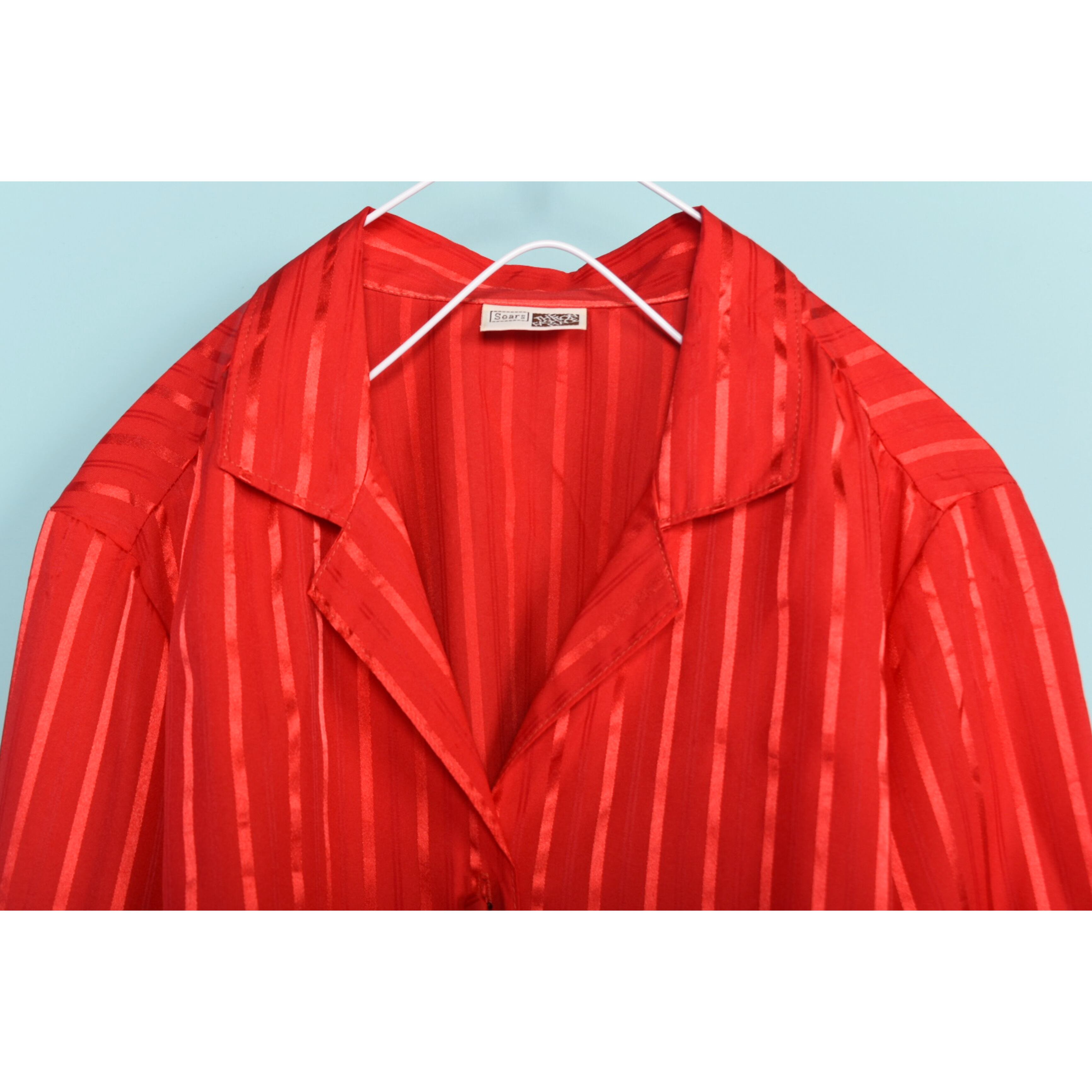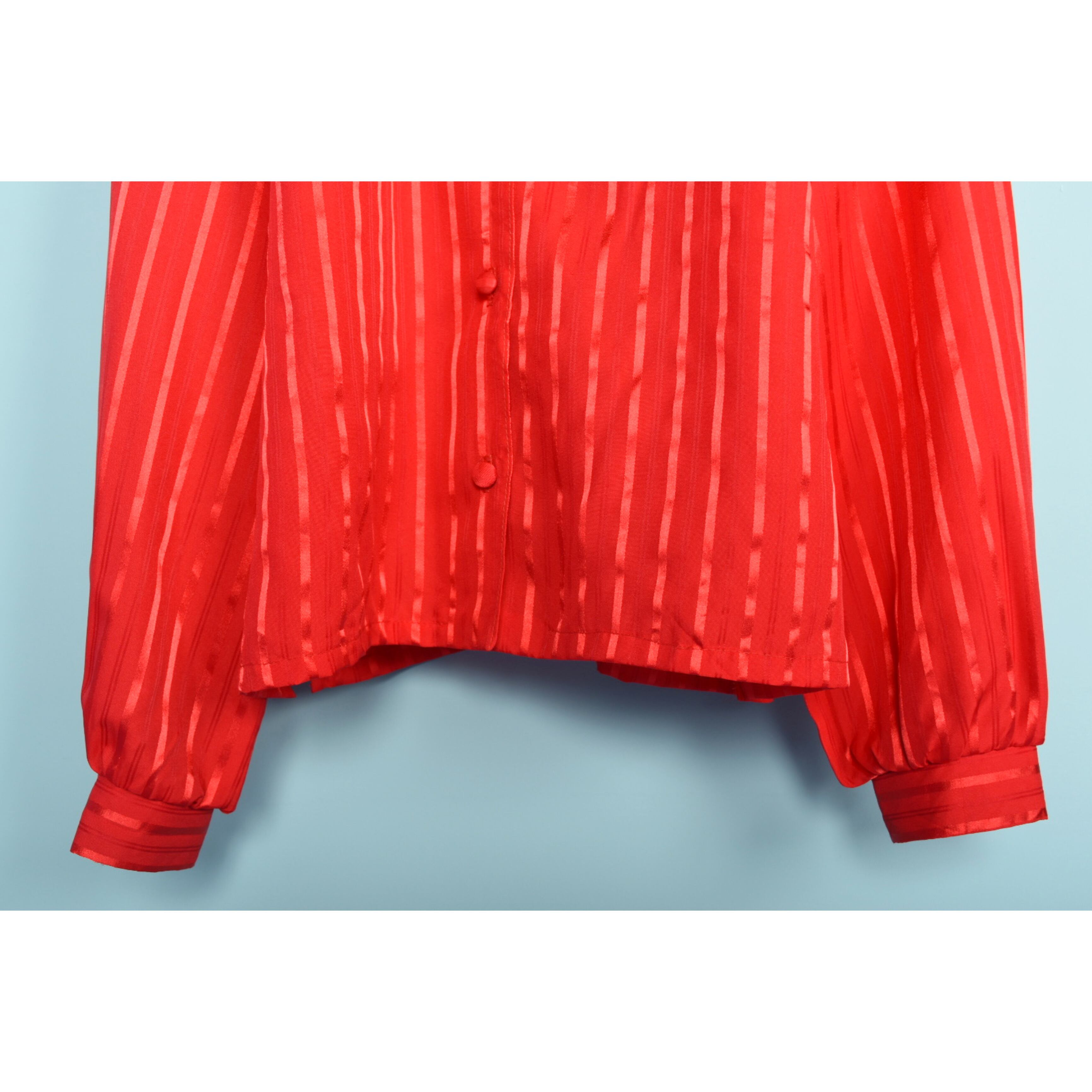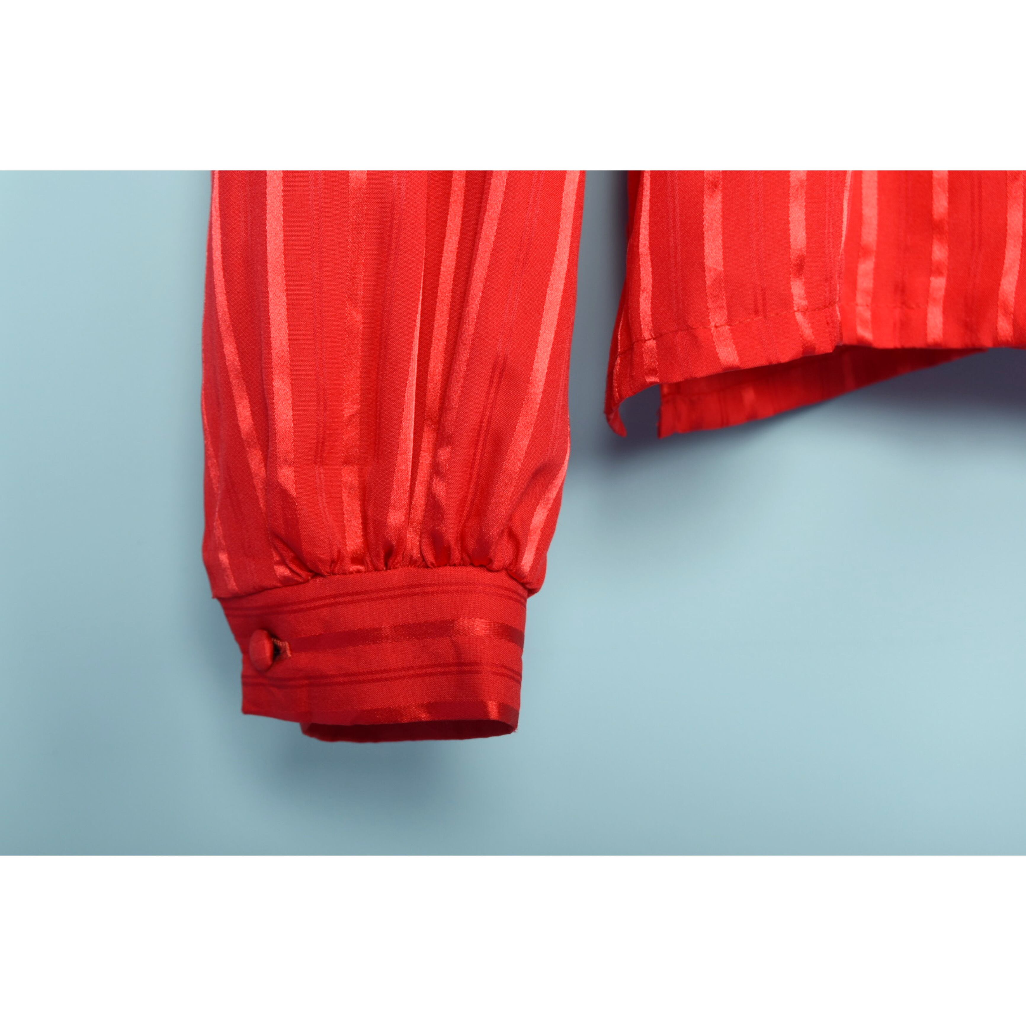 70年代に作られた開襟のブラウスです。光沢のあるストライプ柄がこの時季らしい明るい印象です。