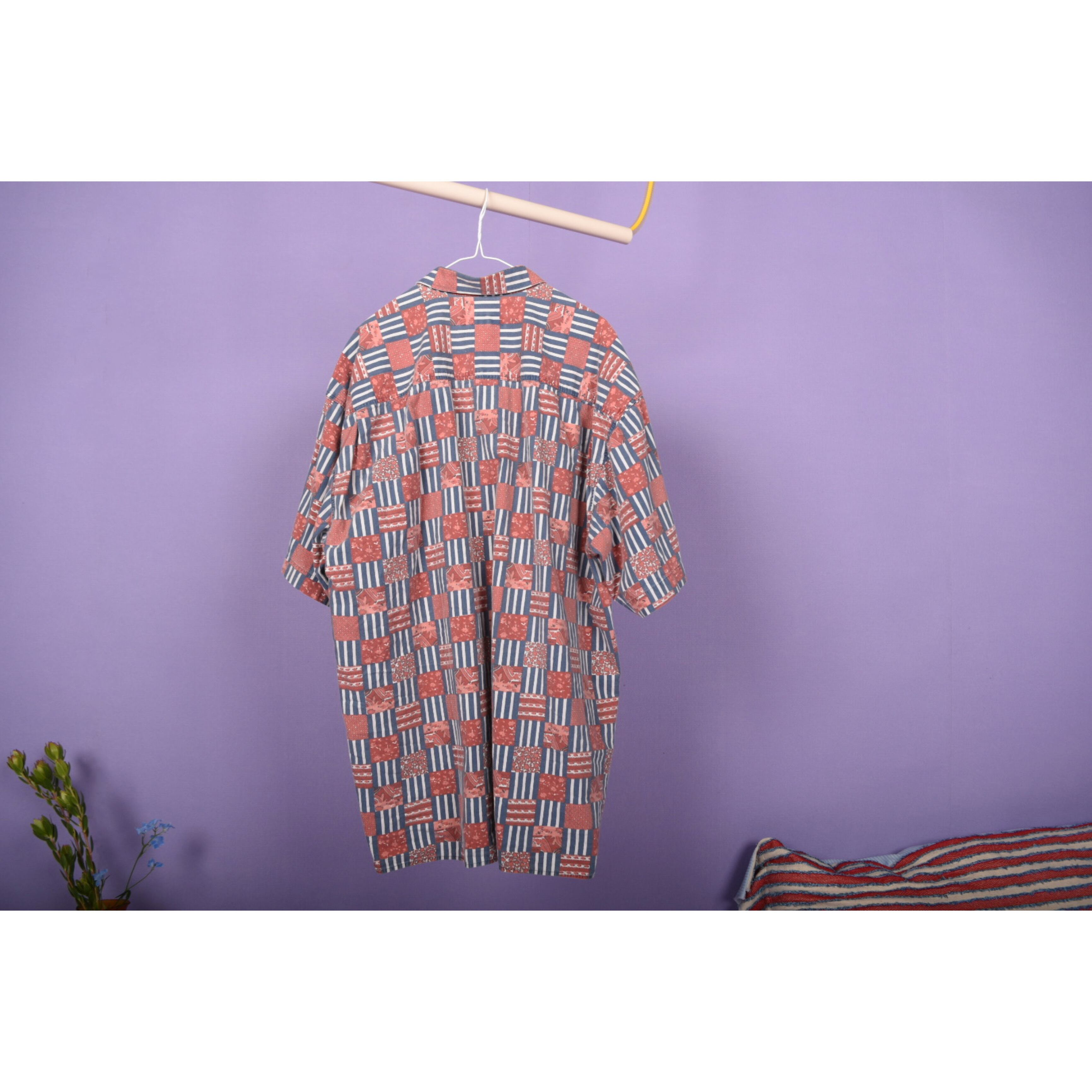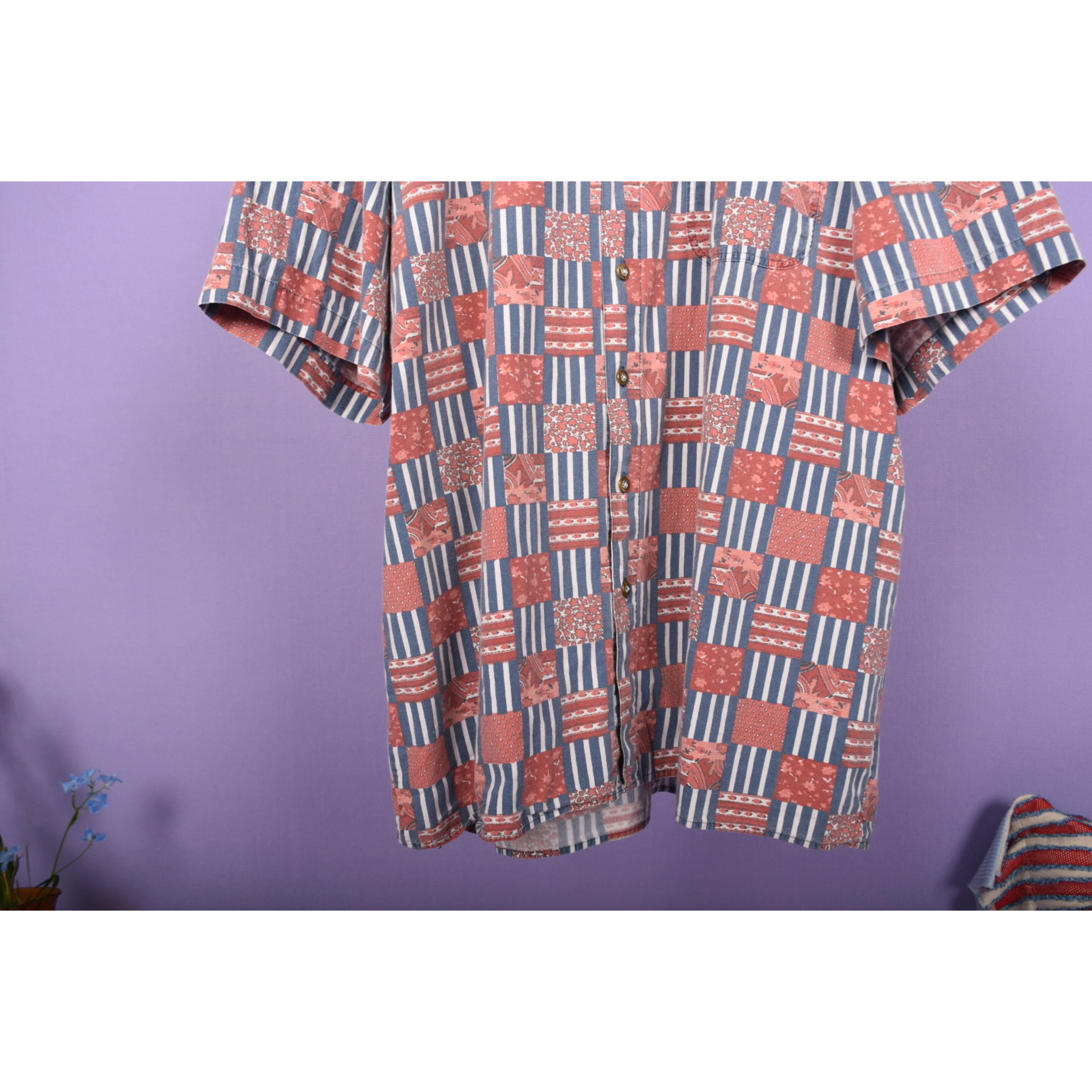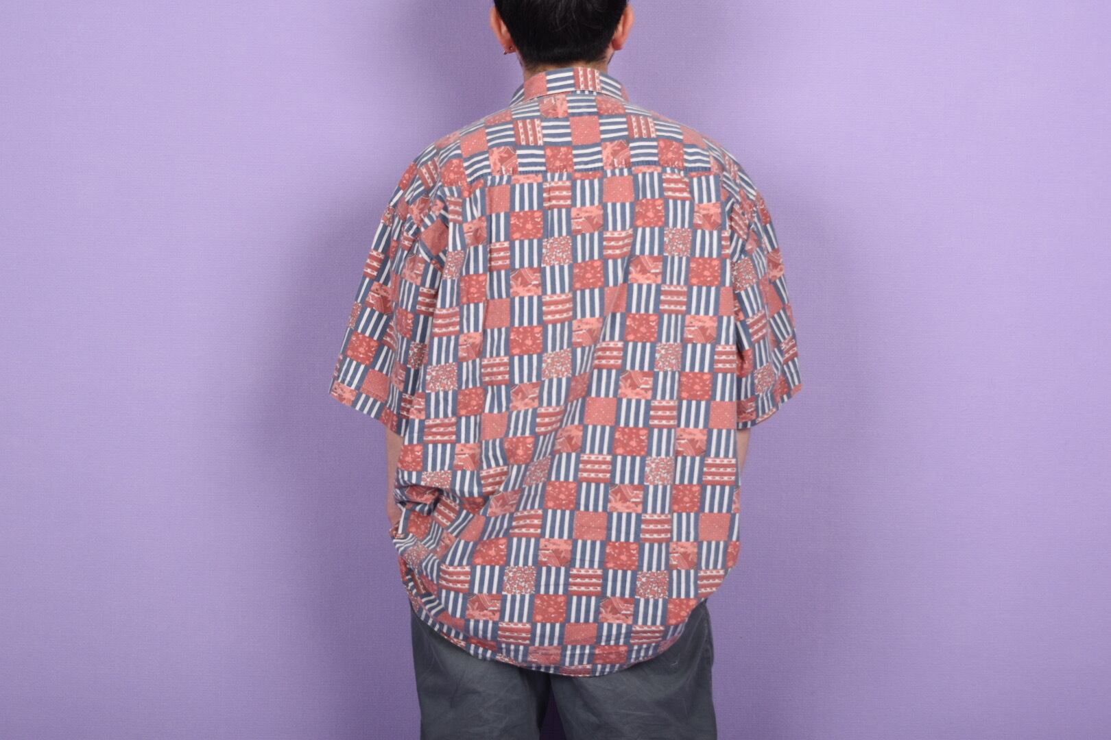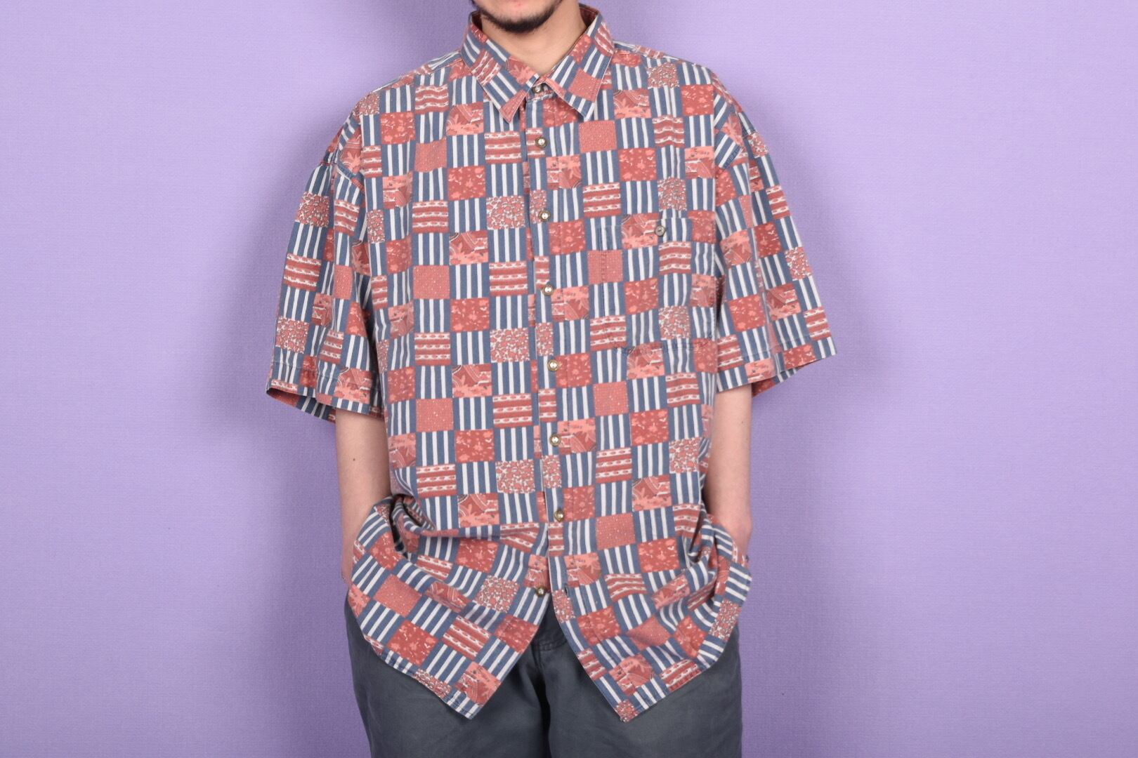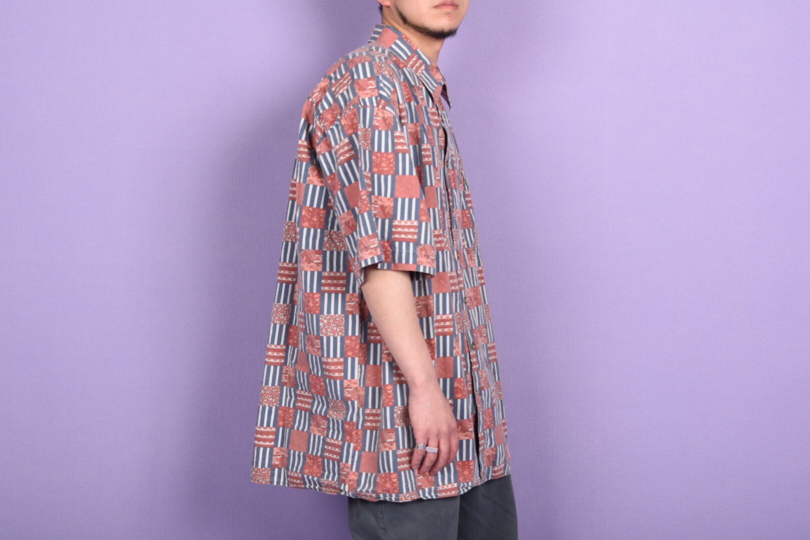80s stripe & mosaic flower print ss shits