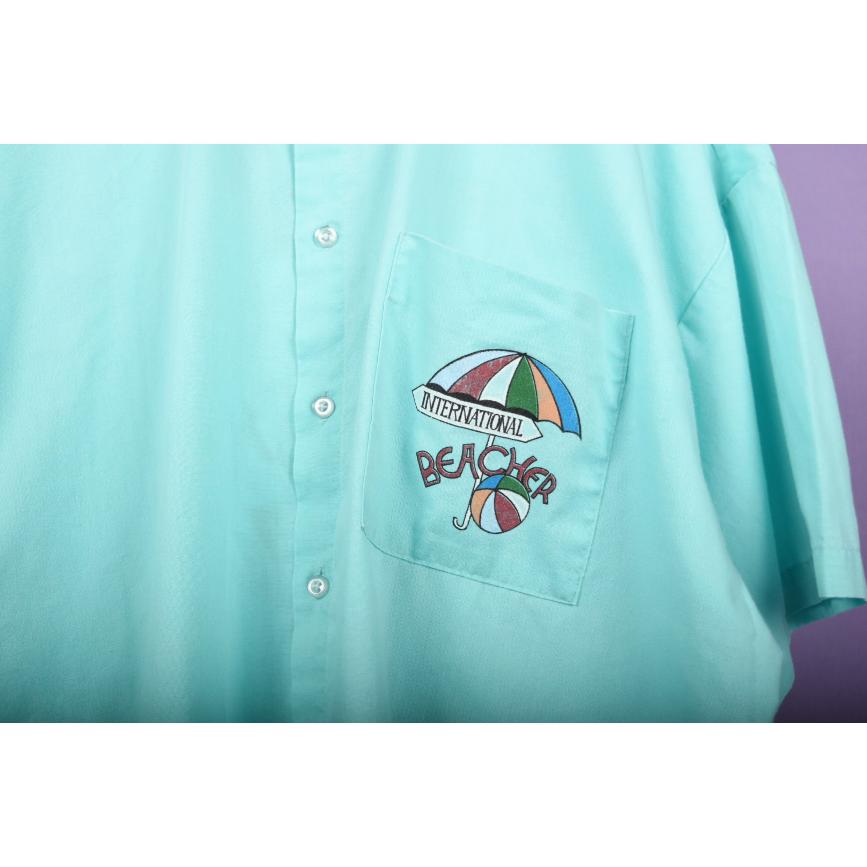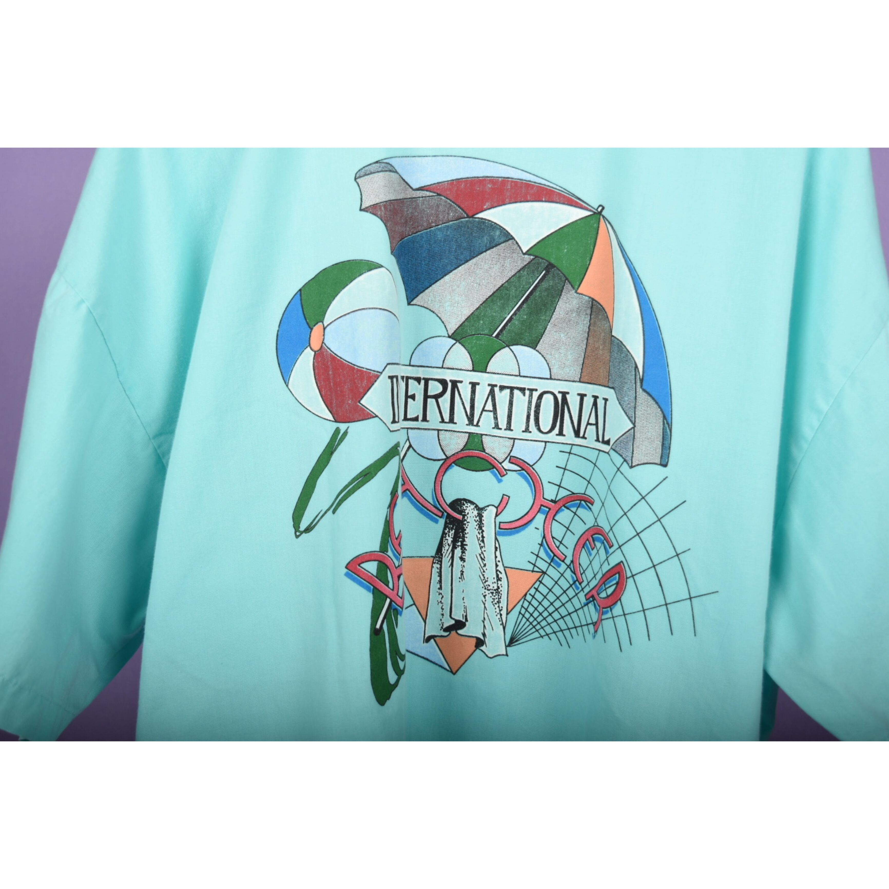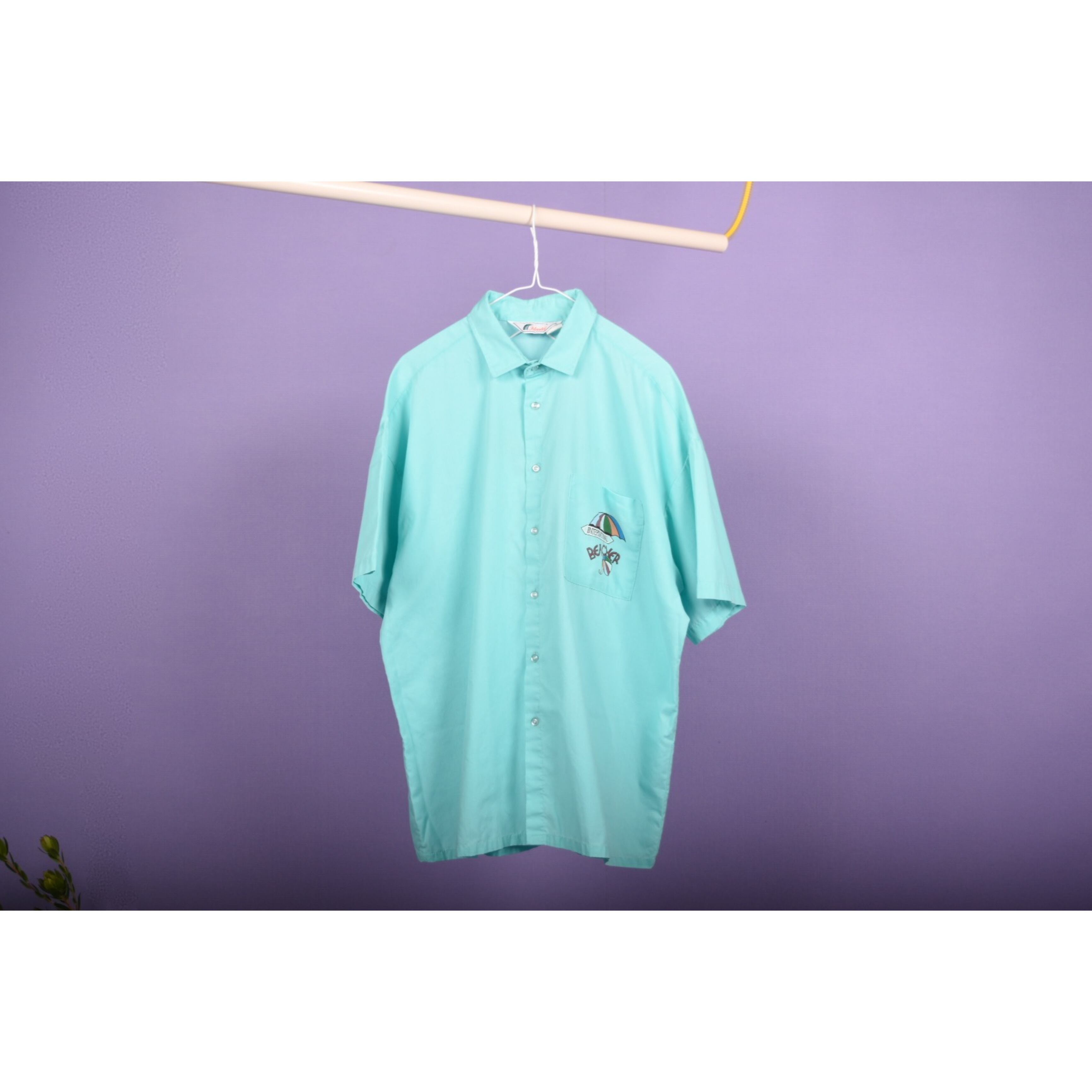 フロント、バックに入ったパラソルプリントがとても可愛い半袖シャツです。セラドンカラーが夏にぴったりです。ユニセックスでおすすめです!
