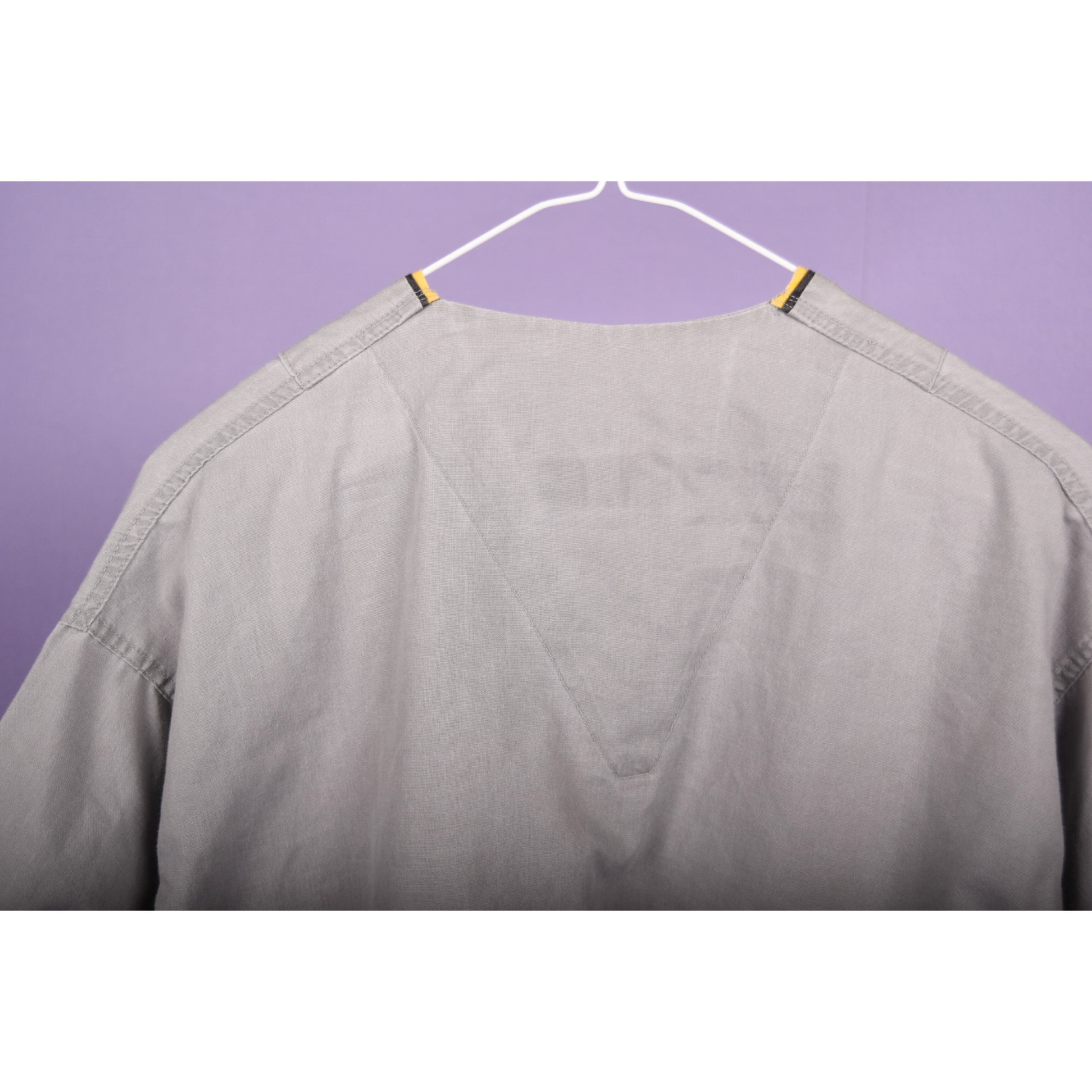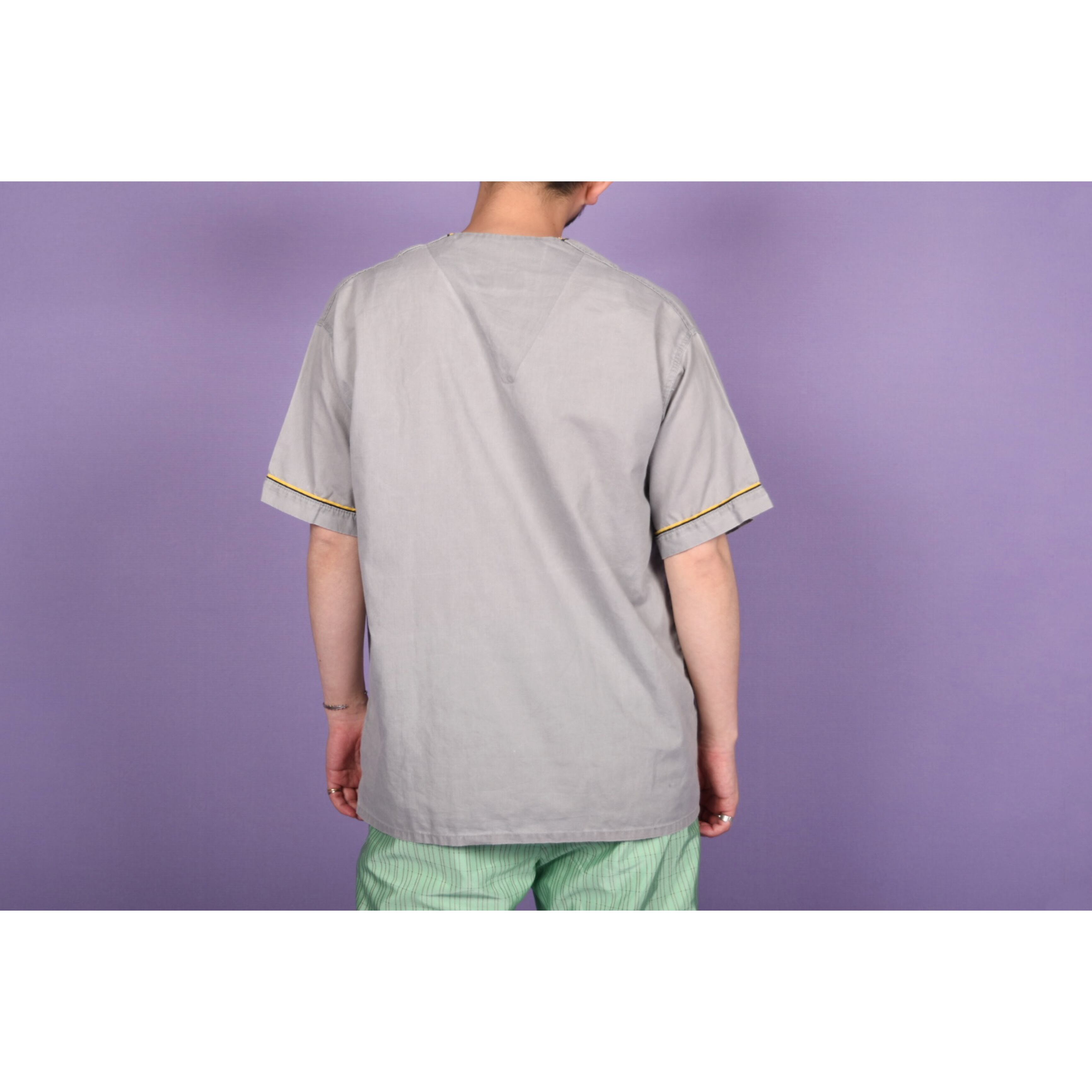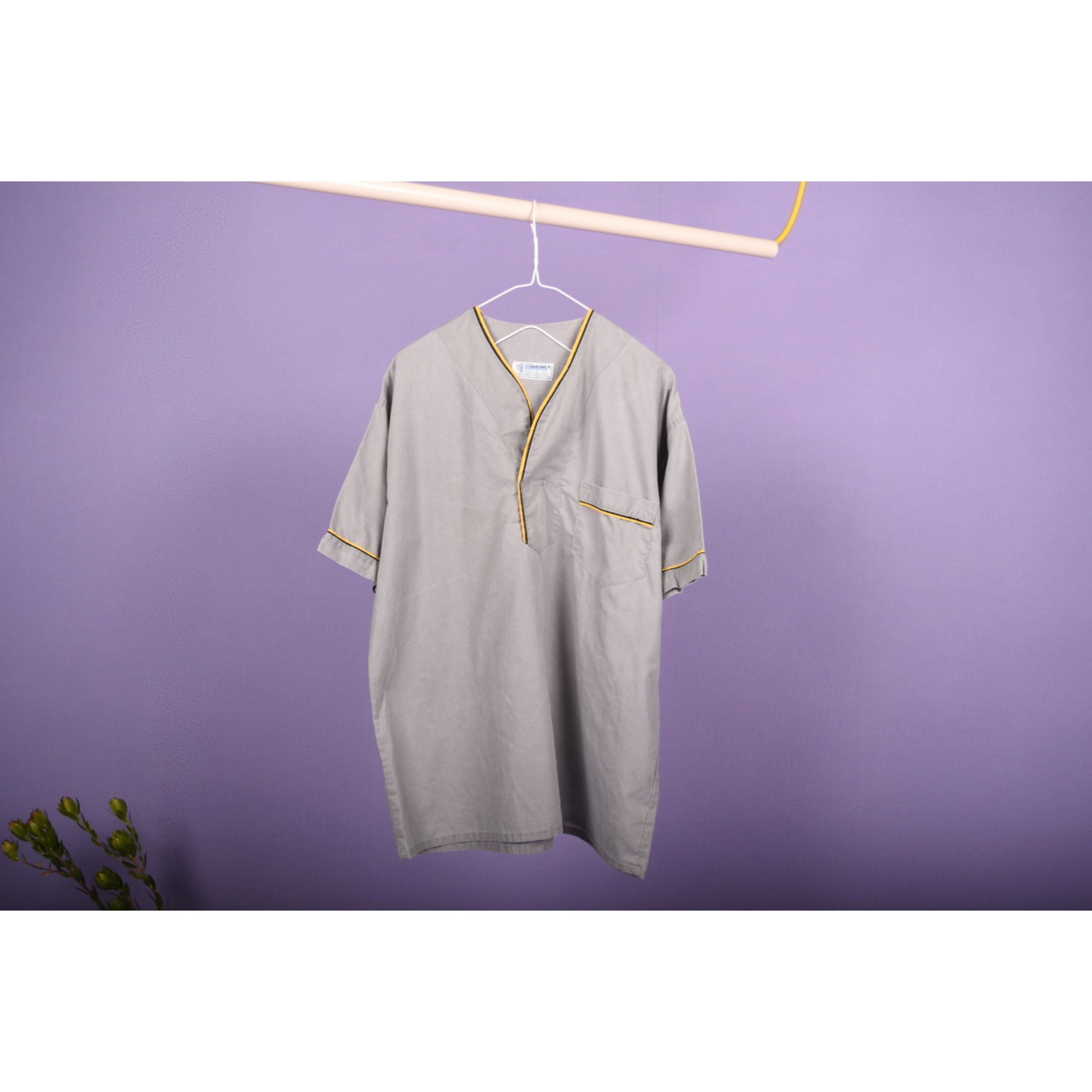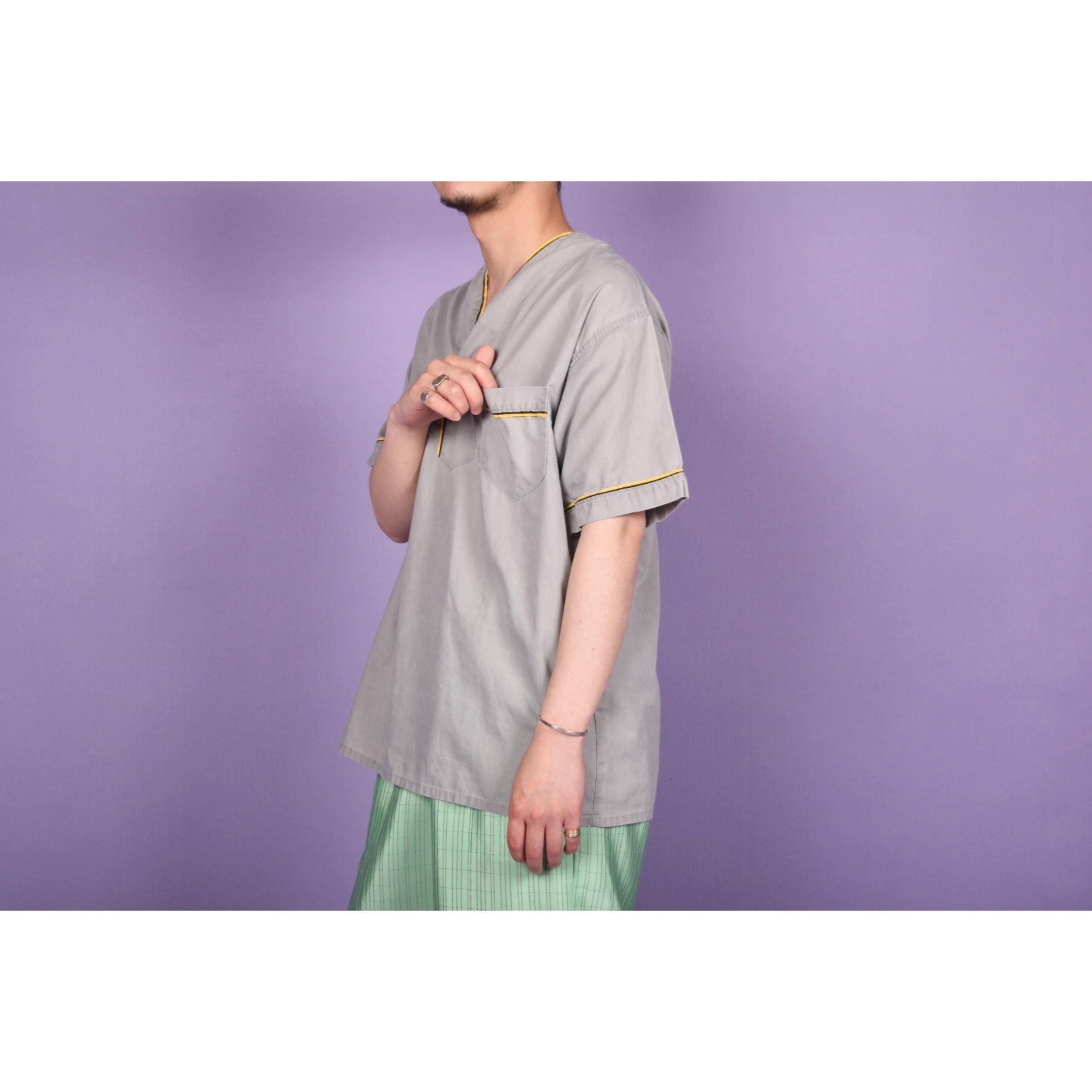 70年代のワークシャツです。ライトグレーベースにイエローのパイピングが可愛いです。