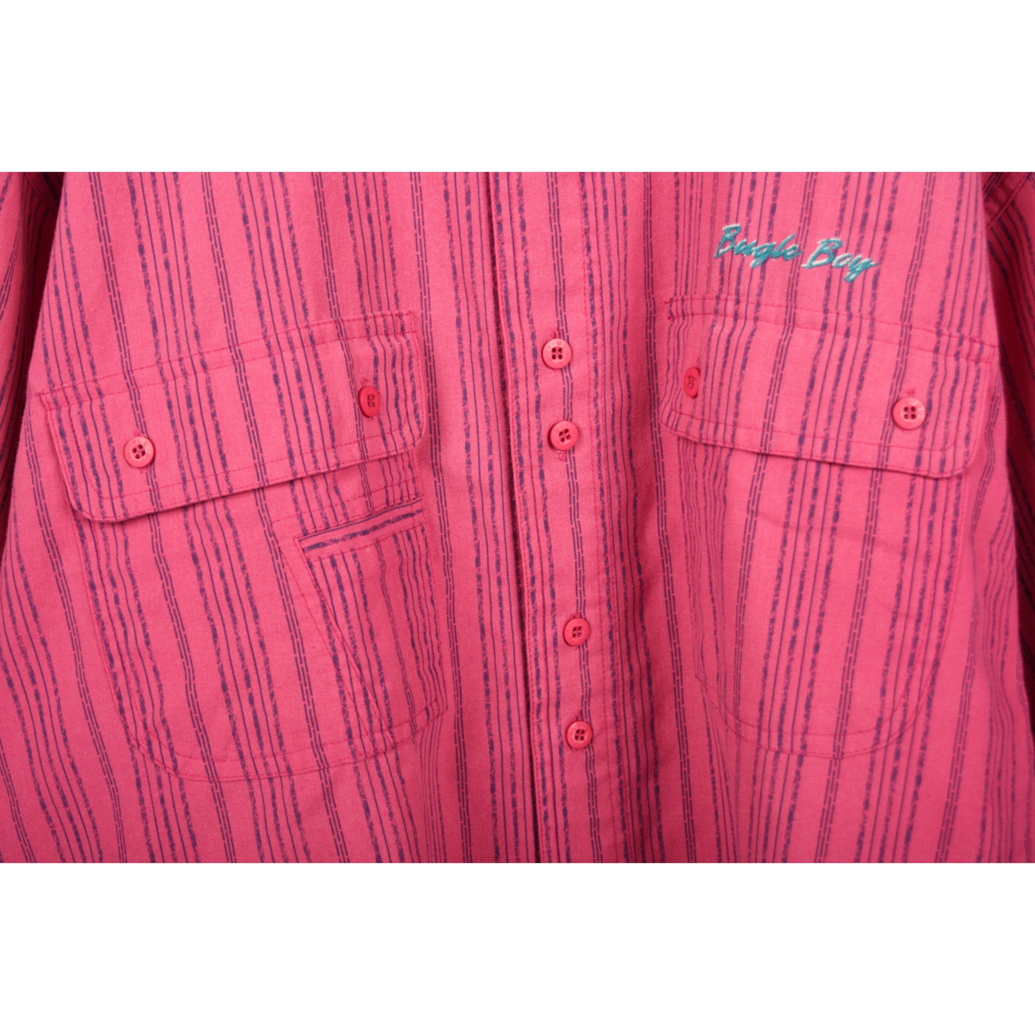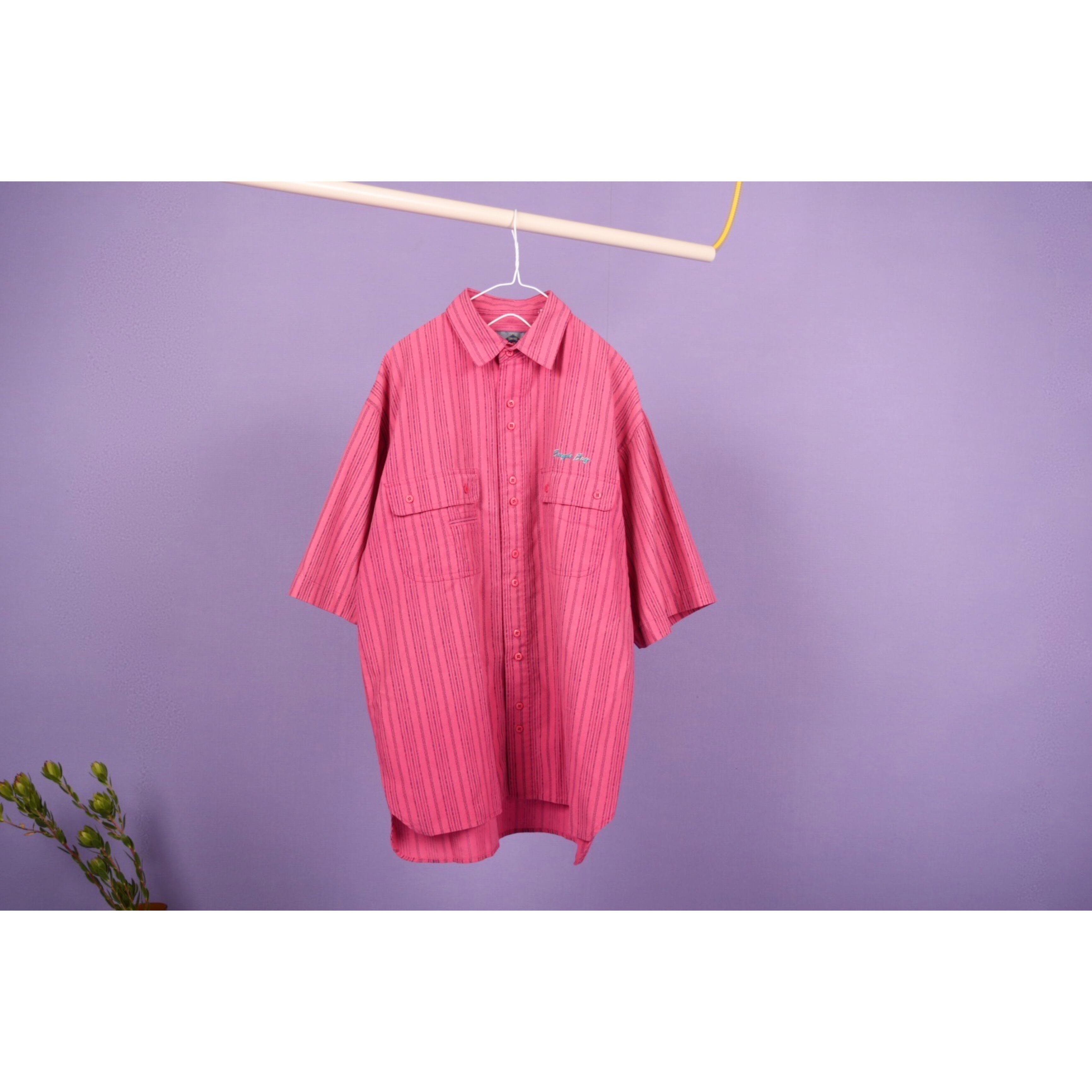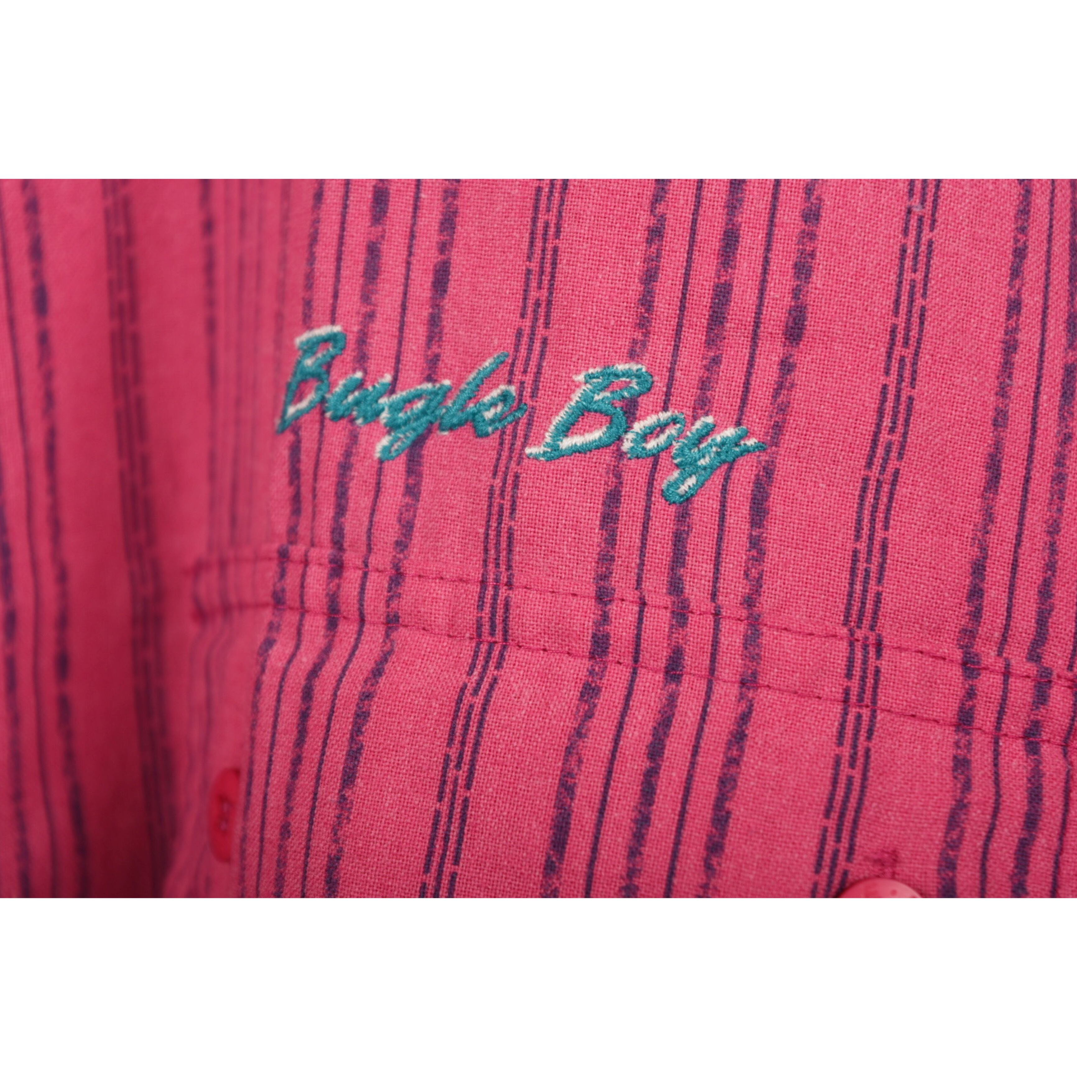 ピンクボディに黒の手書き風のストライプ柄が可愛い半袖シャツです。ポケットや胸の刺繍など、BUGLE BOYらしいセンスの良いディティールです。ユニセックスでオススメです!
