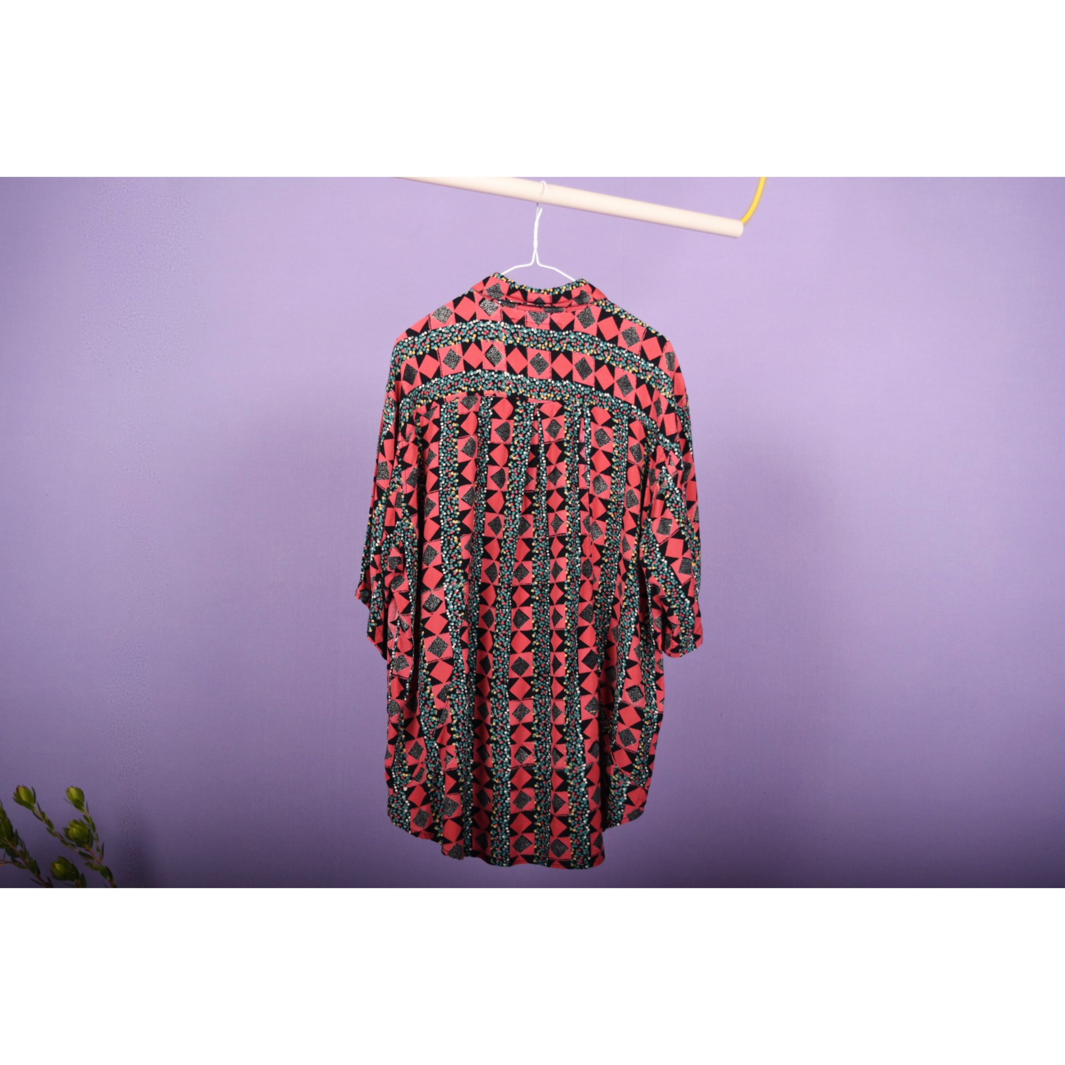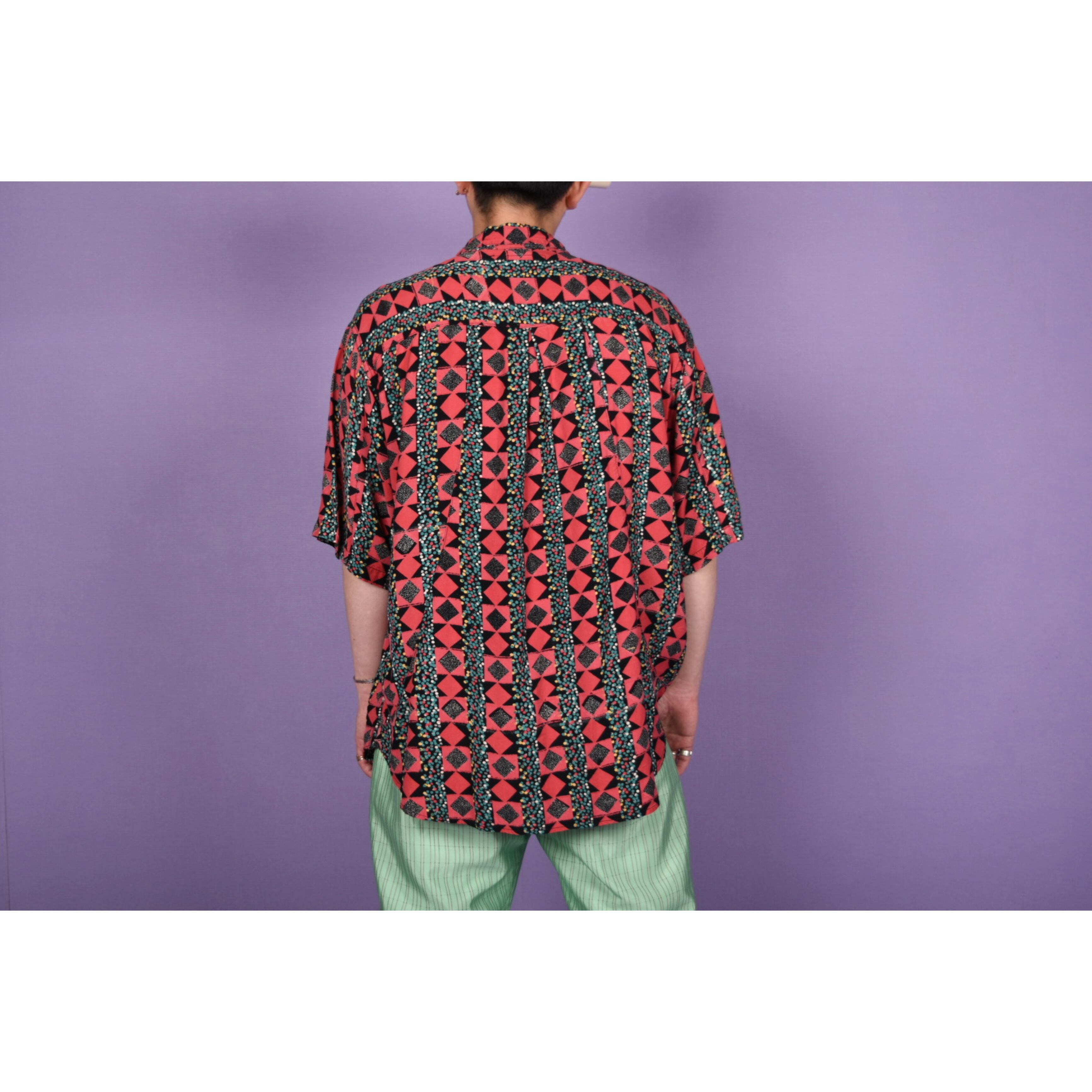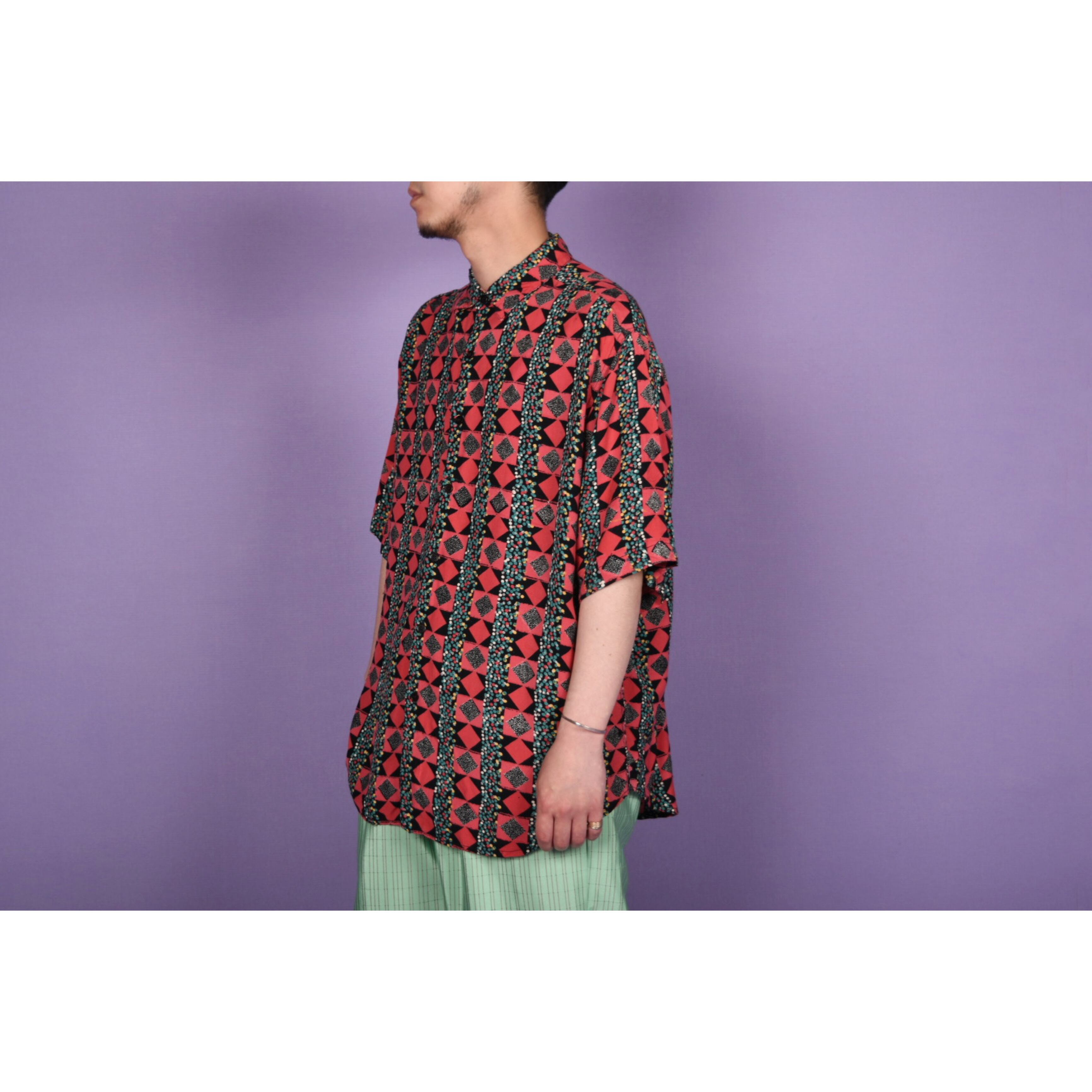 派手派手なセンスの良い柄のシャツです。わかりづらいですが、バックのパターンが面白いです。テンション上げたい日にはこの一着。