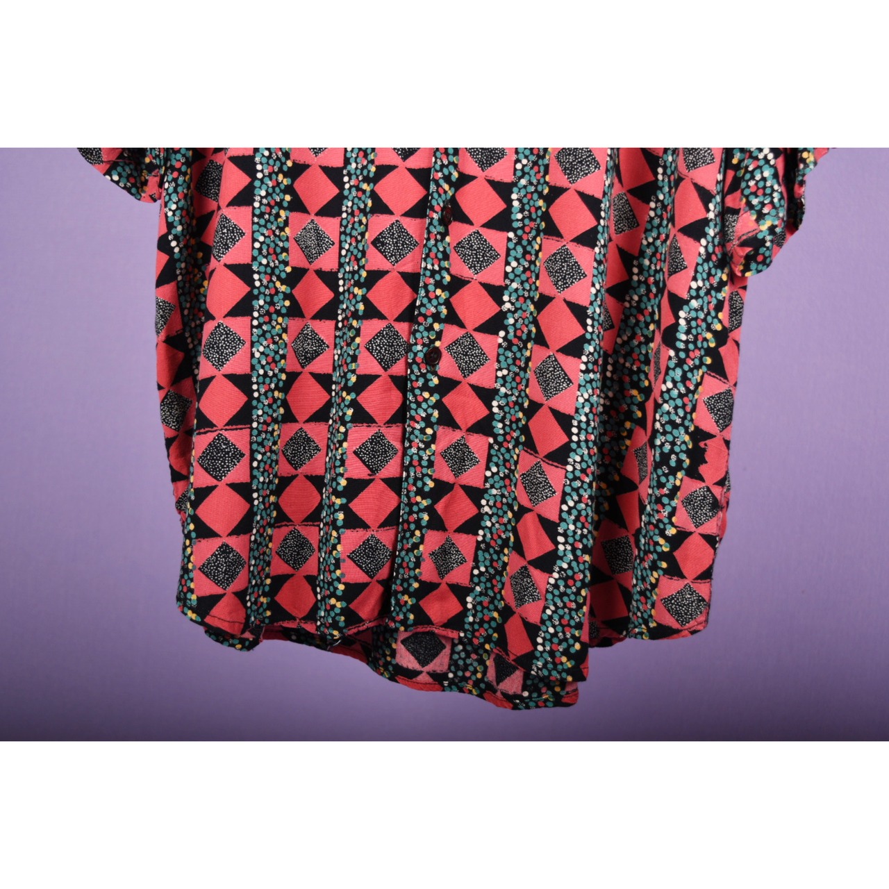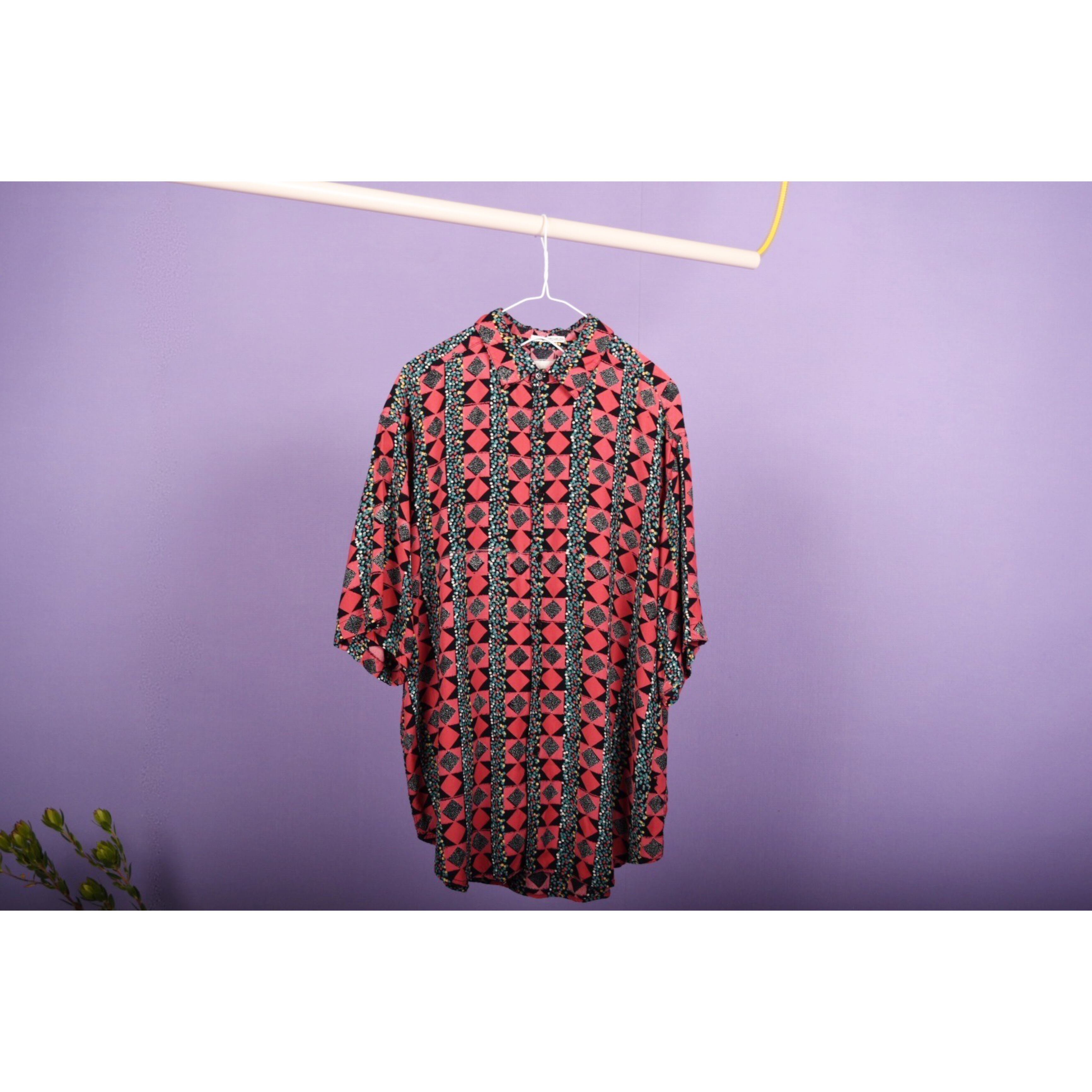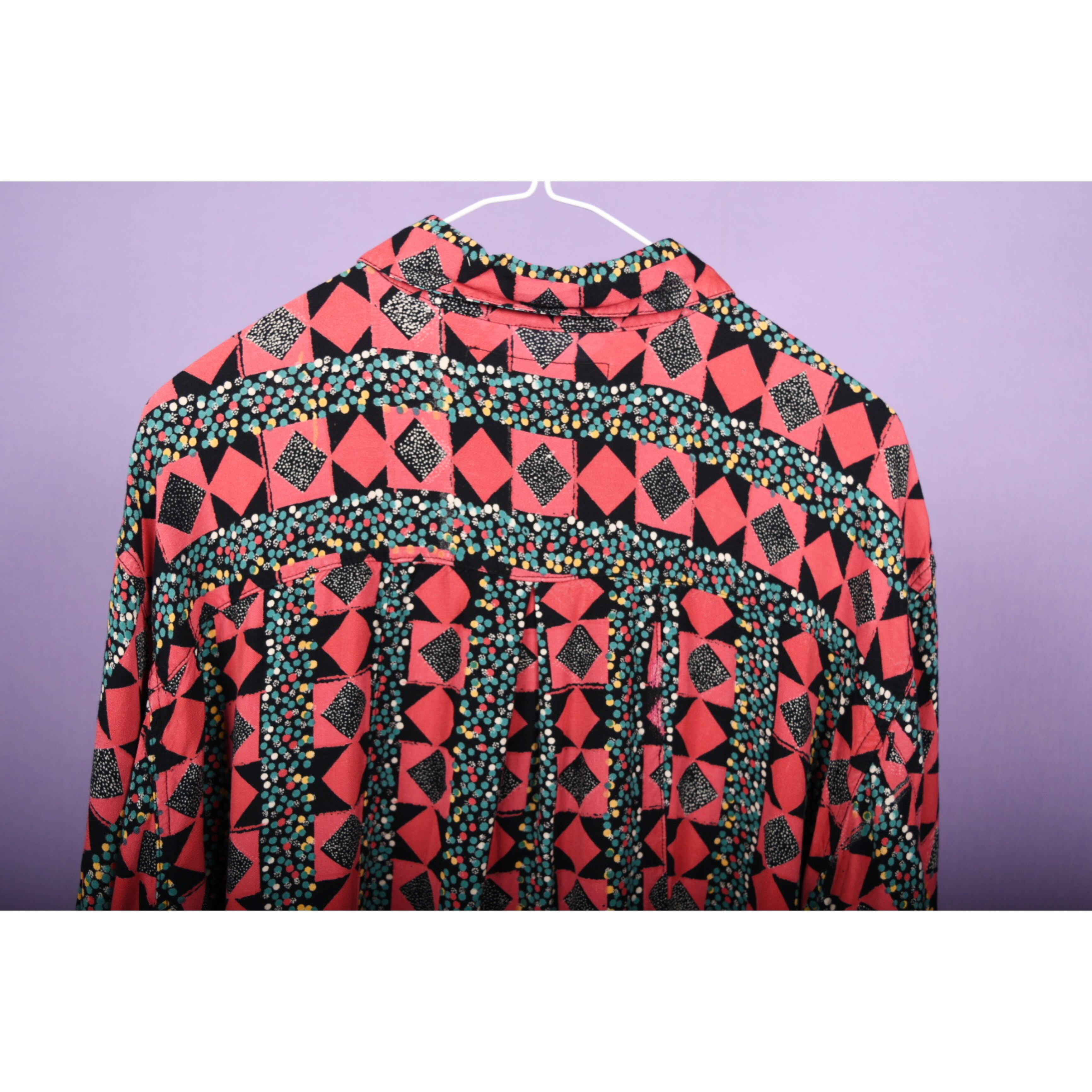 派手派手なセンスの良い柄のシャツです。わかりづらいですが、バックのパターンが面白いです。テンション上げたい日にはこの一着。