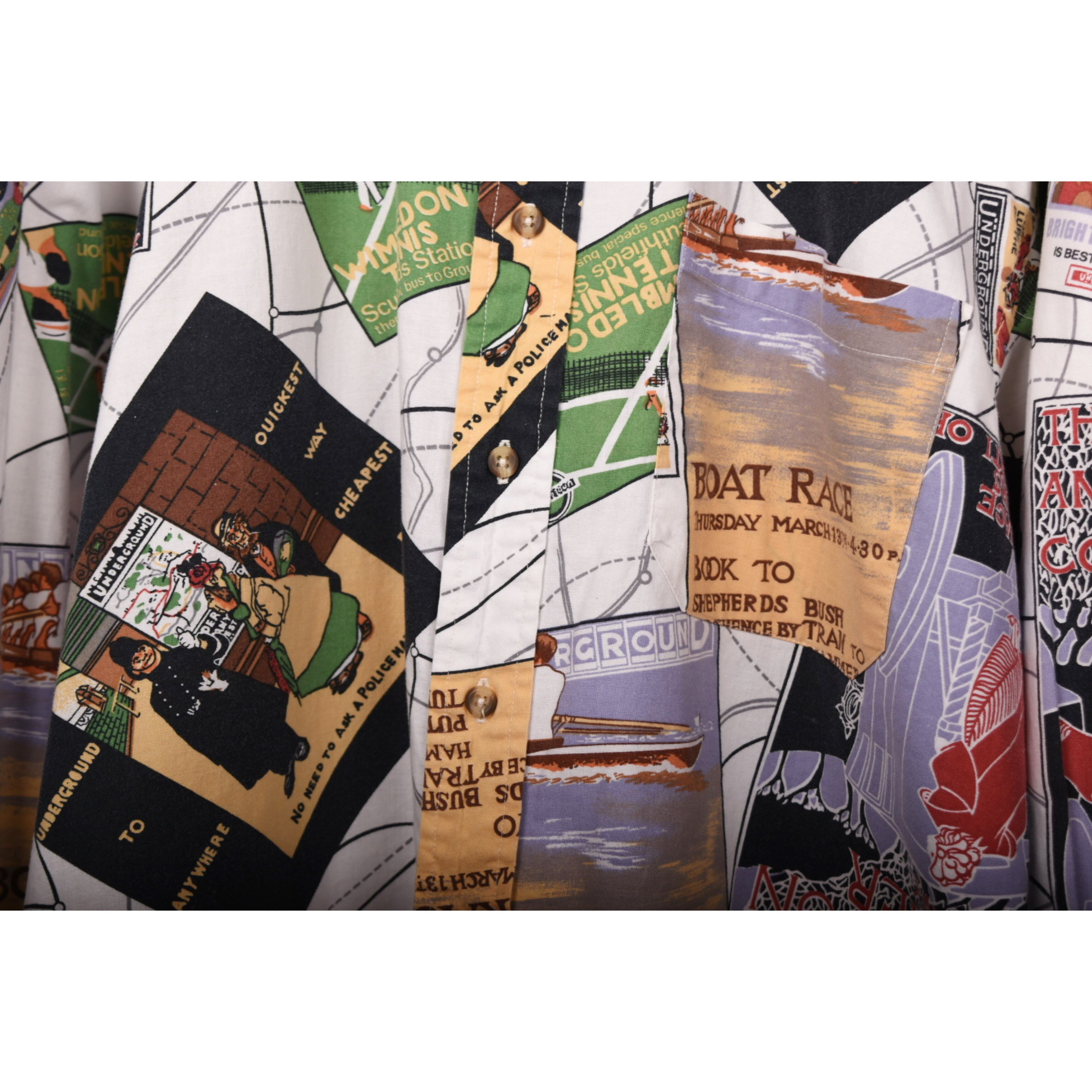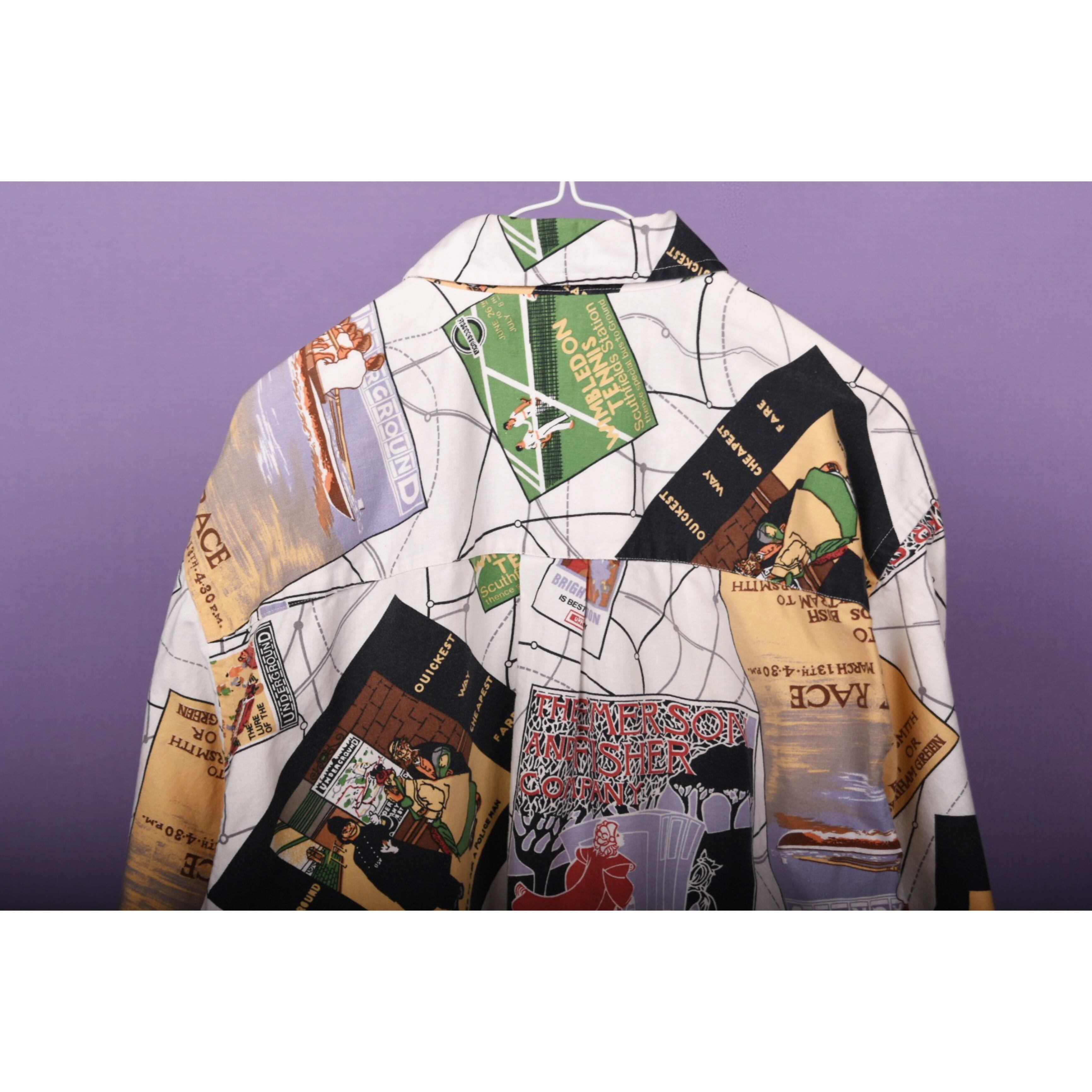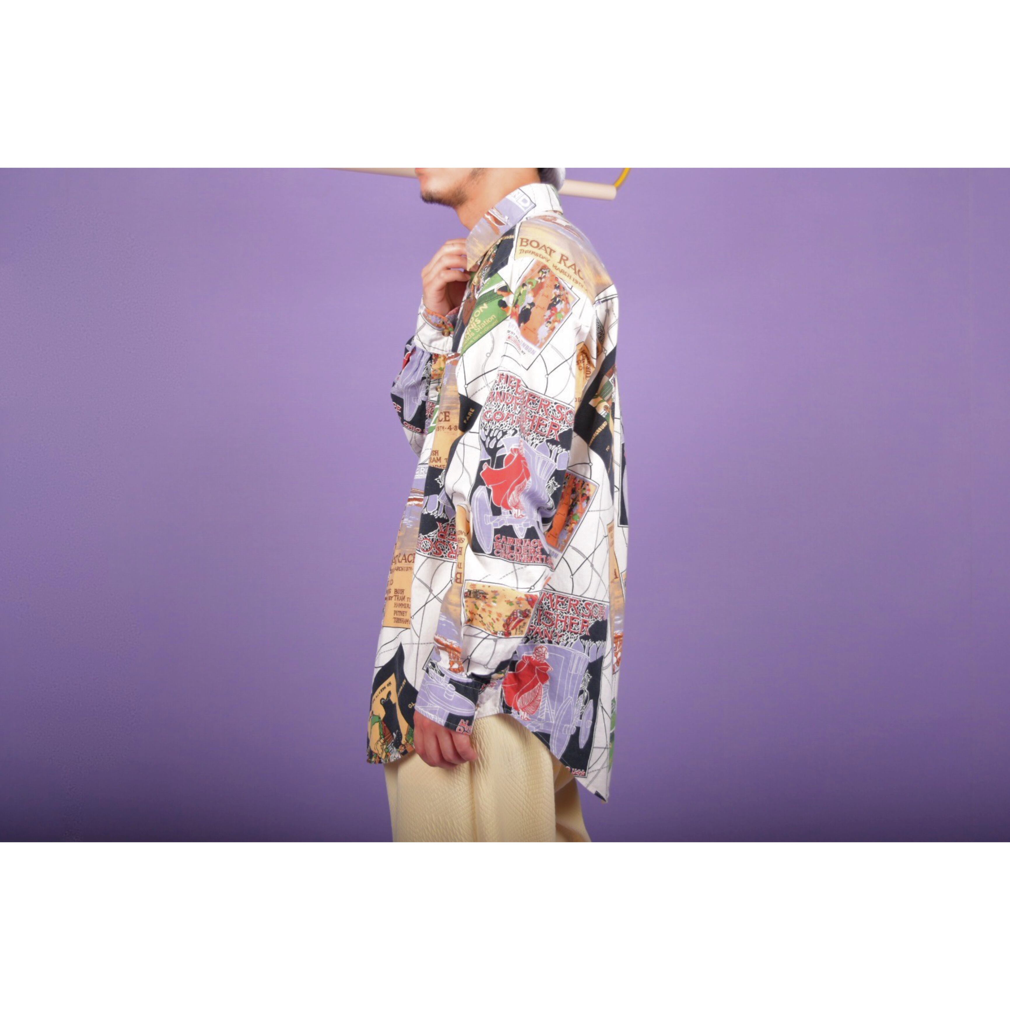 街の風景が切り取られたような柄がプリントされた総柄シャツ。センス抜群です。