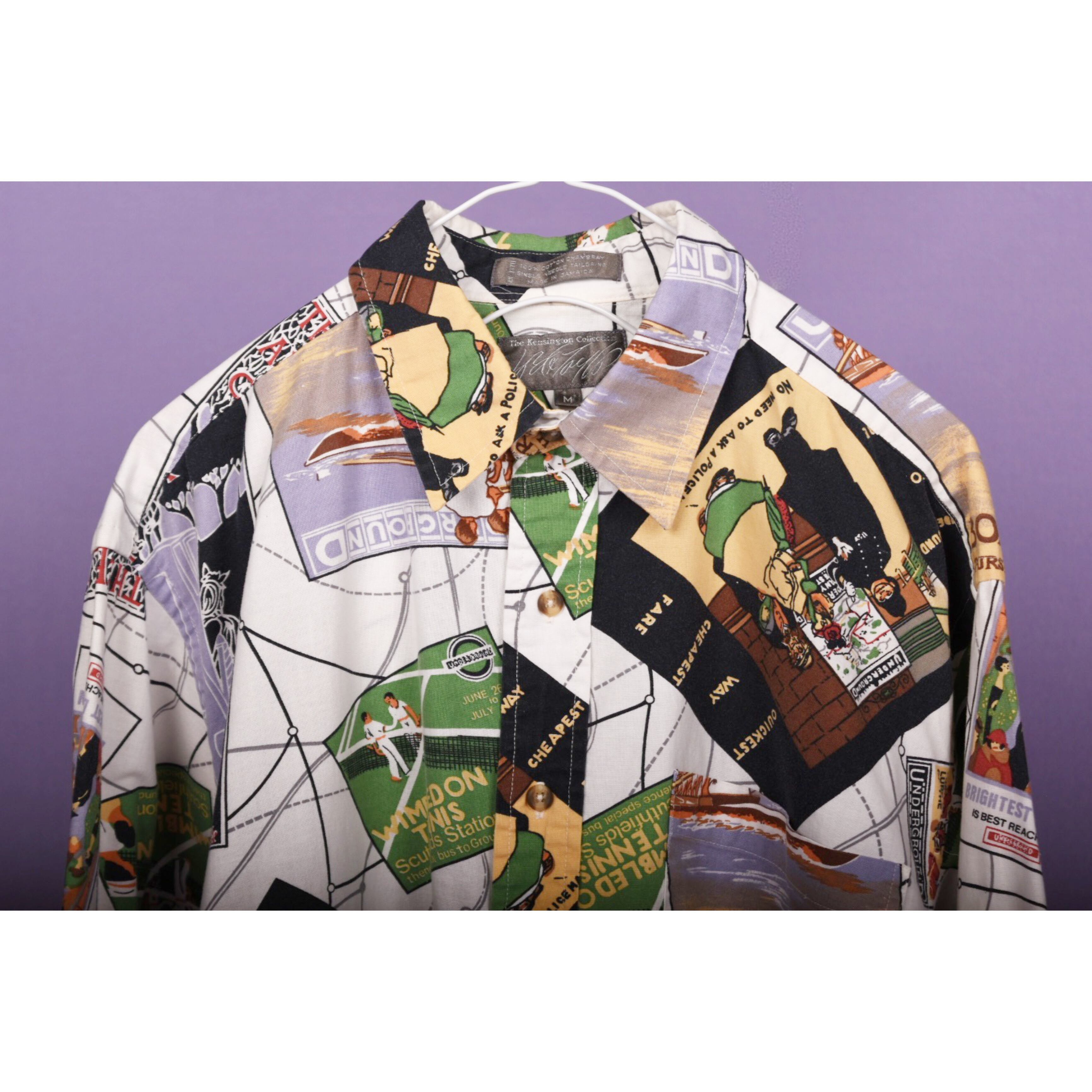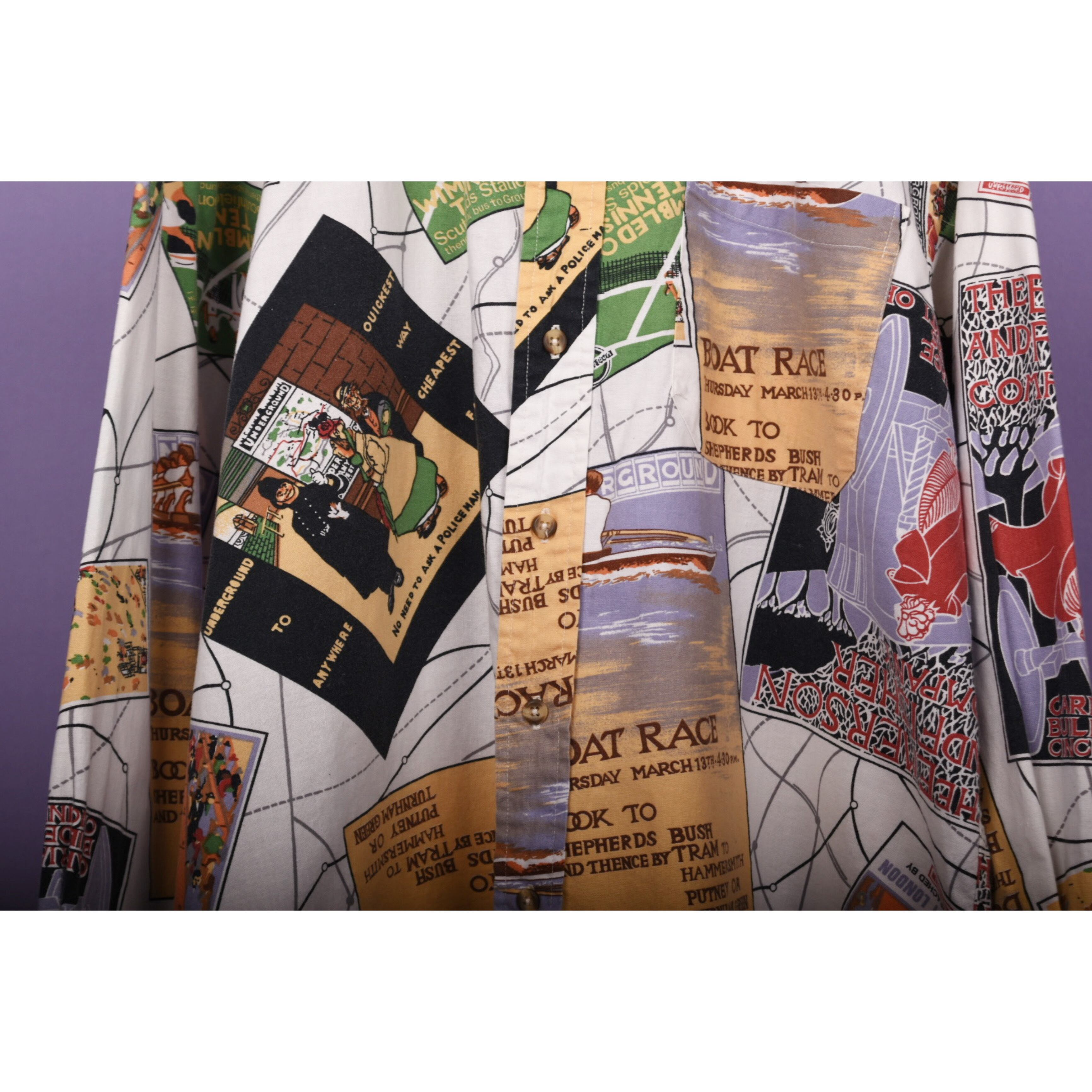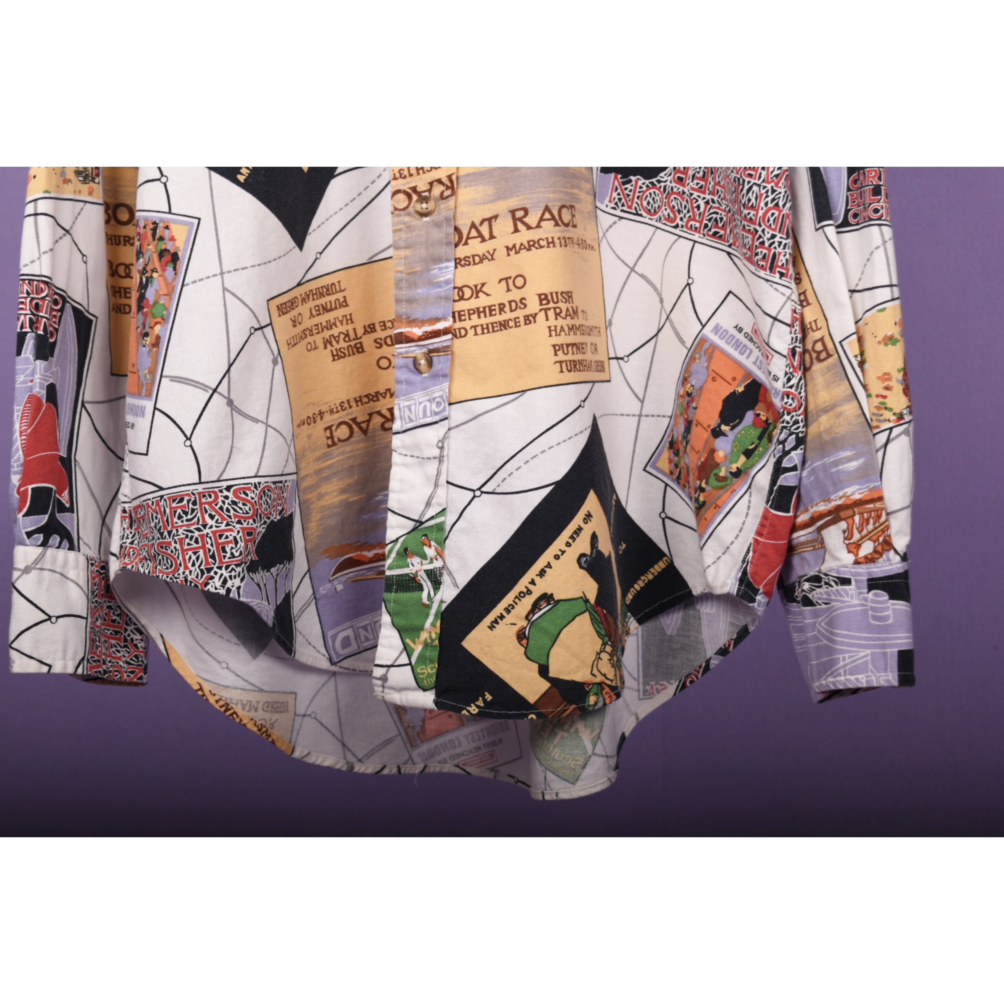 街の風景が切り取られたような柄がプリントされた総柄シャツ。センス抜群です。