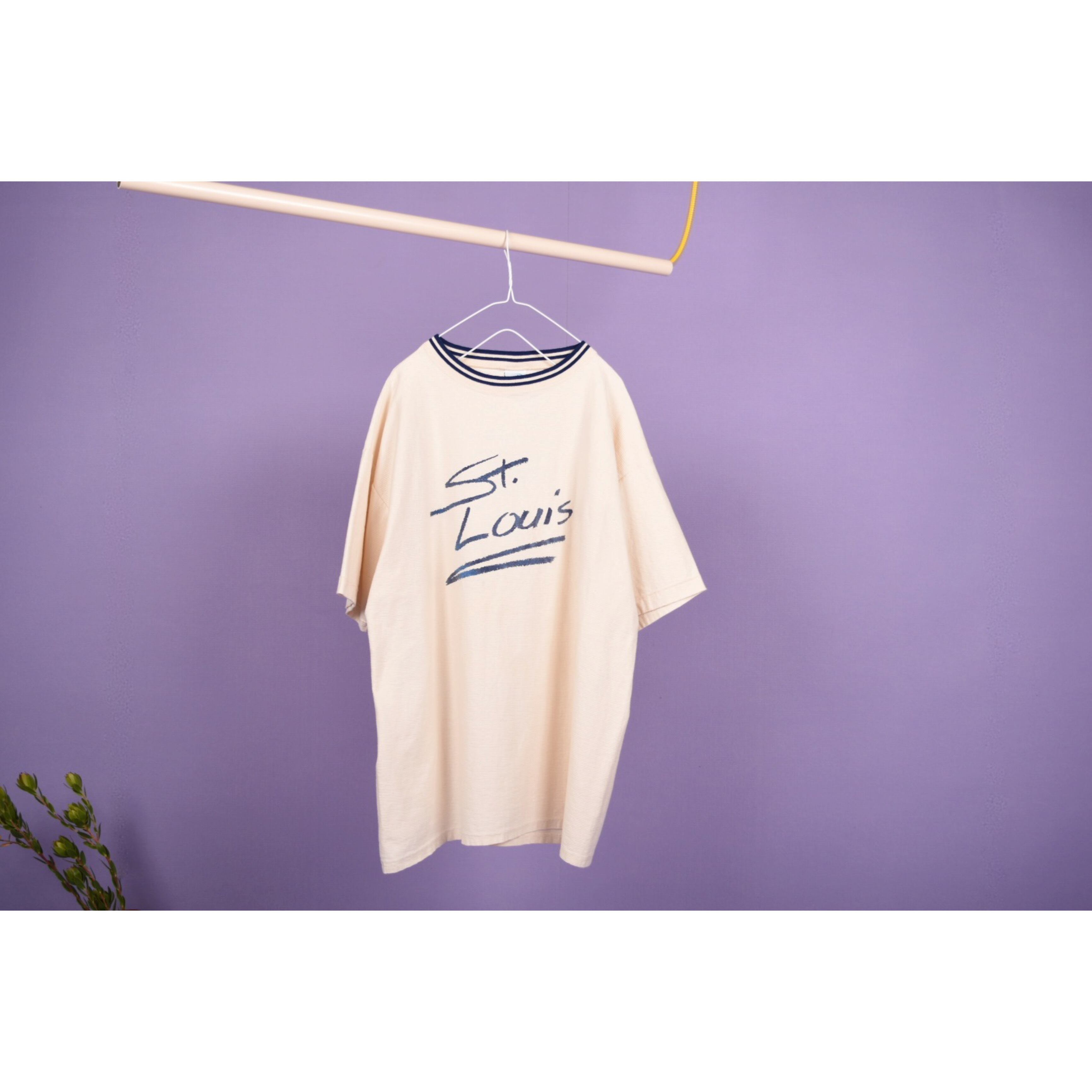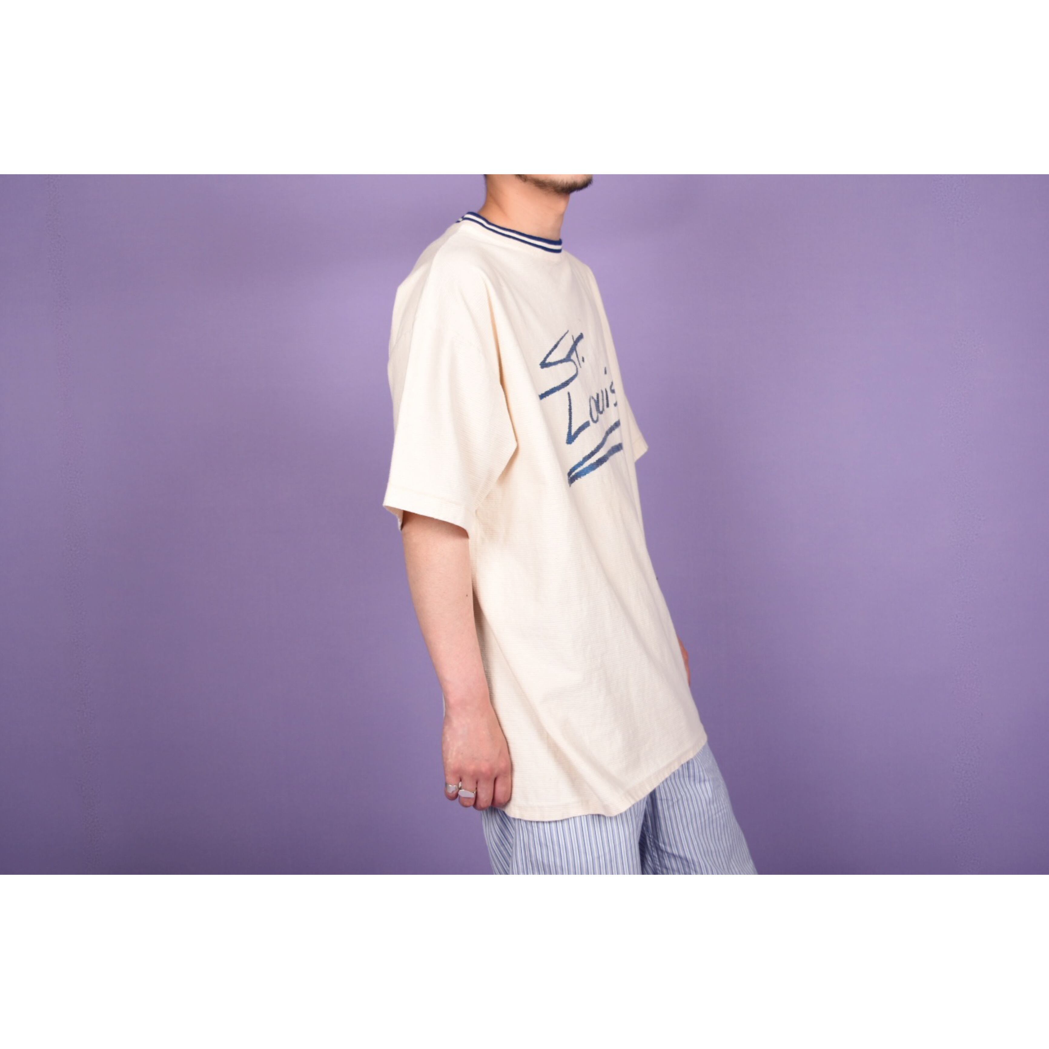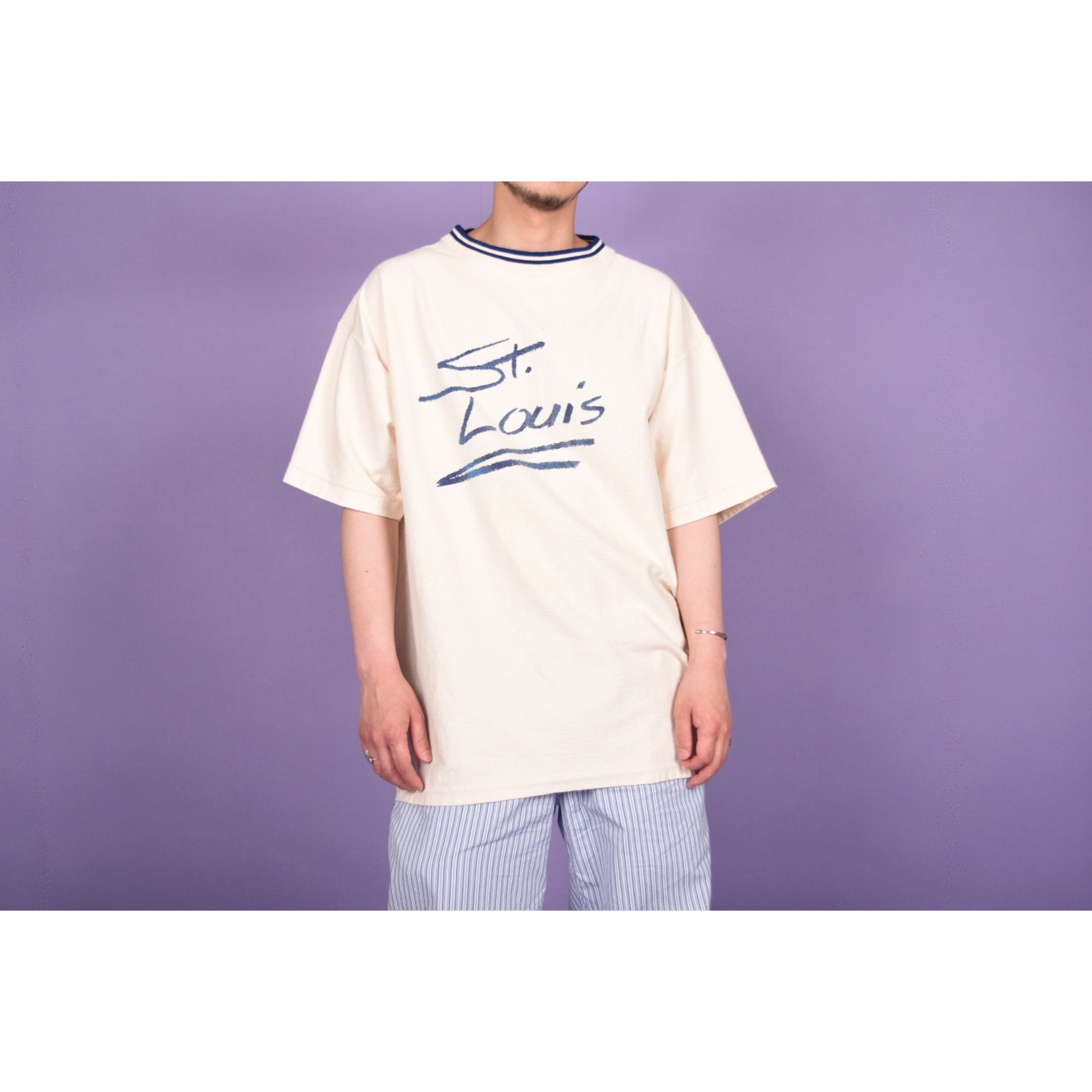 Saint LouisのロゴがプリントされたビッグTeeです。生地感がとても良く、大人っぽいデザインです。リブのアクセントが効いています。ユニセックスでおすすめです。