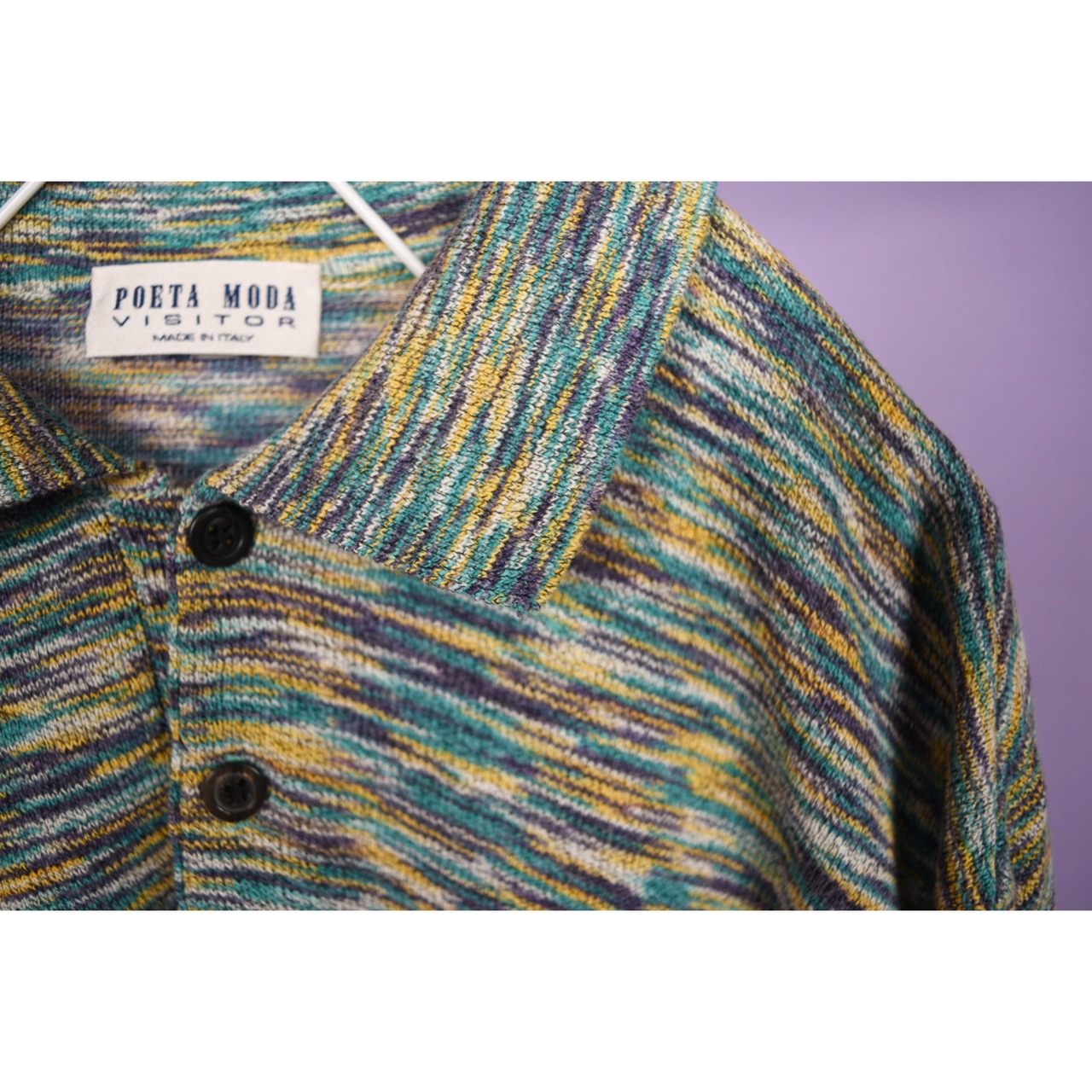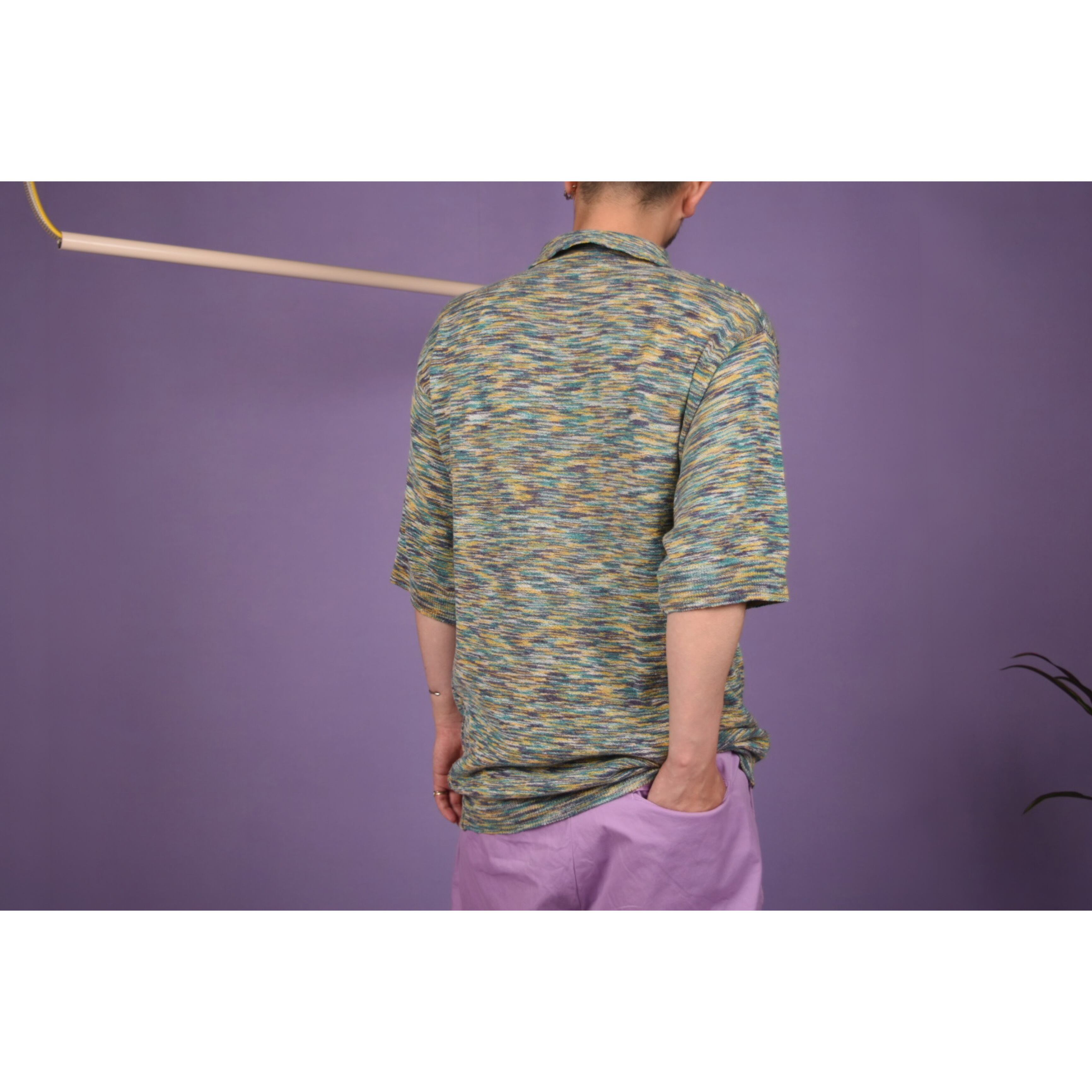 90年代イタリア製の半袖ニットポロシャツです。サラッとした質感で柔らかく真夏にも涼しく着られそう。ゆるっとしたシルエットも抜群です。ユニセックスです。これはスペシャル。めちゃ良いです。