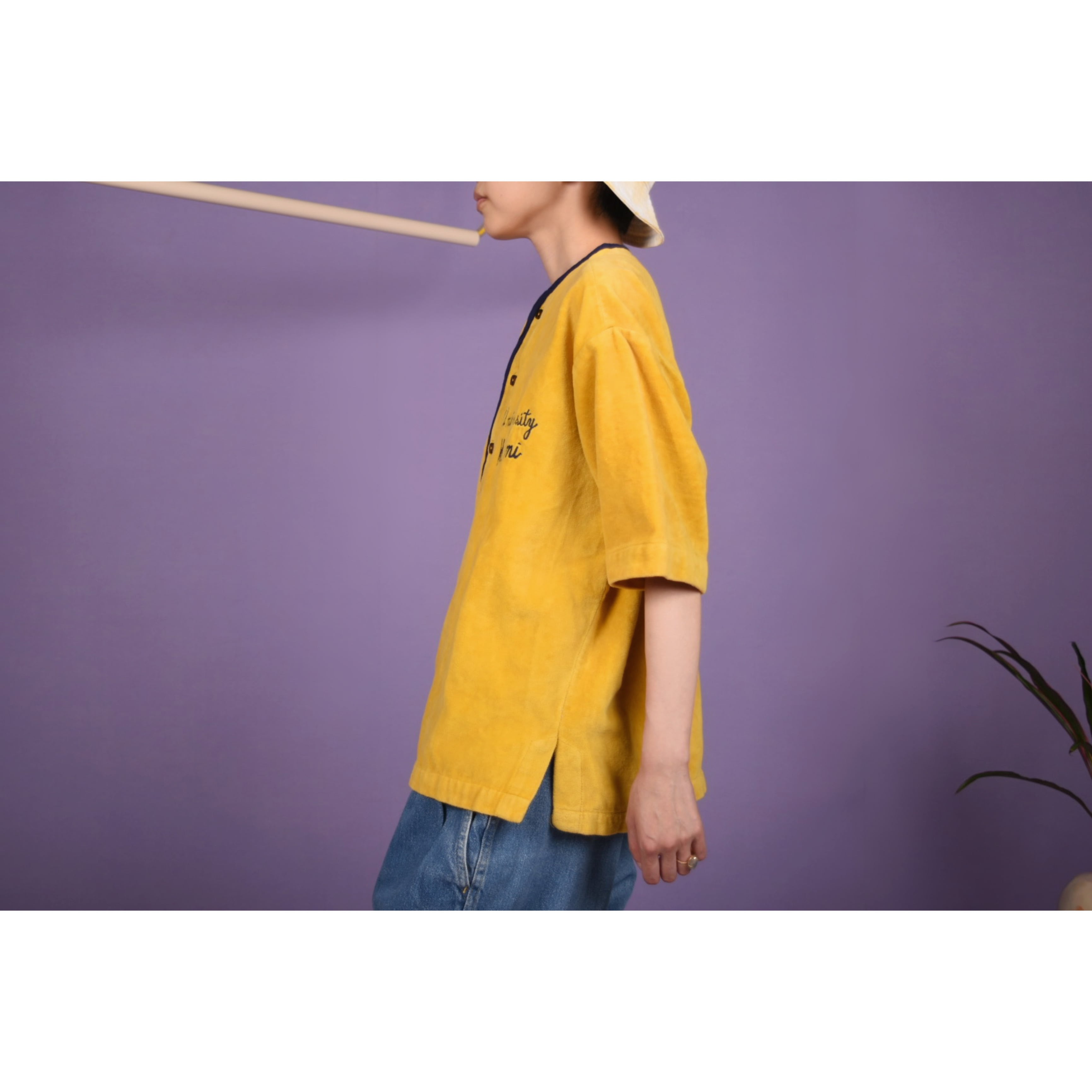60年代のヴィンテージベロアトップスです。カラー、生地感、シルエットバランス全て秀逸です。胸に入った刺繍も可愛いです。これは出会えない。