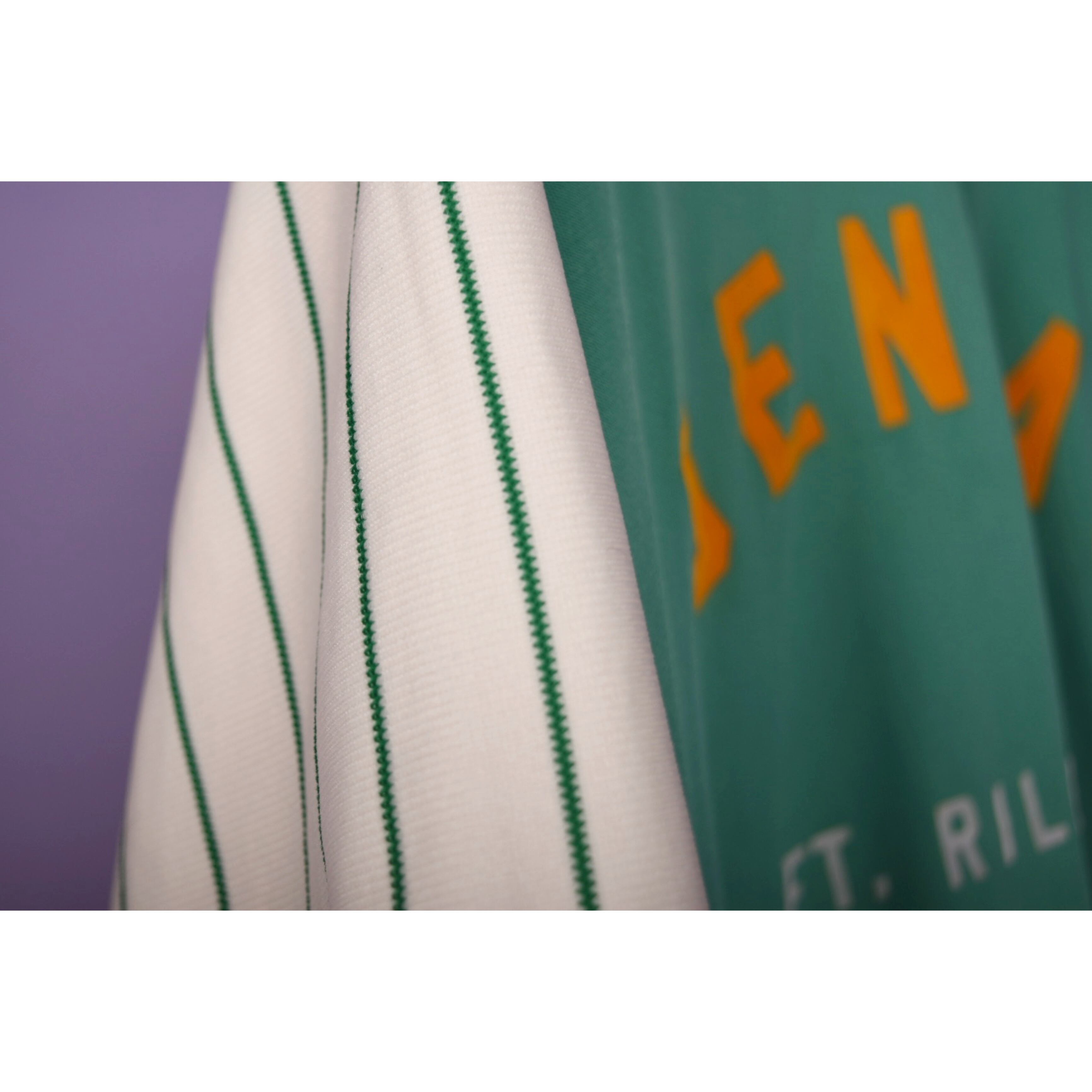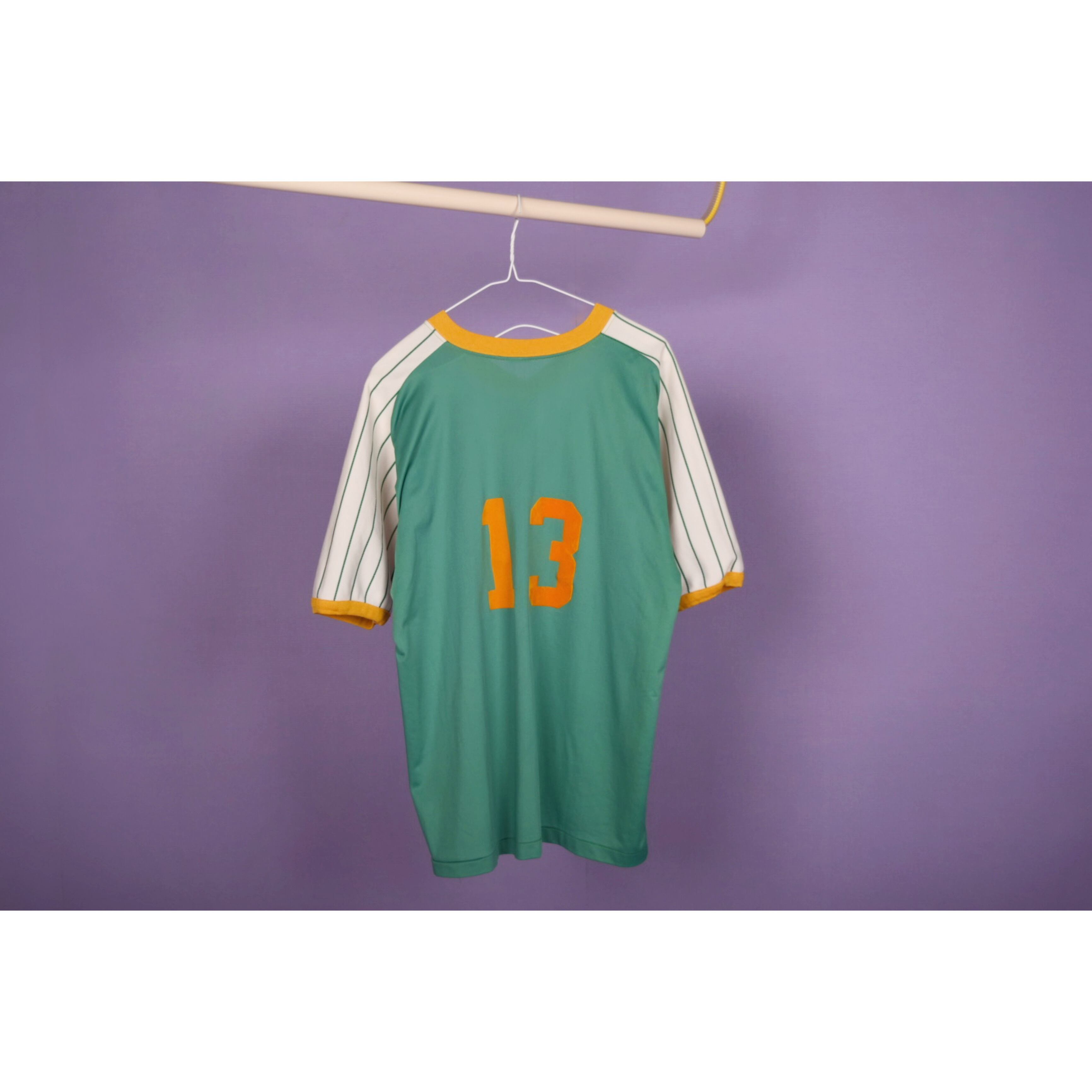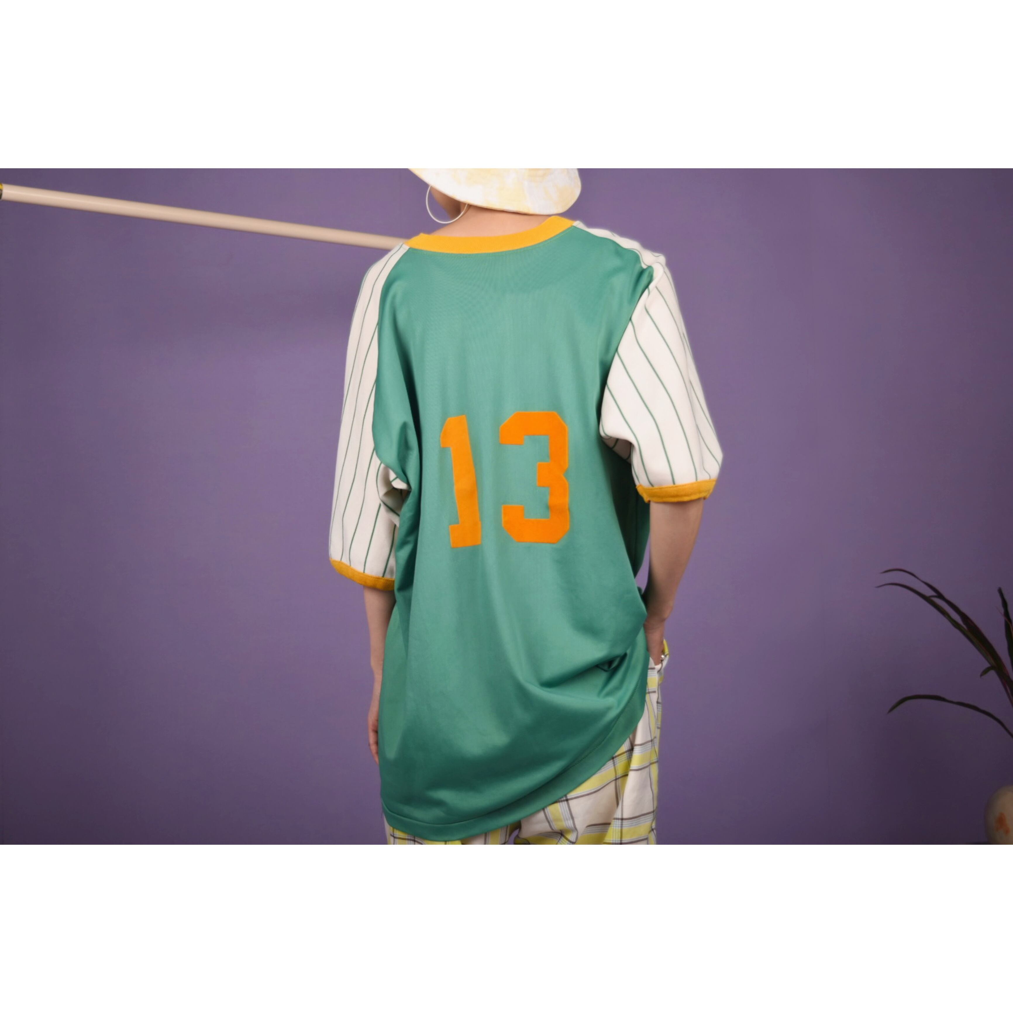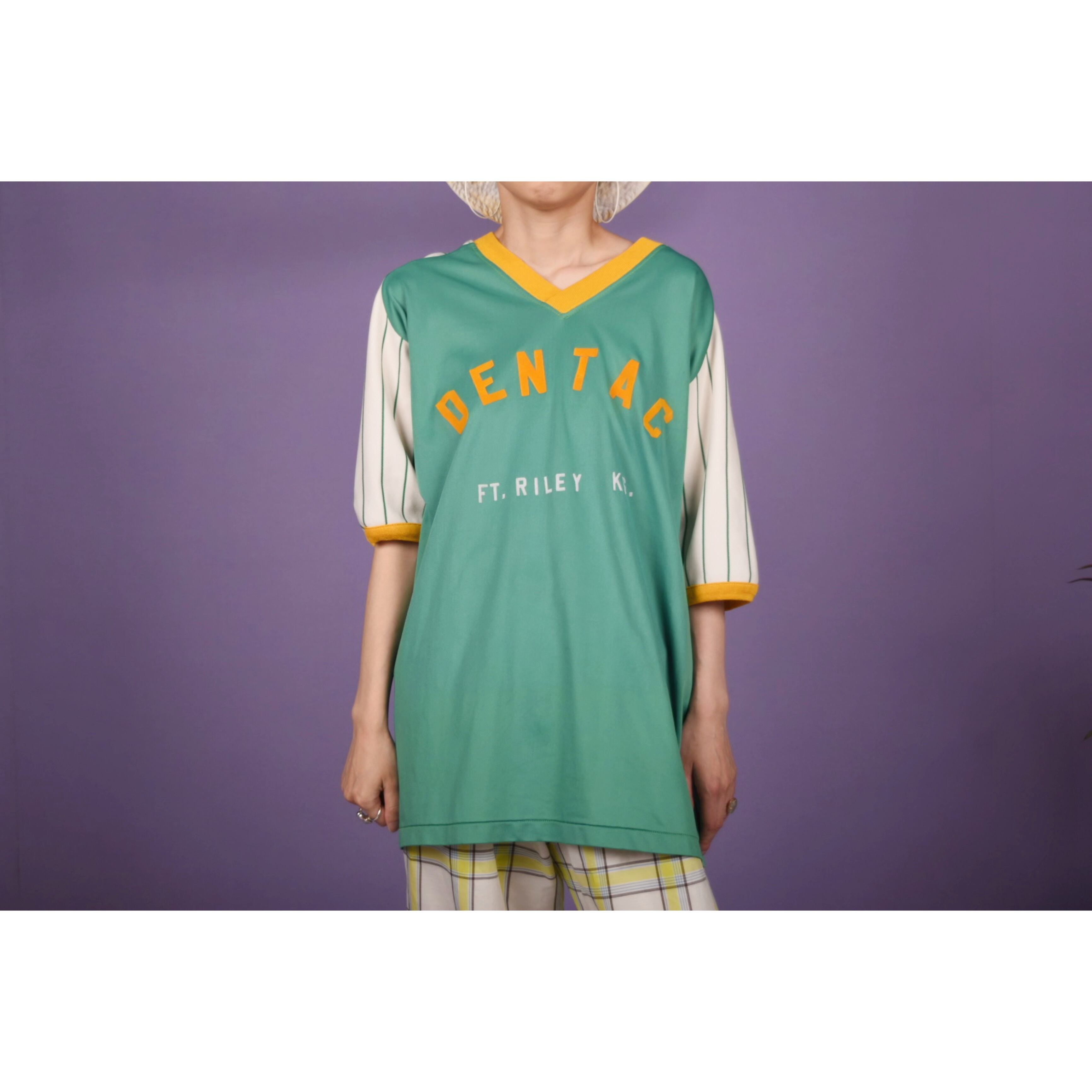 我々が大好物な配色でめちゃめちゃ可愛い5分袖TEEです。スポーティーな生地感でとても着やすいです。フロッキープリント、ラグランスリーブたまらんですね。これはおすすめです。