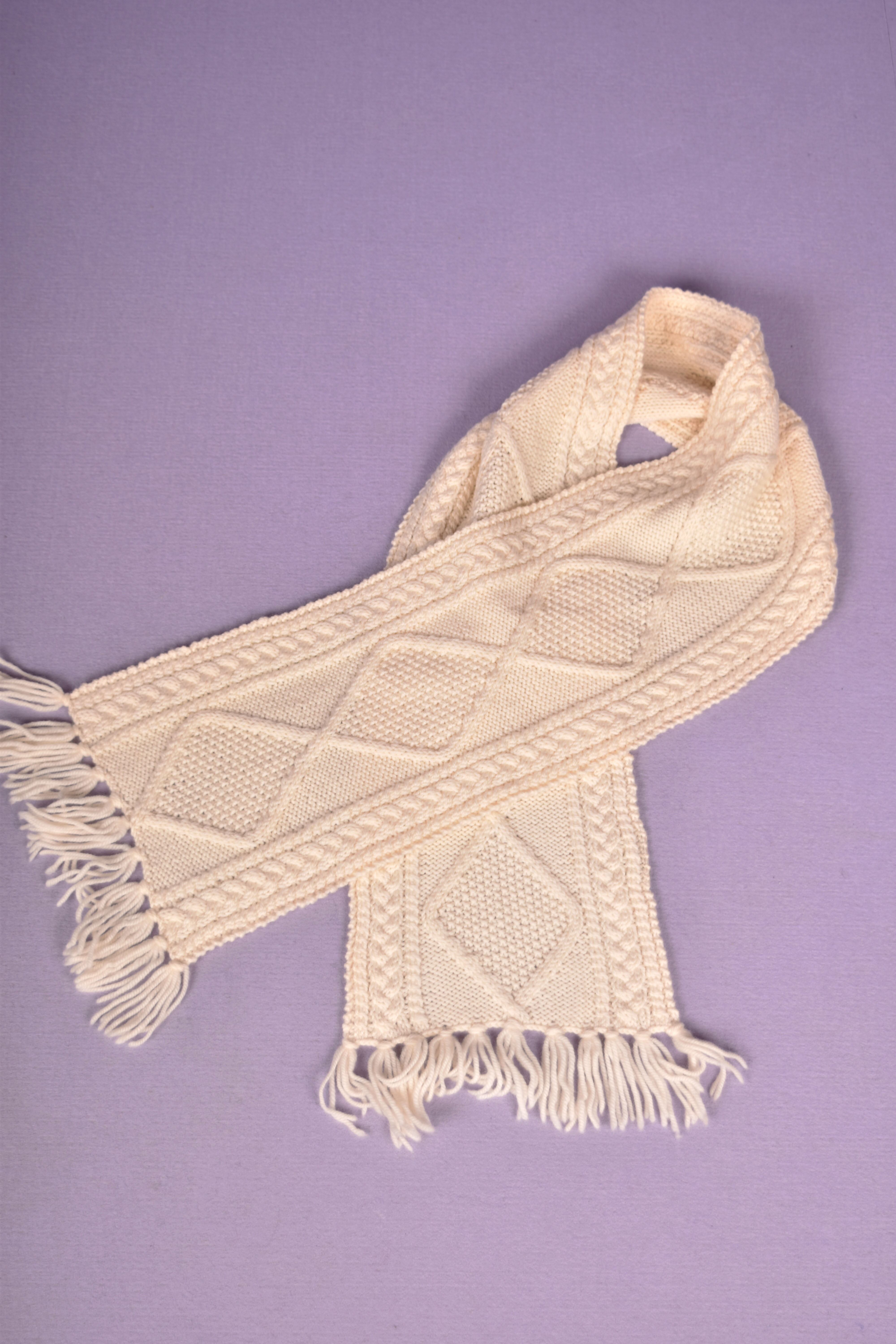 アイルランド製のハンドメイドケーブル編みマフラーです。メリノウール100%のためしっかりと暖かいです。ウール特有のチクチク感なく着け心地も最高です。ユニセックスです。