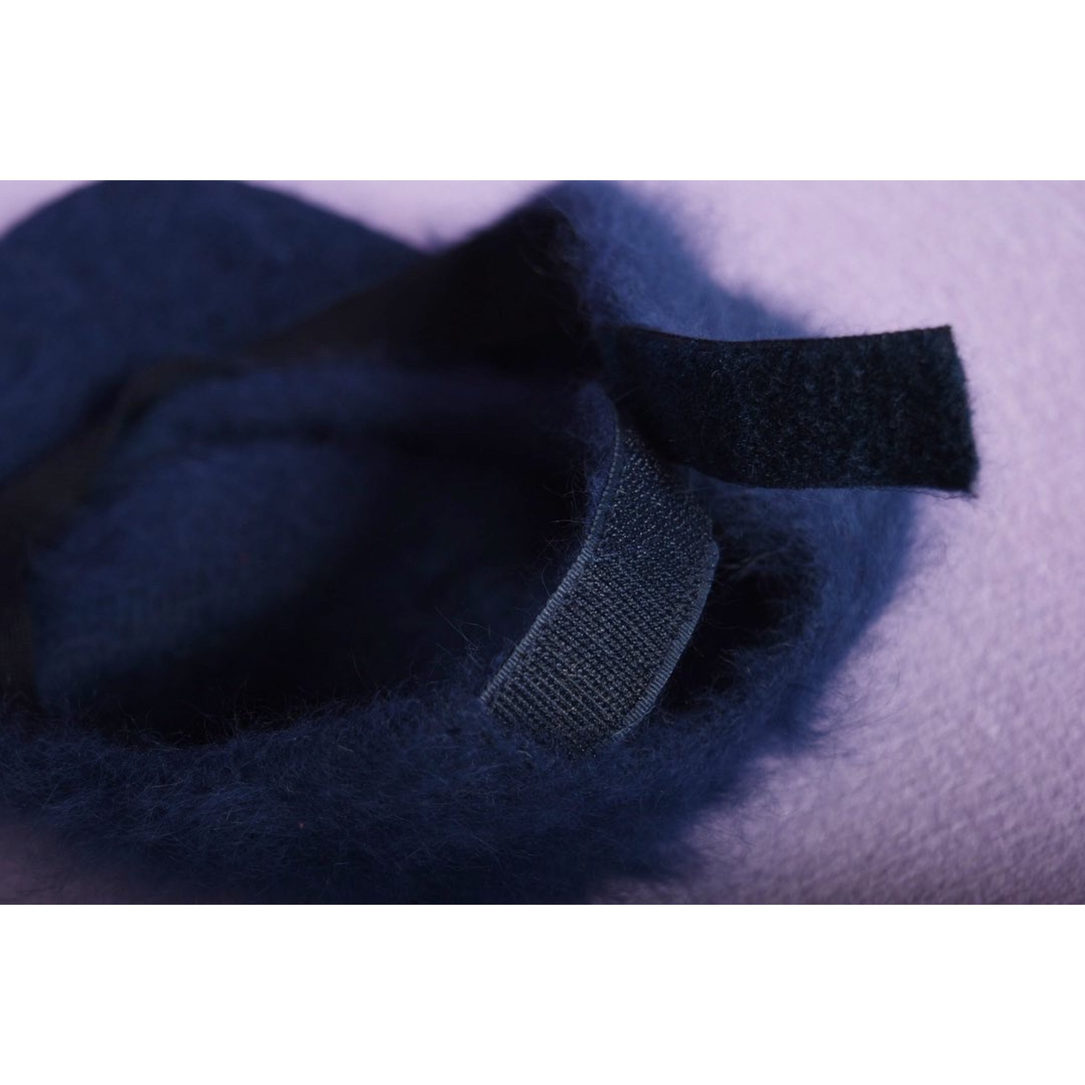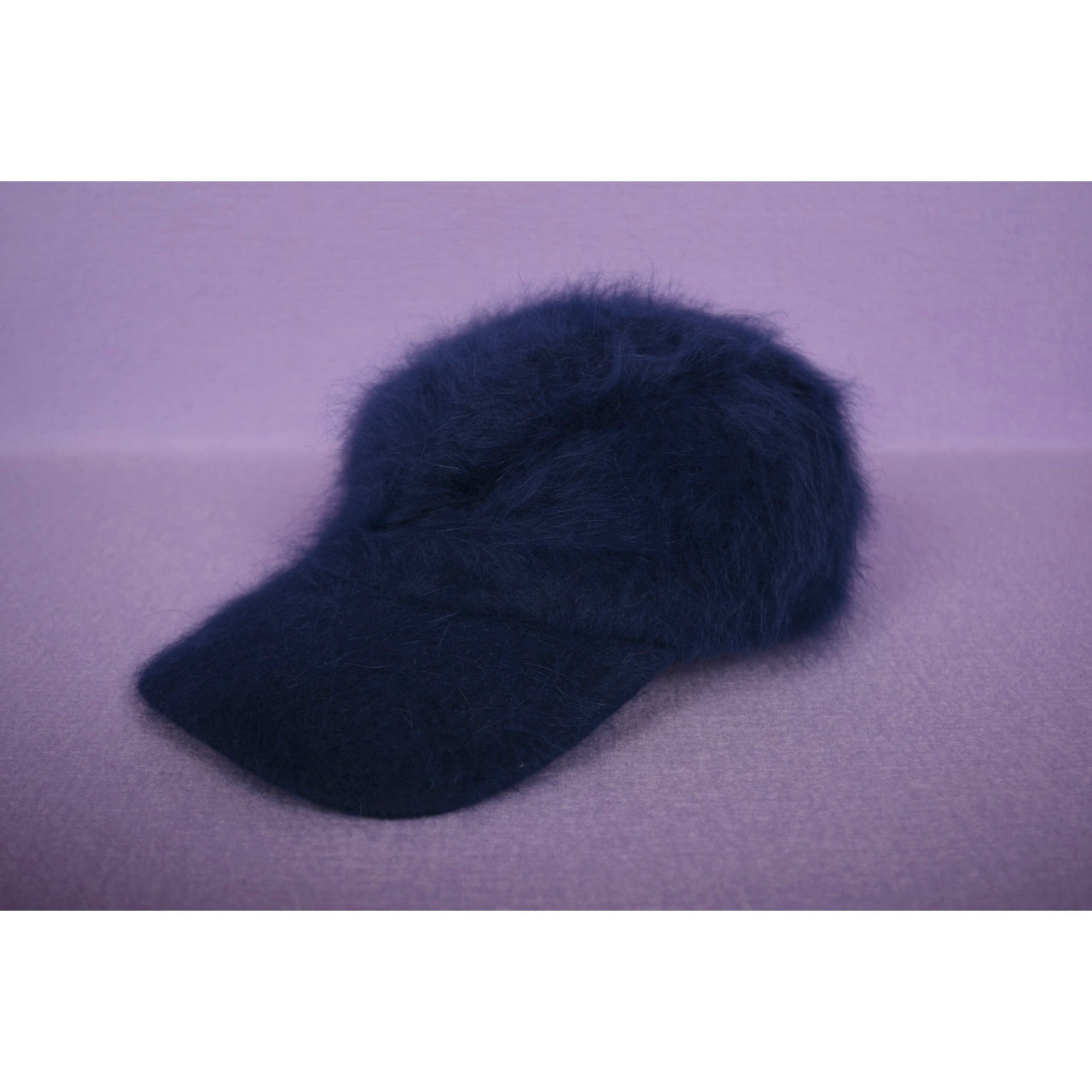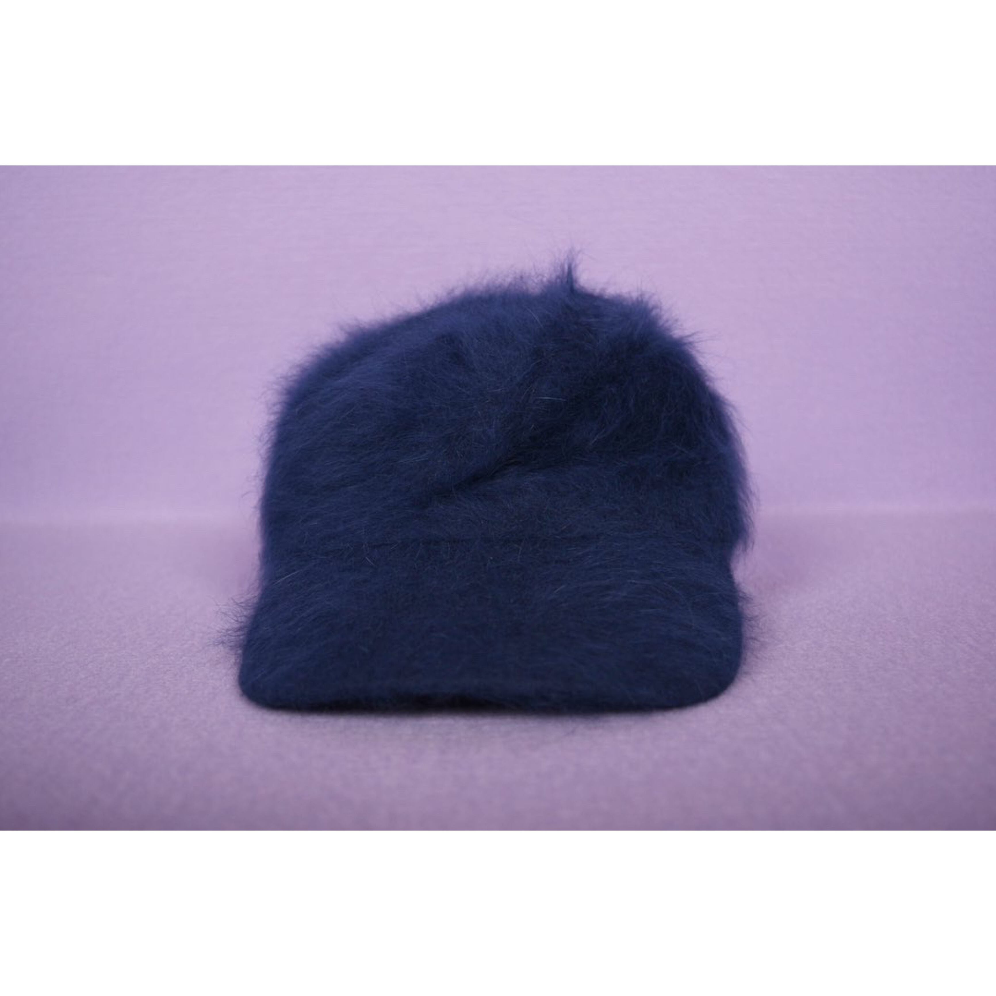 美しいネイビーのファーキャップです。ラビットファーだと思われます。つばがやや長めのシルエット、マジックテープでサイズの調整が可能です。なかなか出会えないアイテムです。