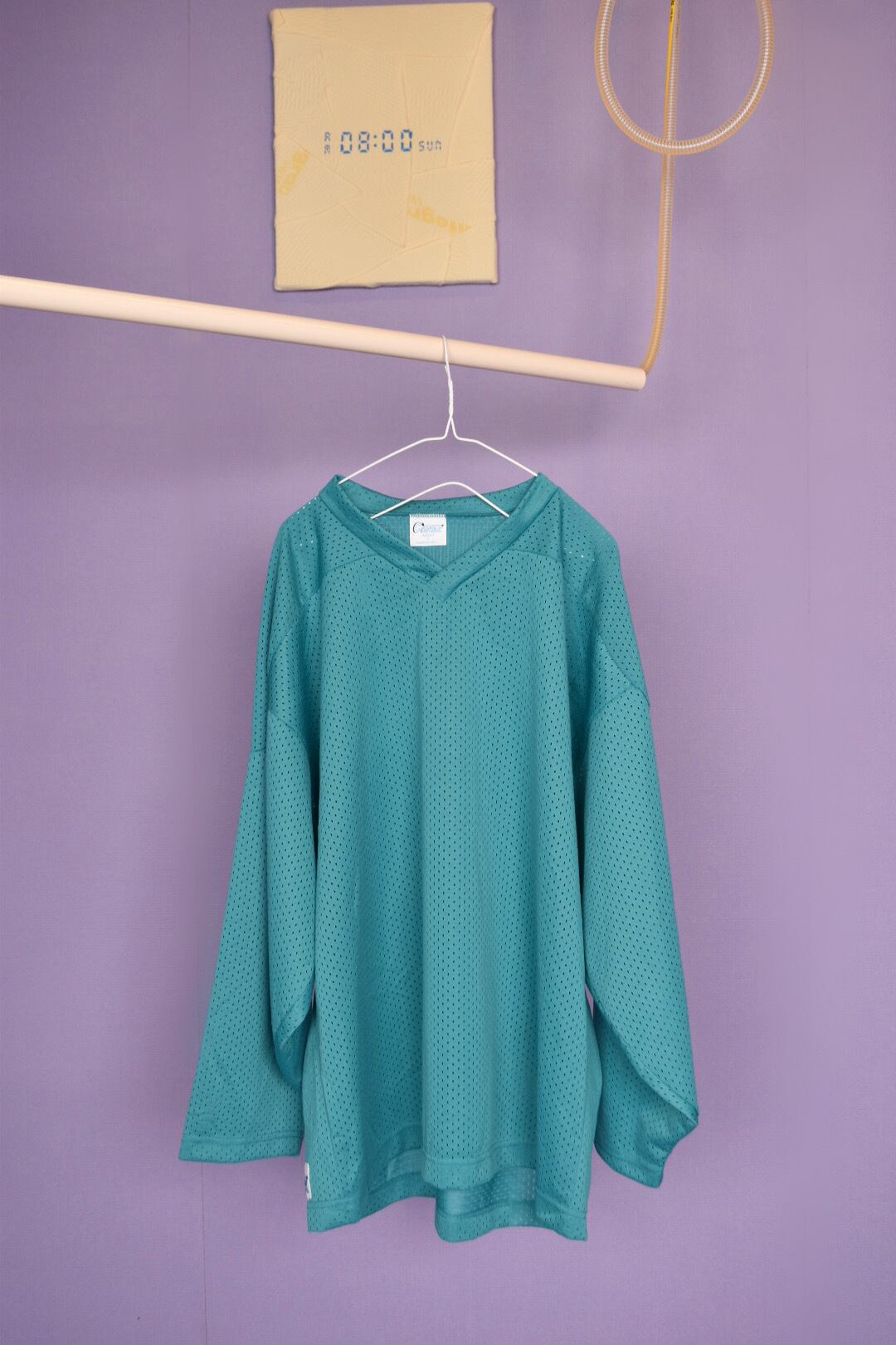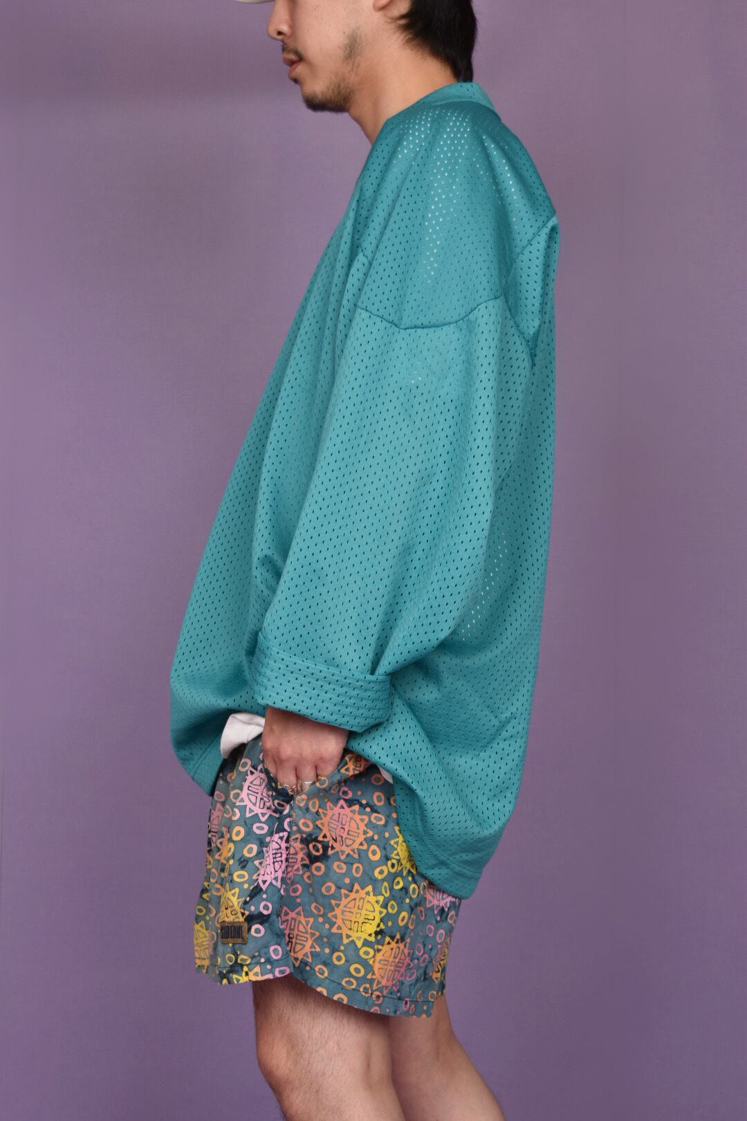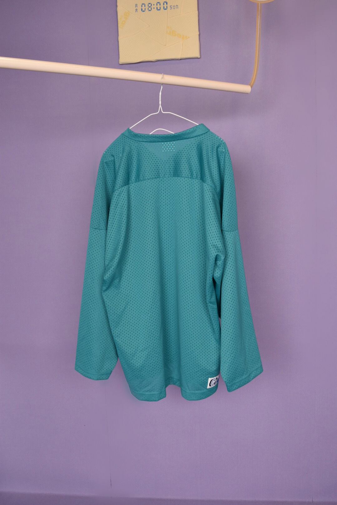 90年代のメッシュ生地を使用したフットボールteeです。肩から袖にかけてのパターンメイキングがユニークです。