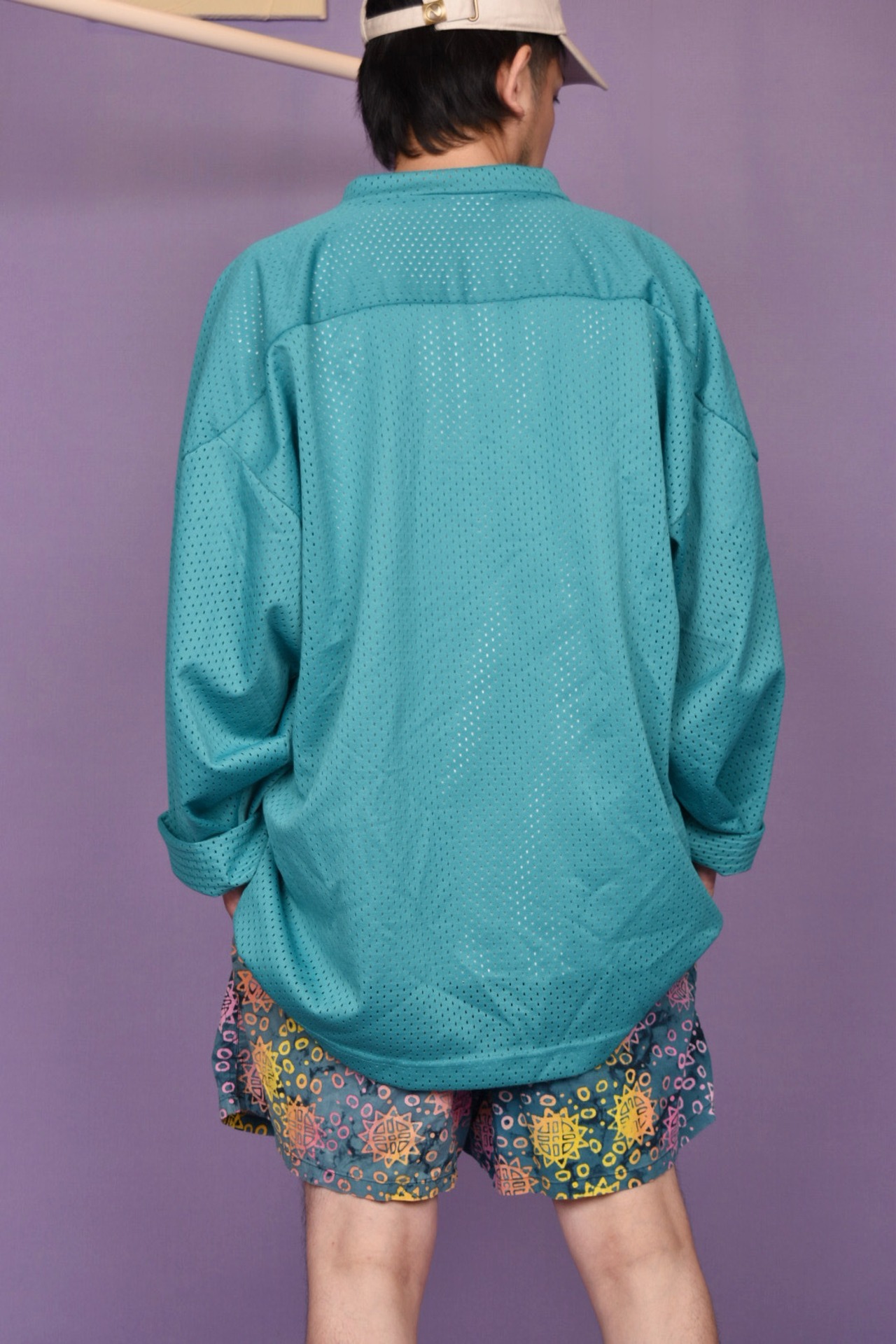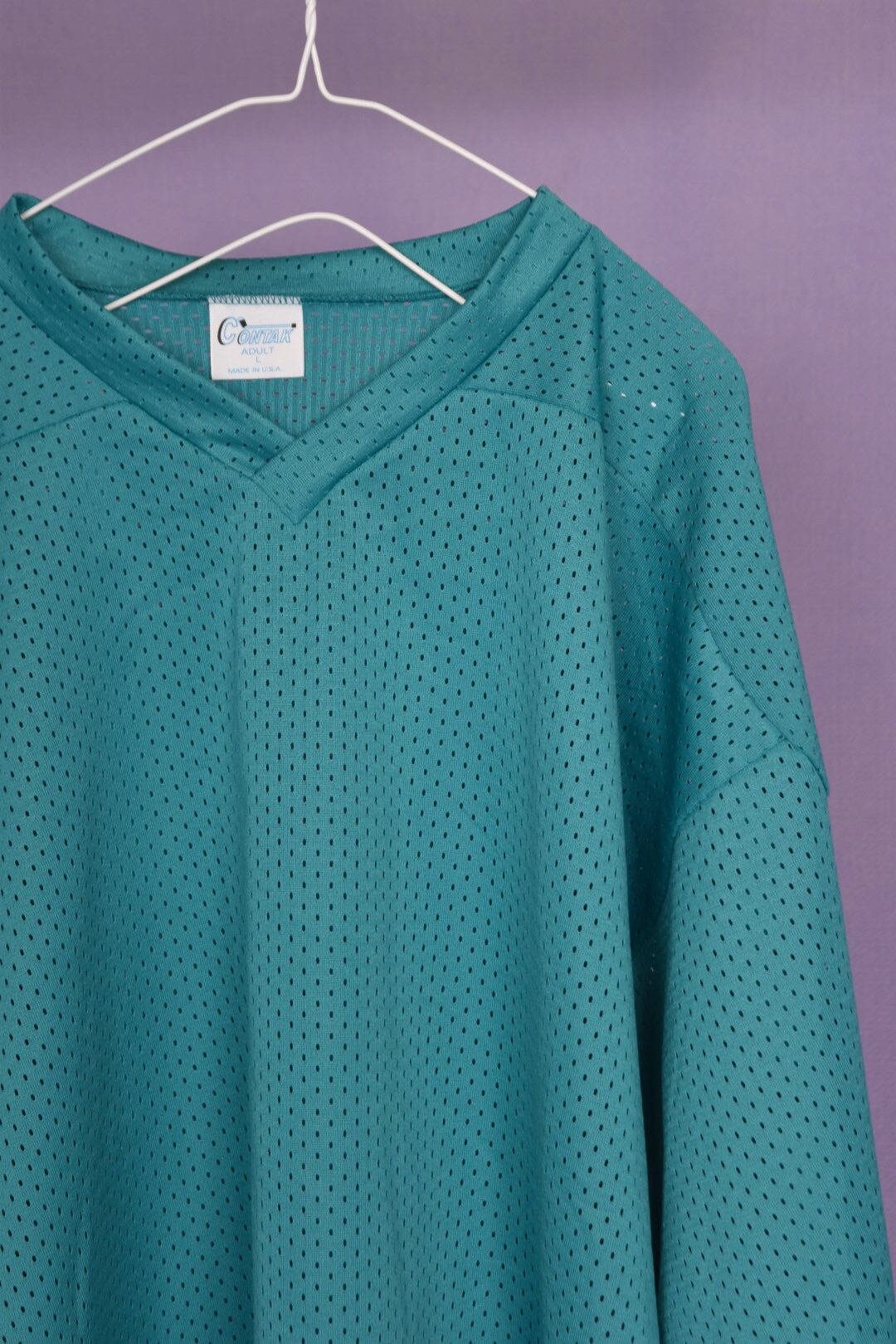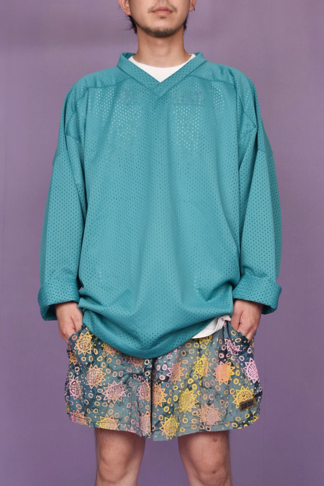 90年代のメッシュ生地を使用したフットボールteeです。肩から袖にかけてのパターンメイキングがユニークです。