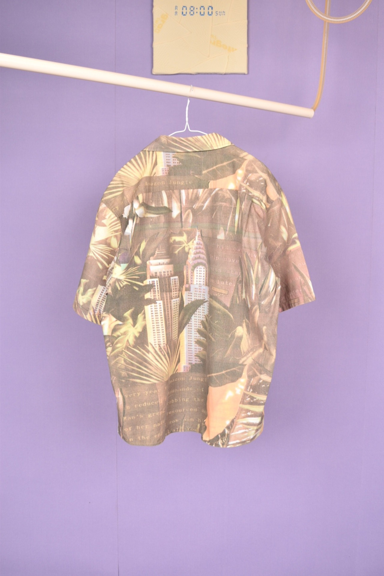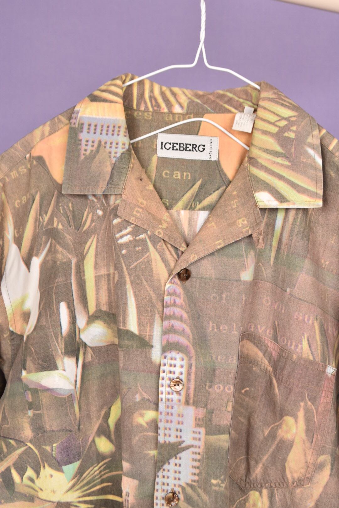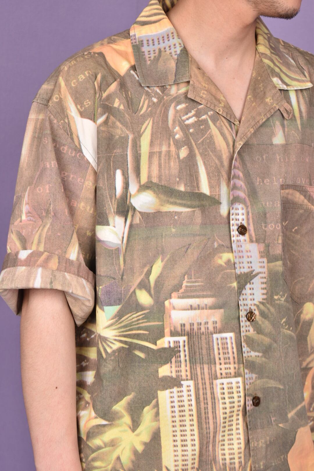 リゾート地風景のような総柄がお洒落なイタリア製のシャツ。少しハリ感のあるサラッとした生地でデザインも相まって涼しげです。