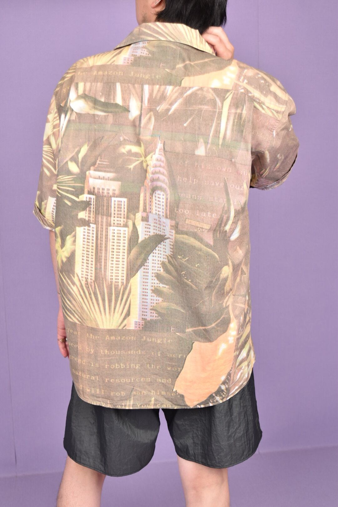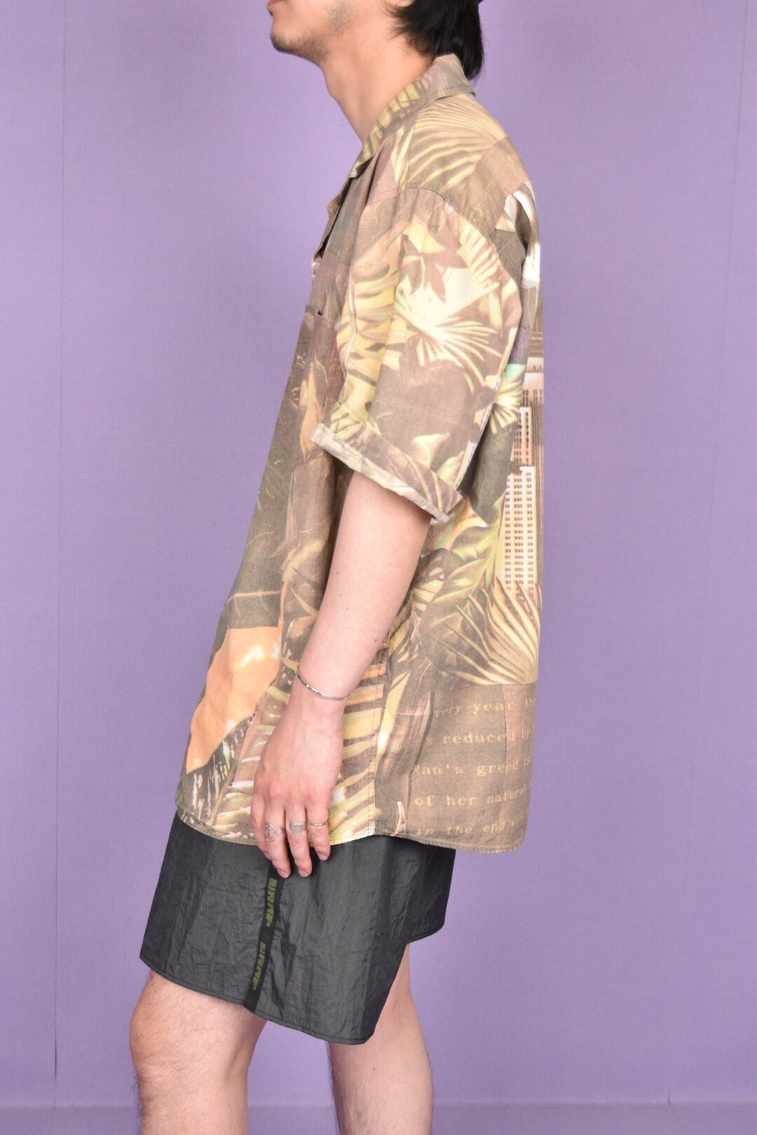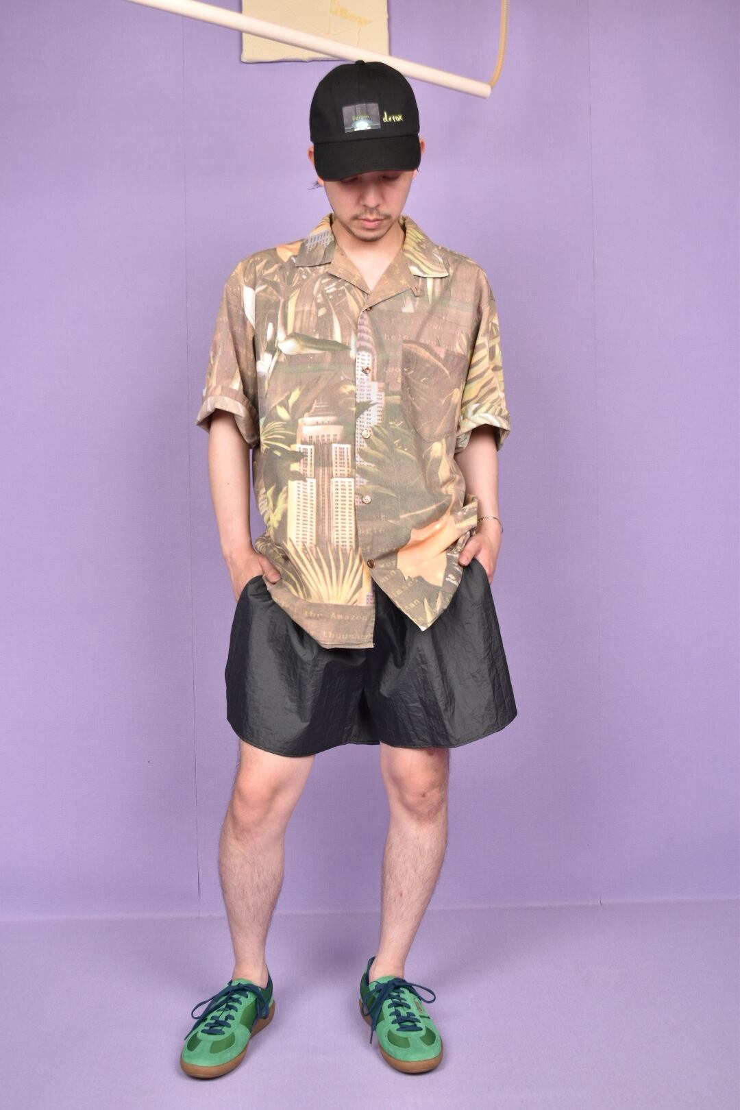リゾート地風景のような総柄がお洒落なイタリア製のシャツ。少しハリ感のあるサラッとした生地でデザインも相まって涼しげです。