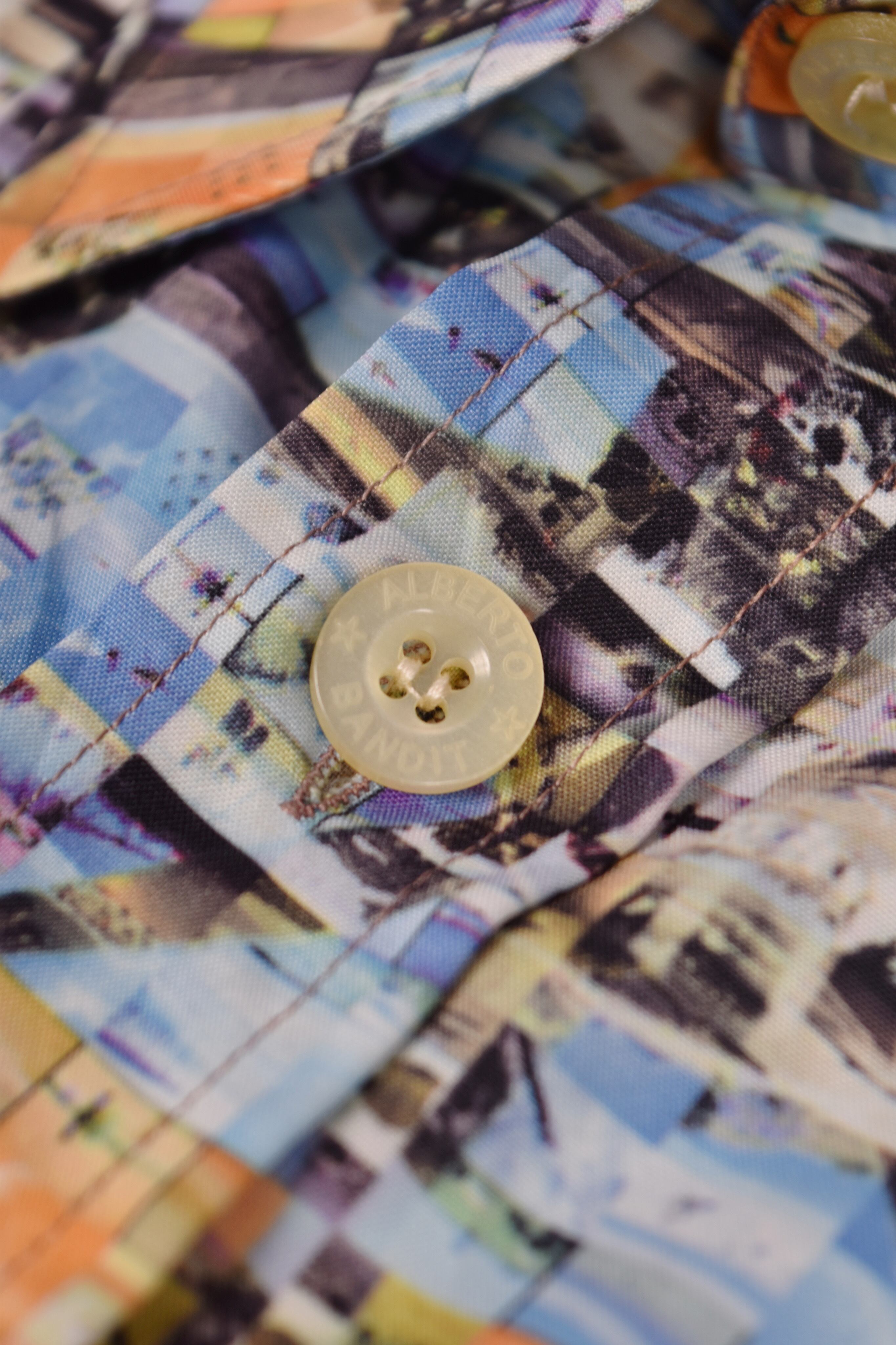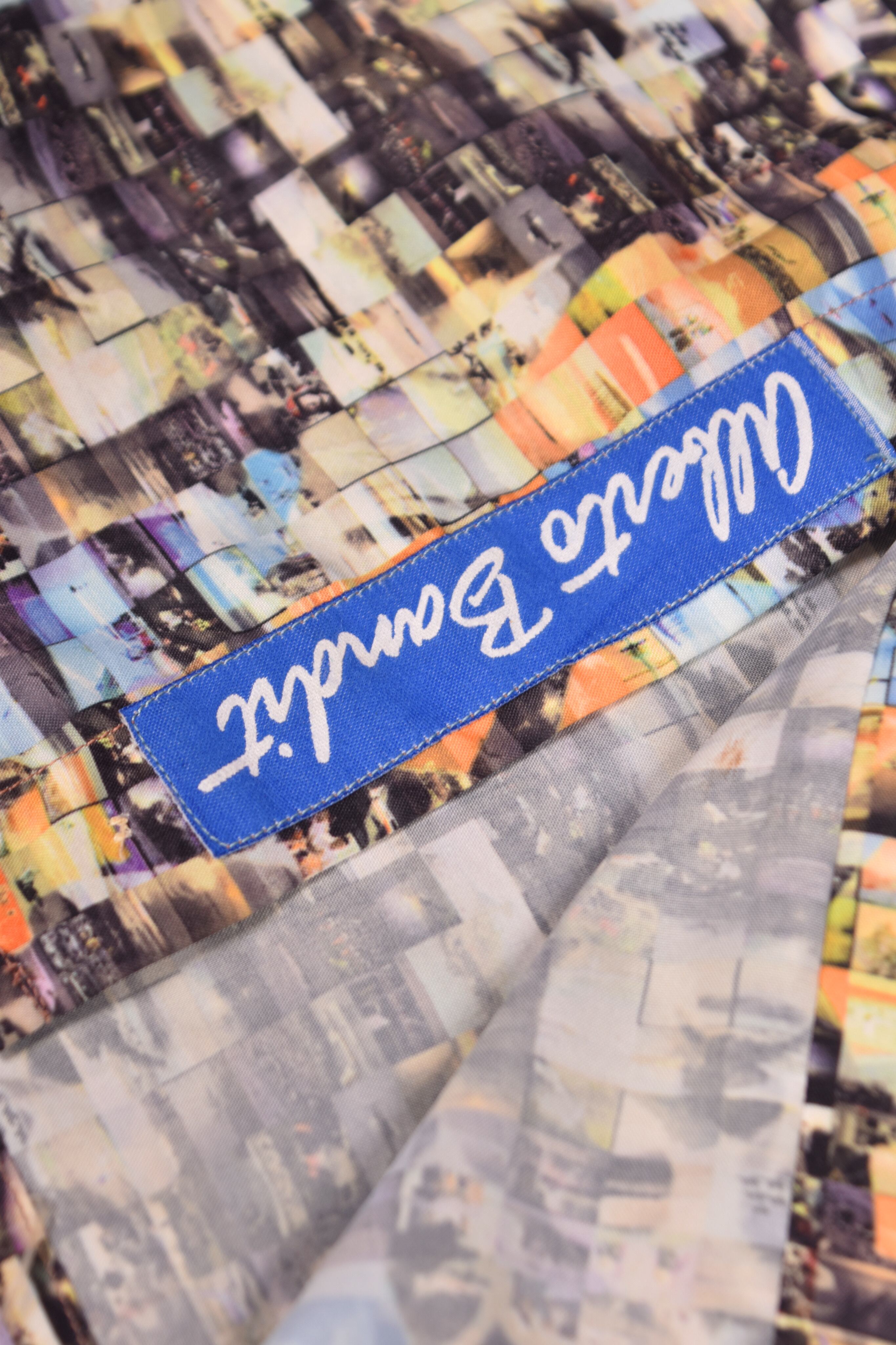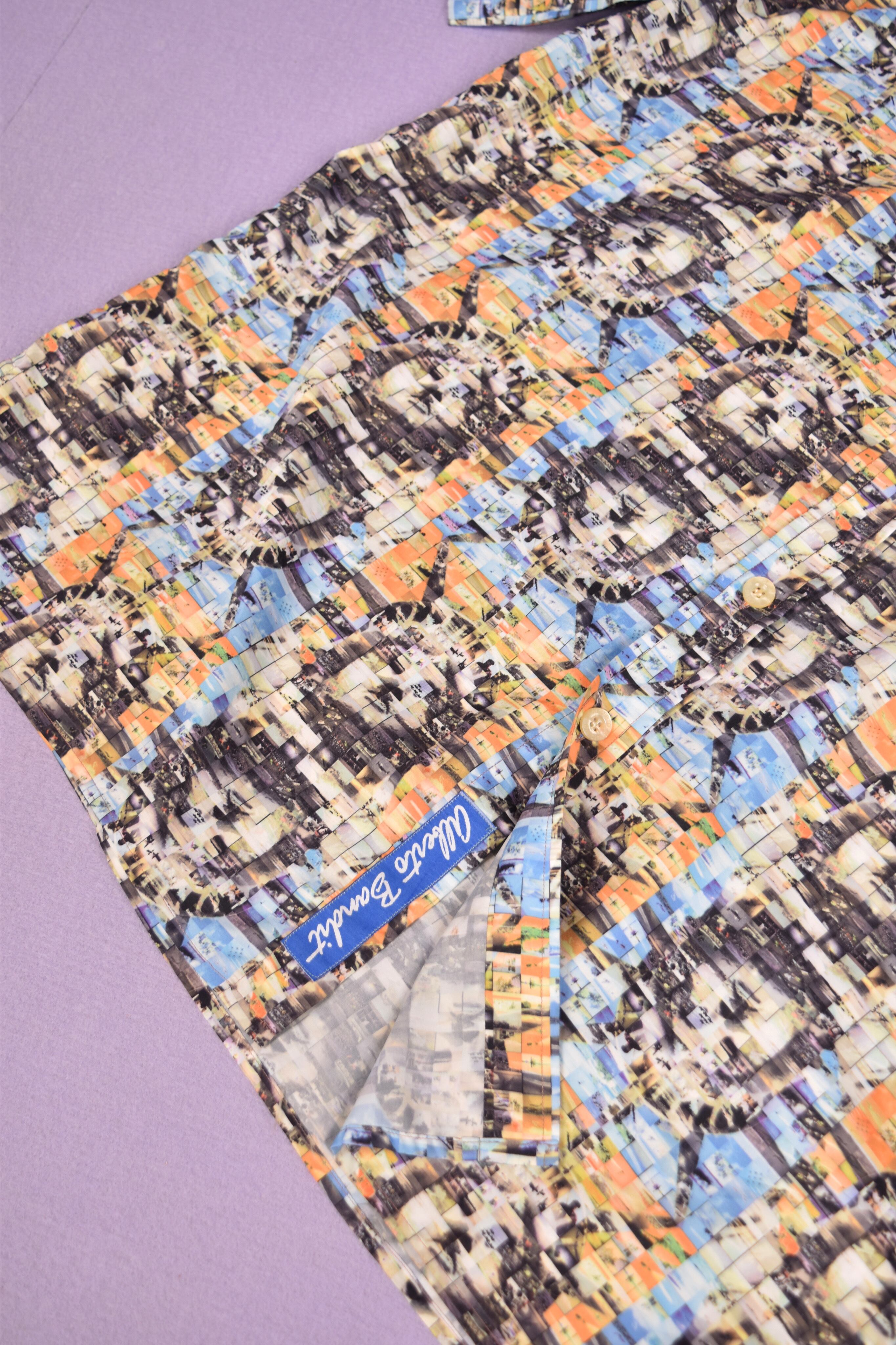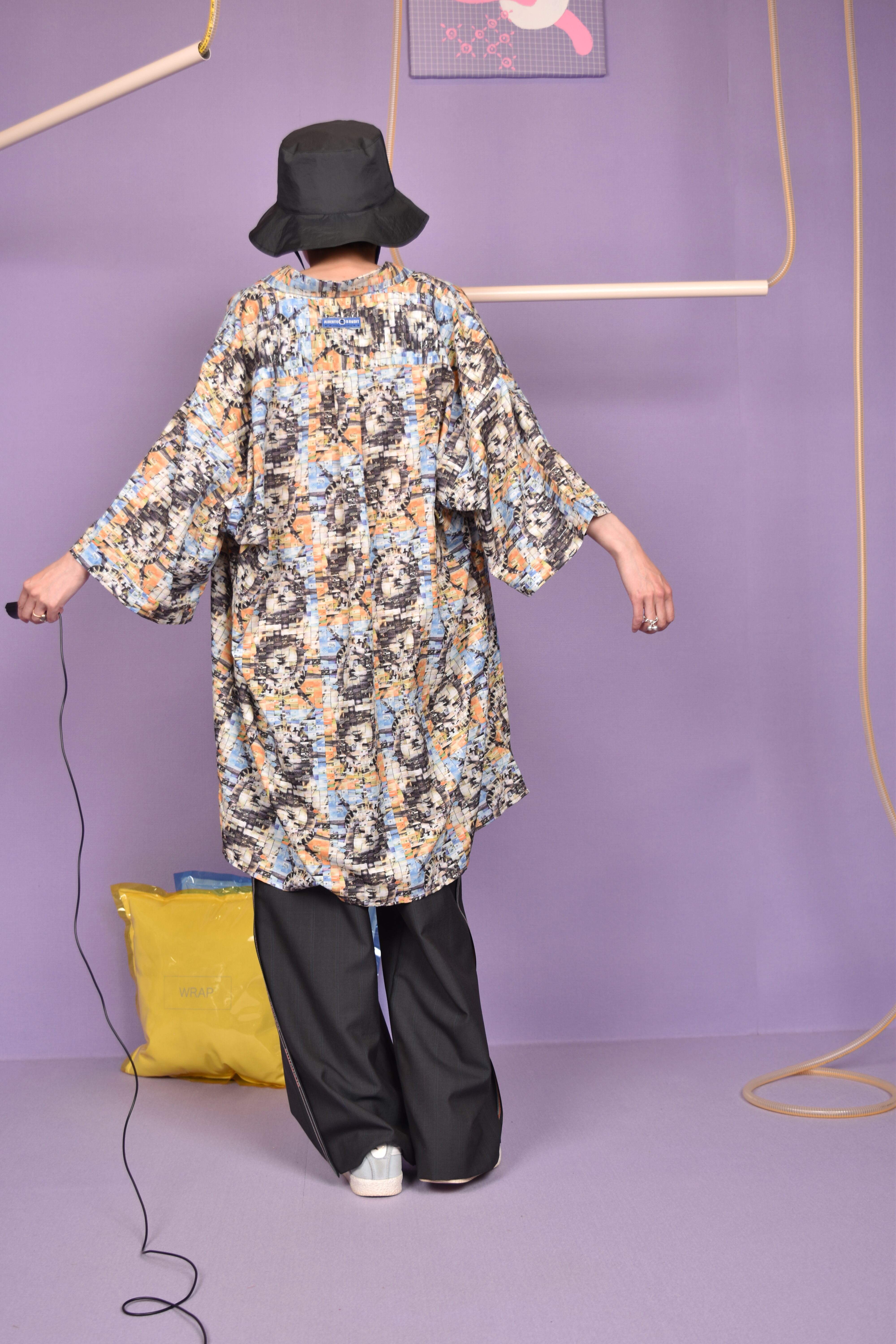 プリントのデザインは、紛争地の写真で自由の女神を表現したモザイクアートです。かなり大きめのサイズのシャツなので羽織りとしても活躍しそうです。ポリエステル100%のシャツはシワになりにくいのもポイントです。