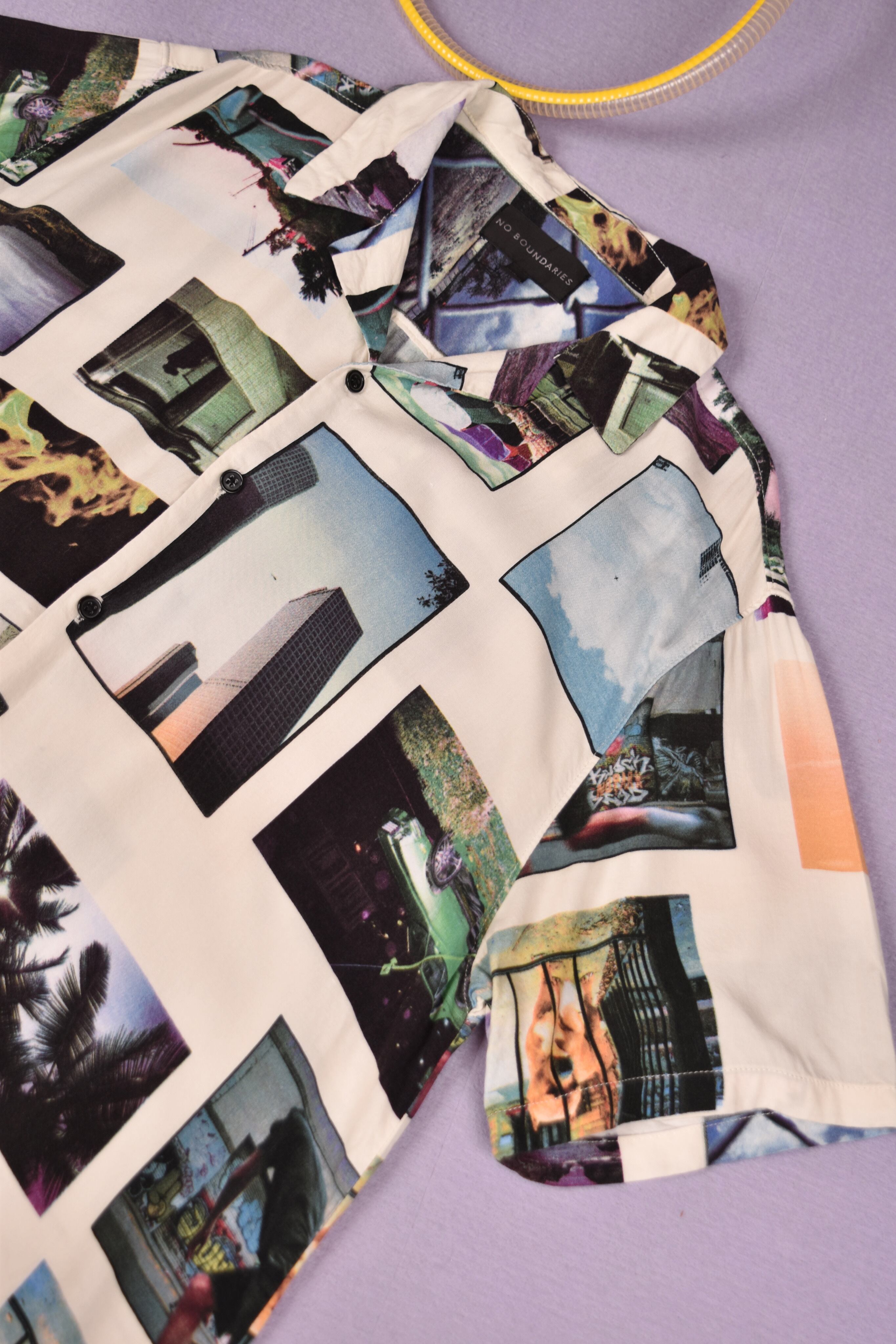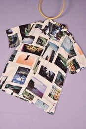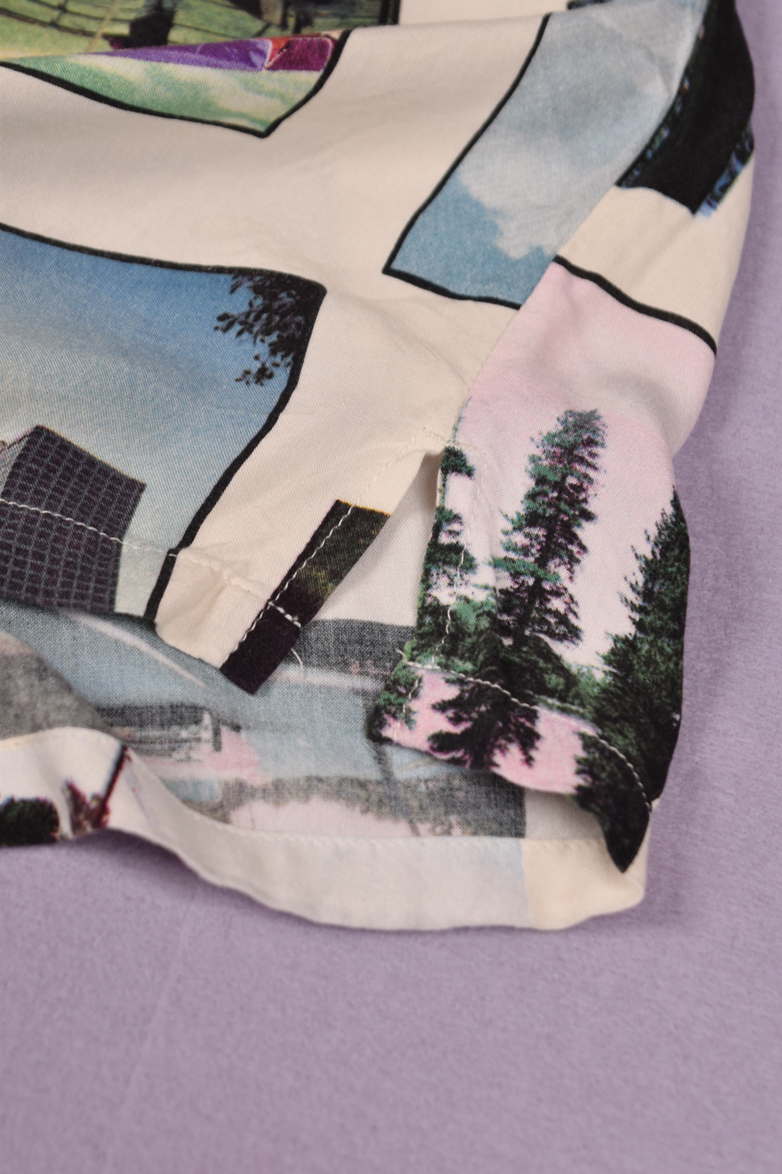 全体に写真プリントがされた開襟シャツです。レーヨン100%なので非常に肌触りが良くテロテロ柔らかな生地感です。ユニセックスでおすすめです!