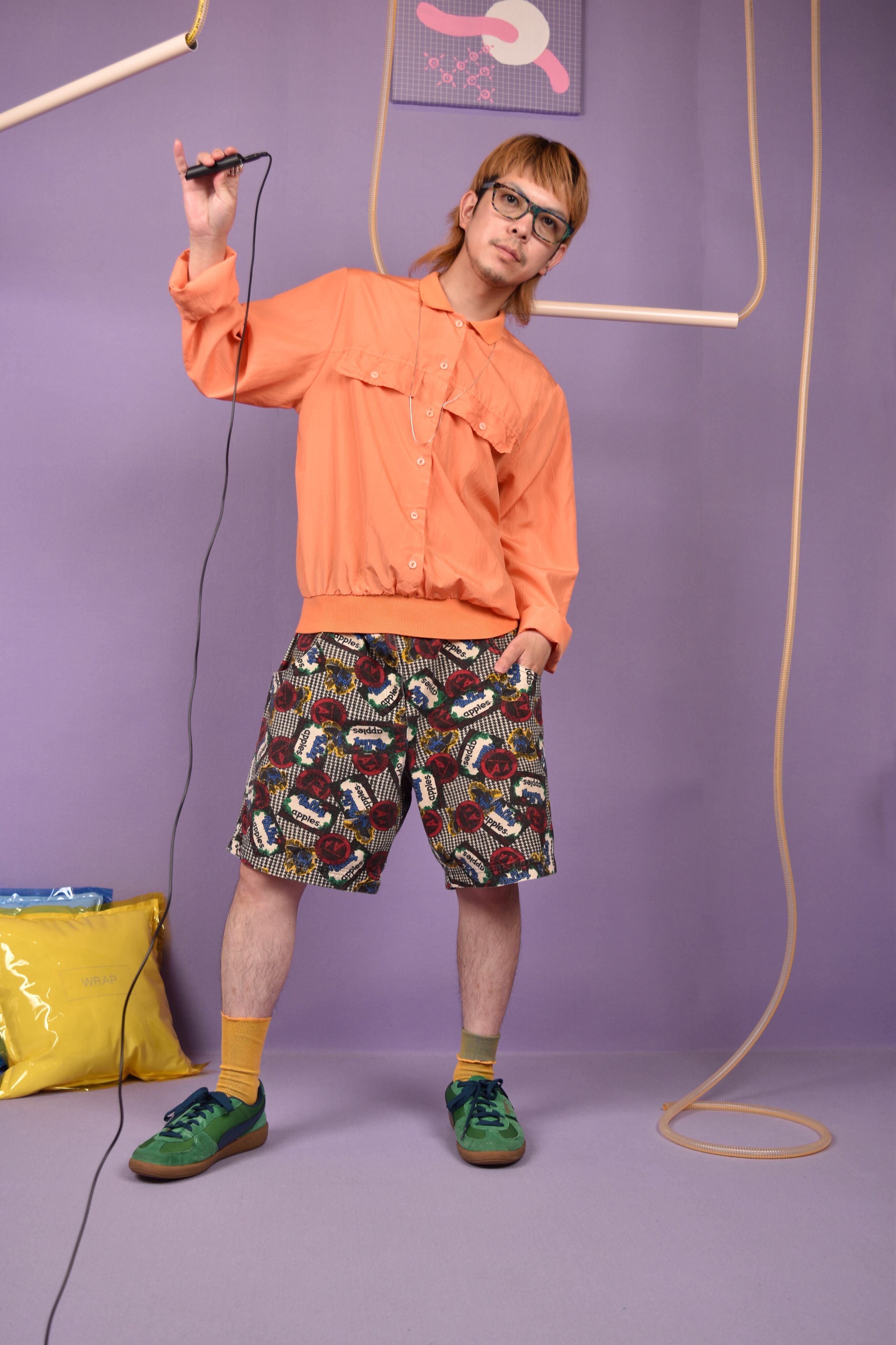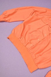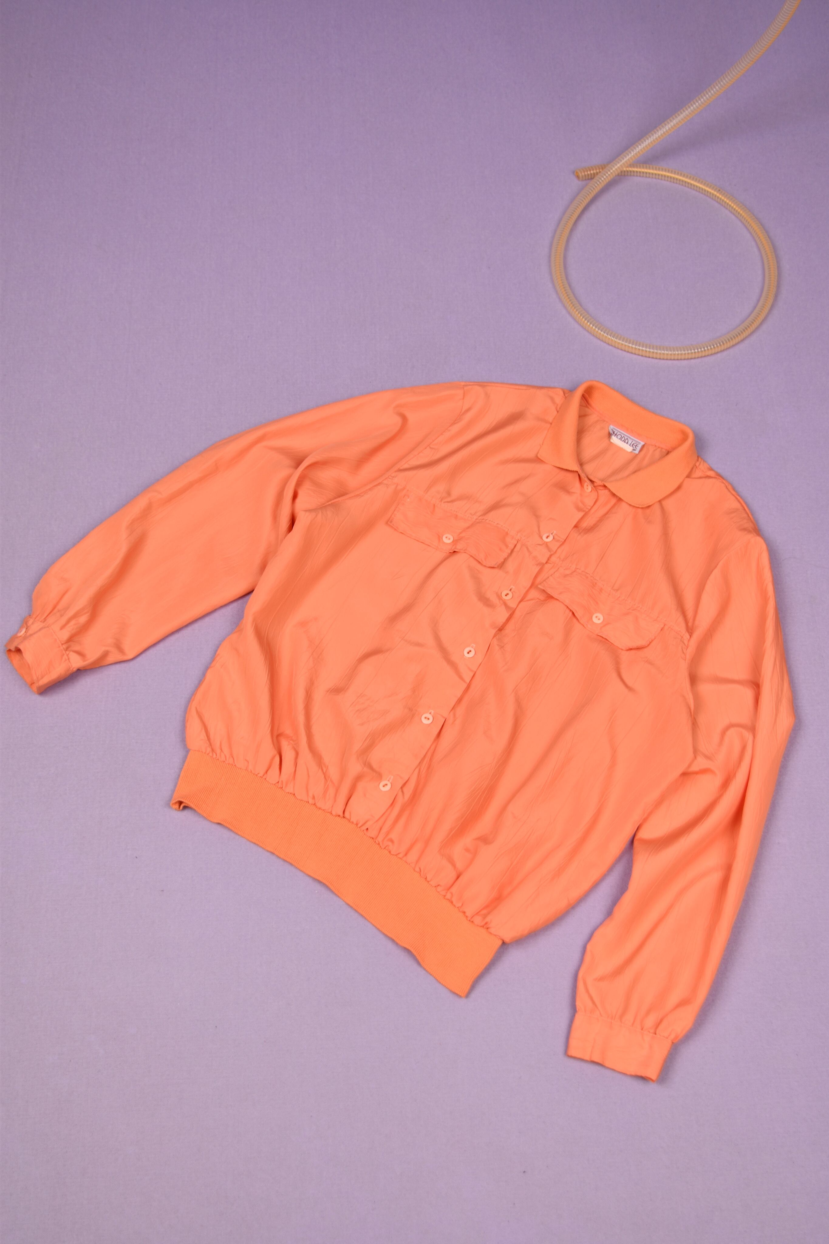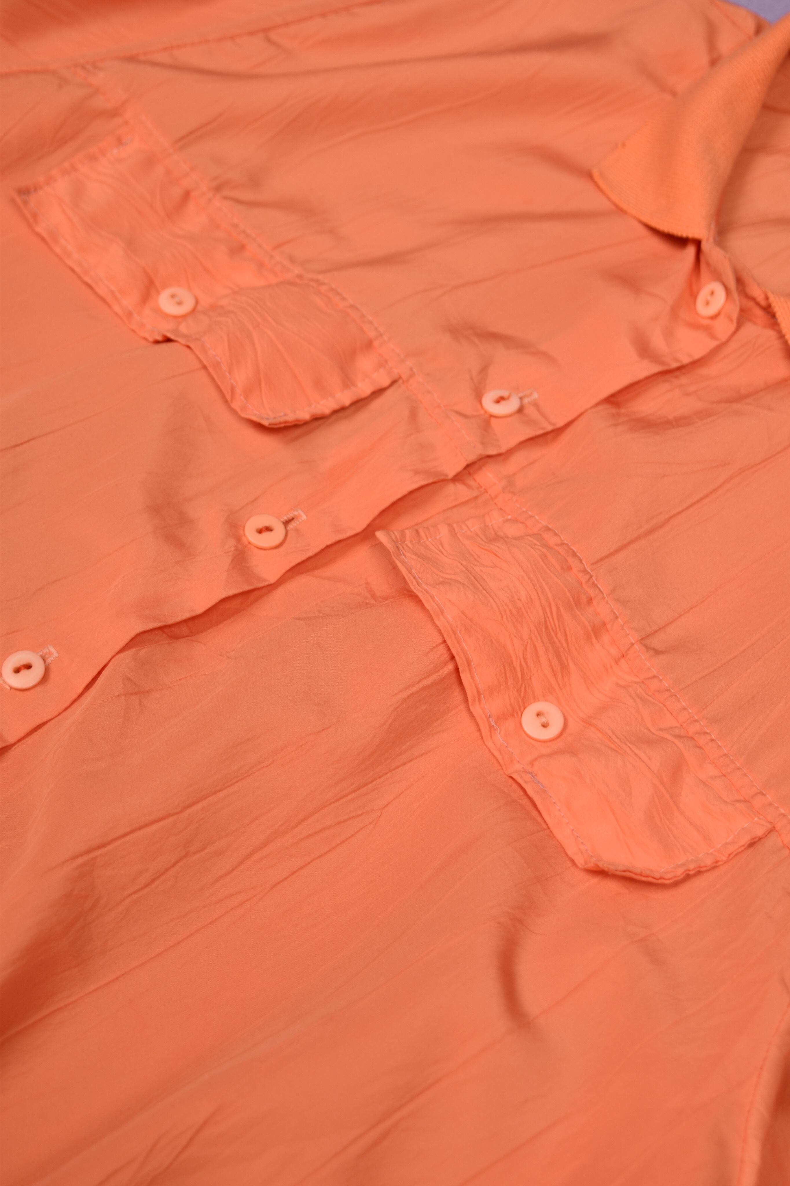 光沢感がある薄手のシャツ地を使用したプルオーバーです。かなり良い感じのオレンジ色です。