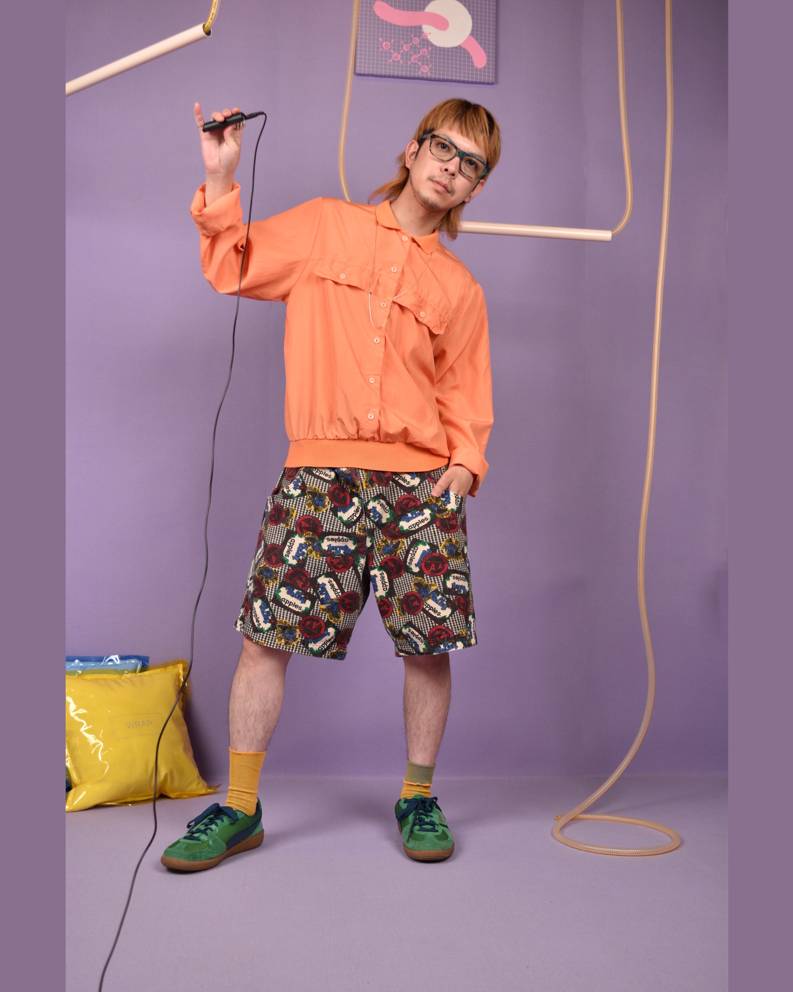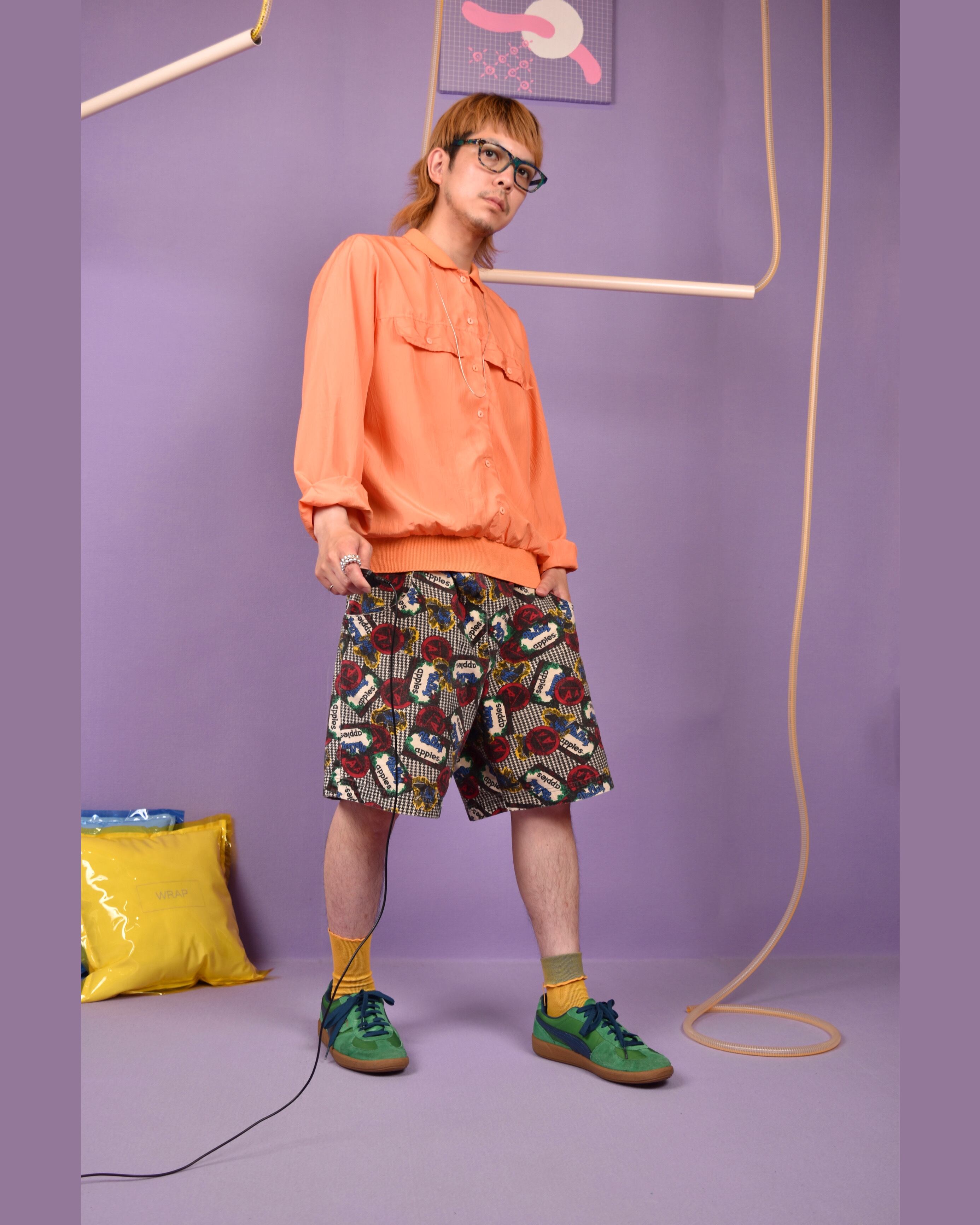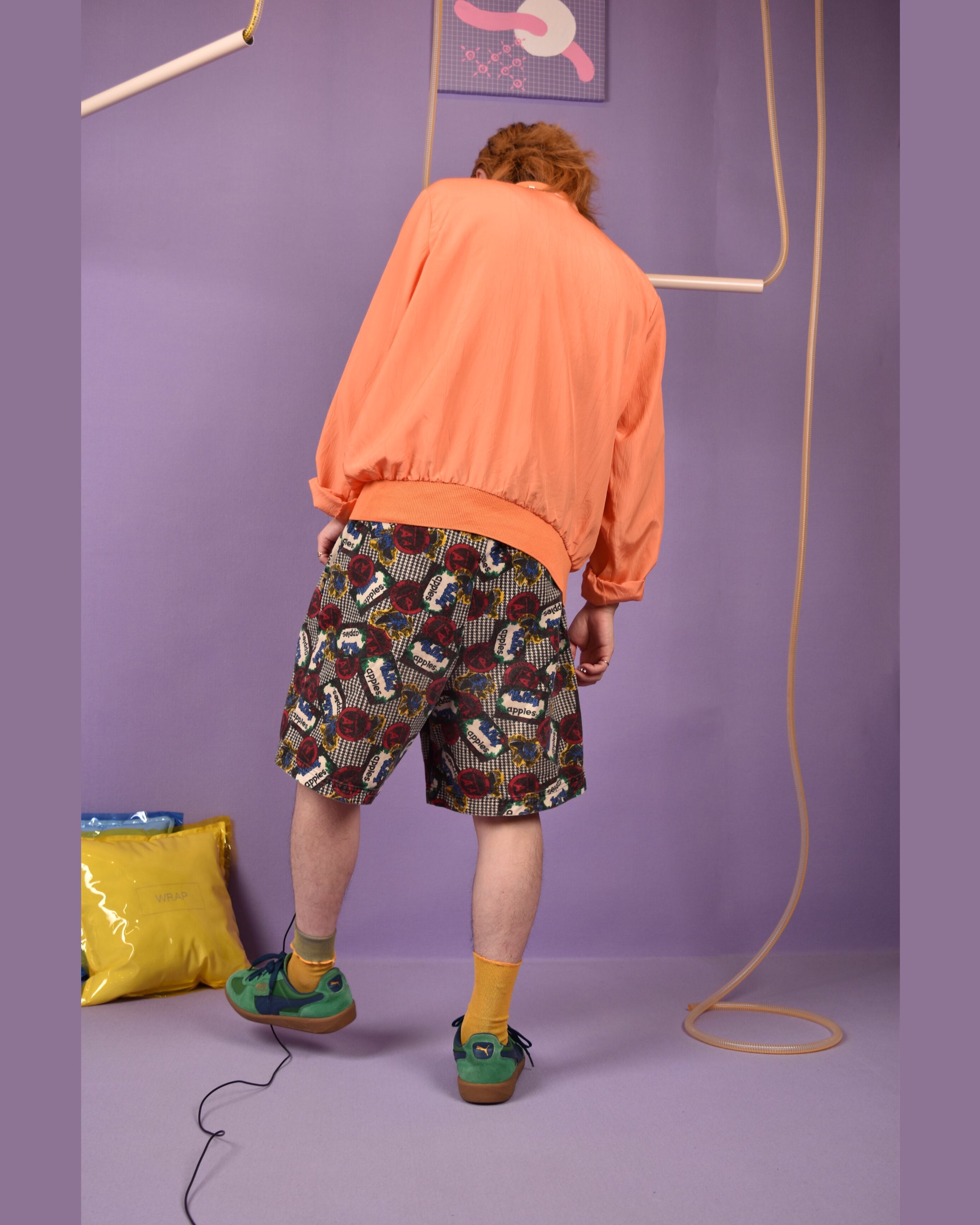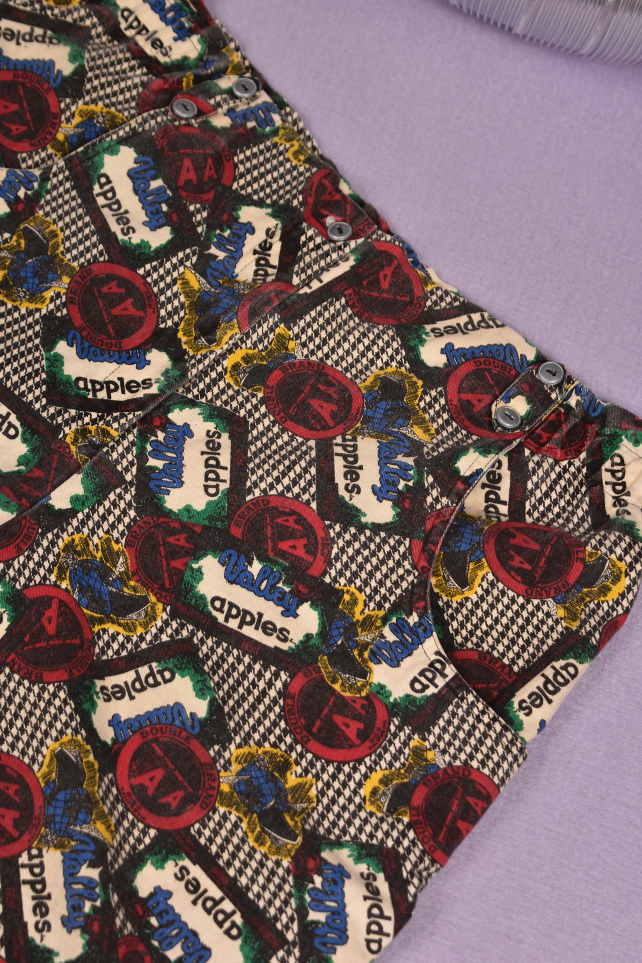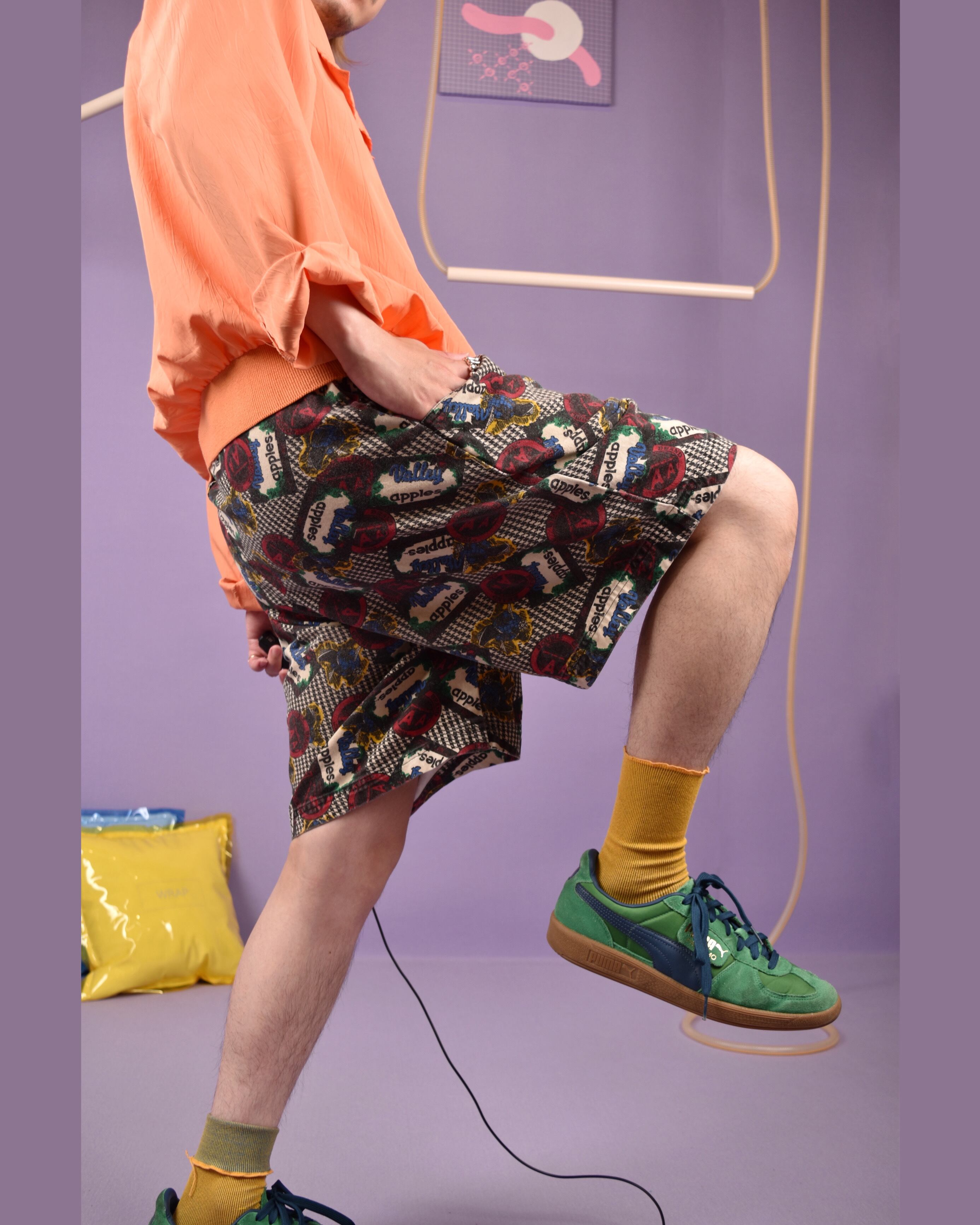 90年代総柄プリントのショーツです。レディースですがかなりサイズ感大きめなのでユニセックスで着用可能です。大きめのポケットやベルトループのデザインも素敵です。