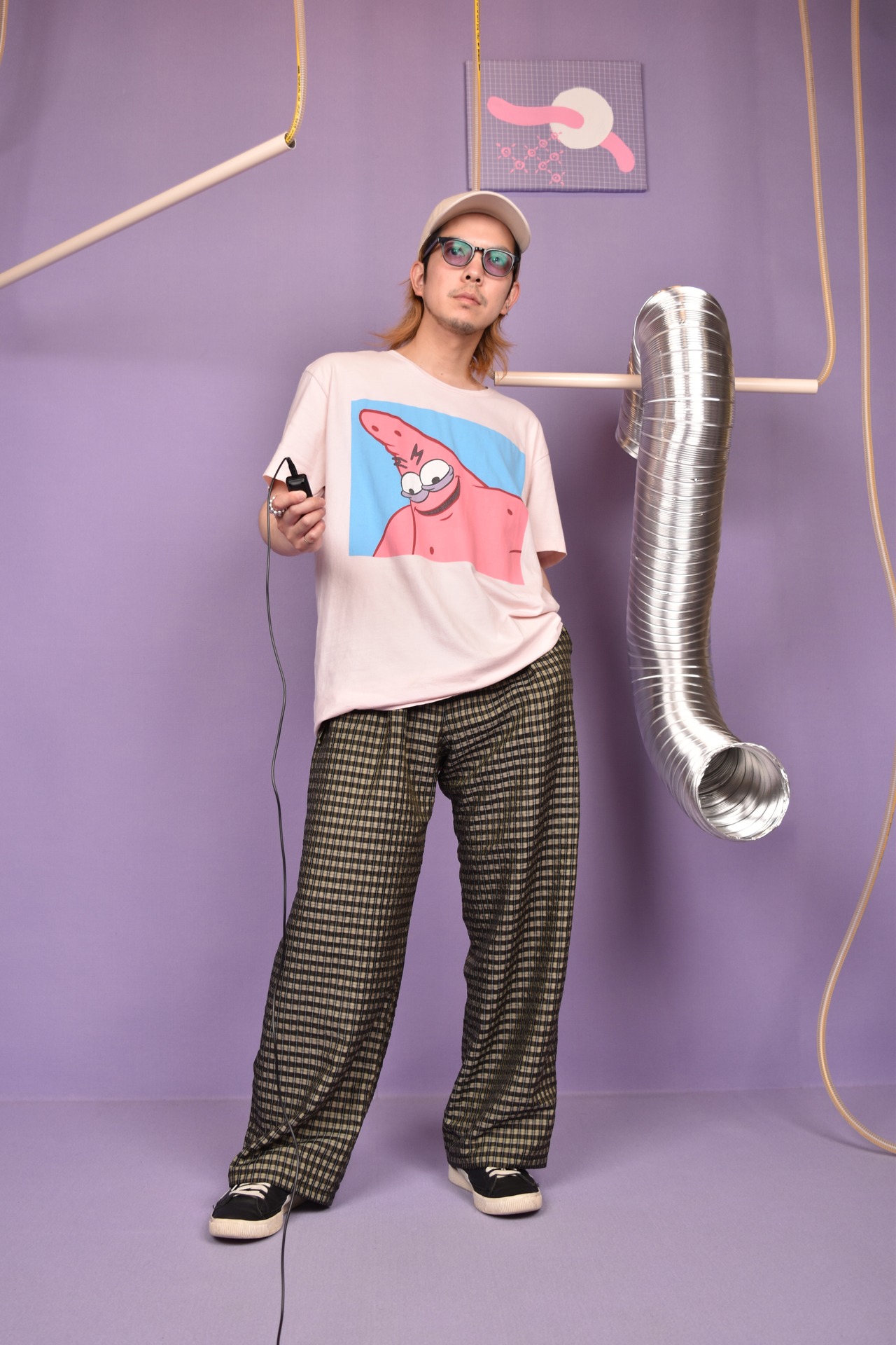スポンジボムのキャラクターがプリントされたTeeです。ボディカラーとプリントカラーの配色バランスがとても良いです。綺麗めなパンツと合わせたい一着です。