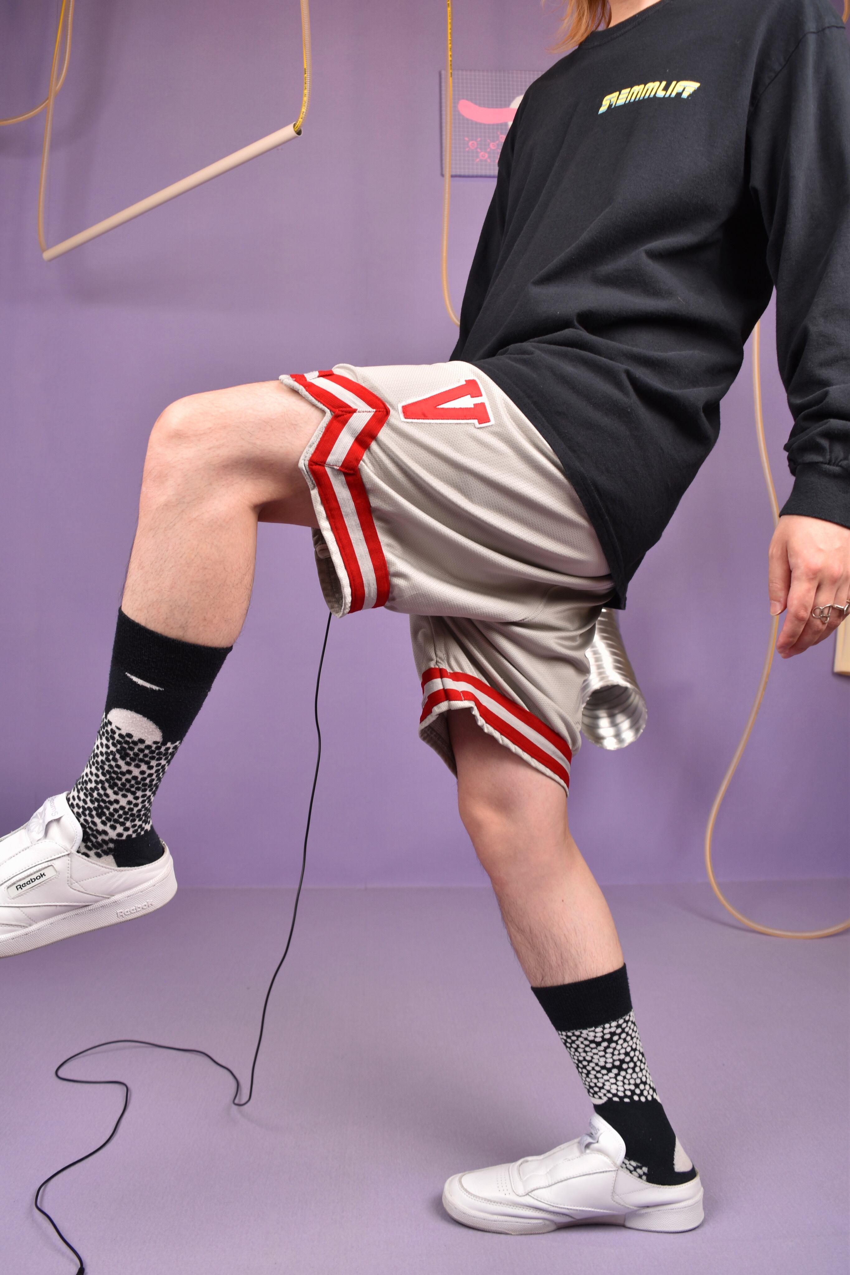 サイドのV字のデザイン、ウエストの太リブのデザインがイケてるショーツです。