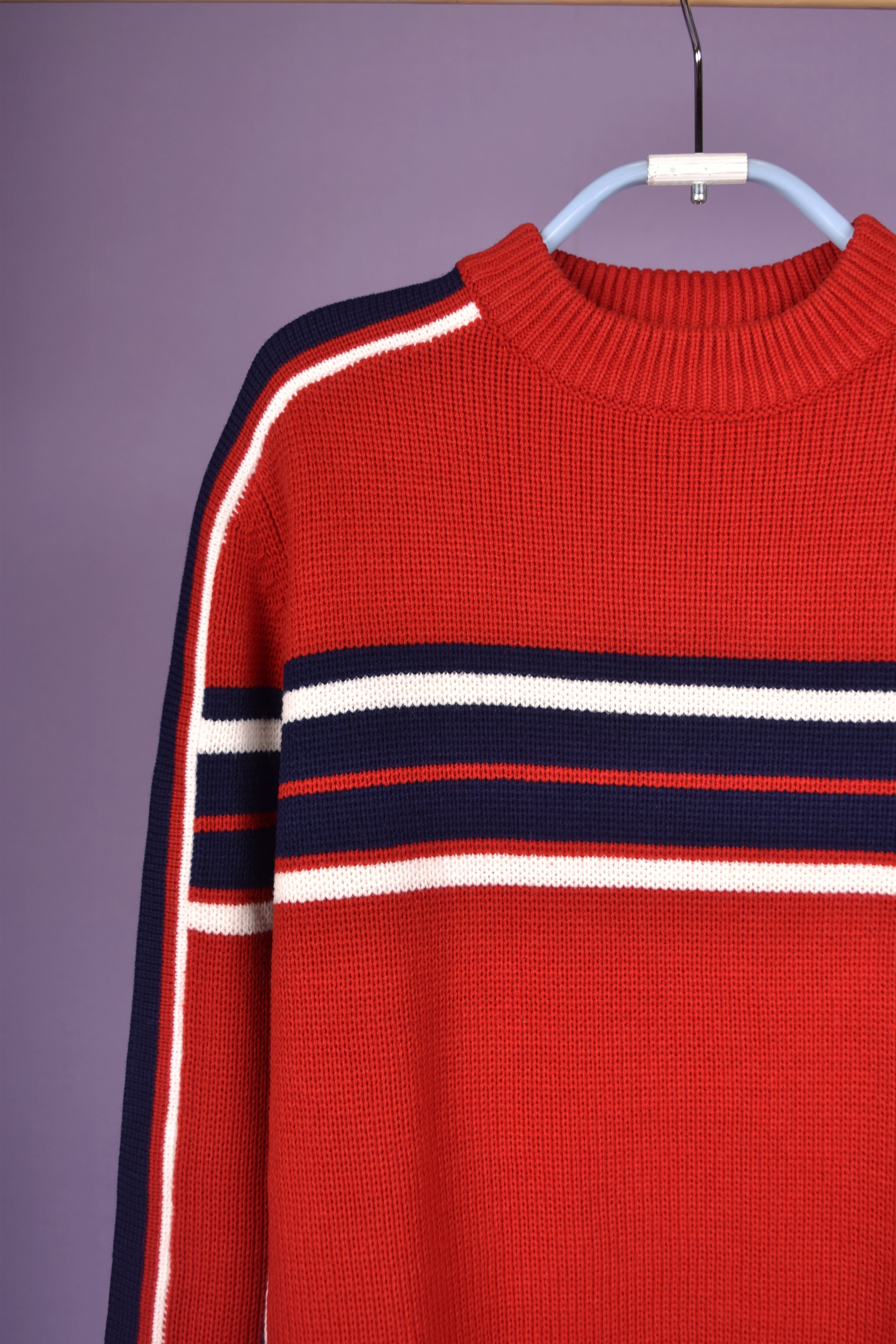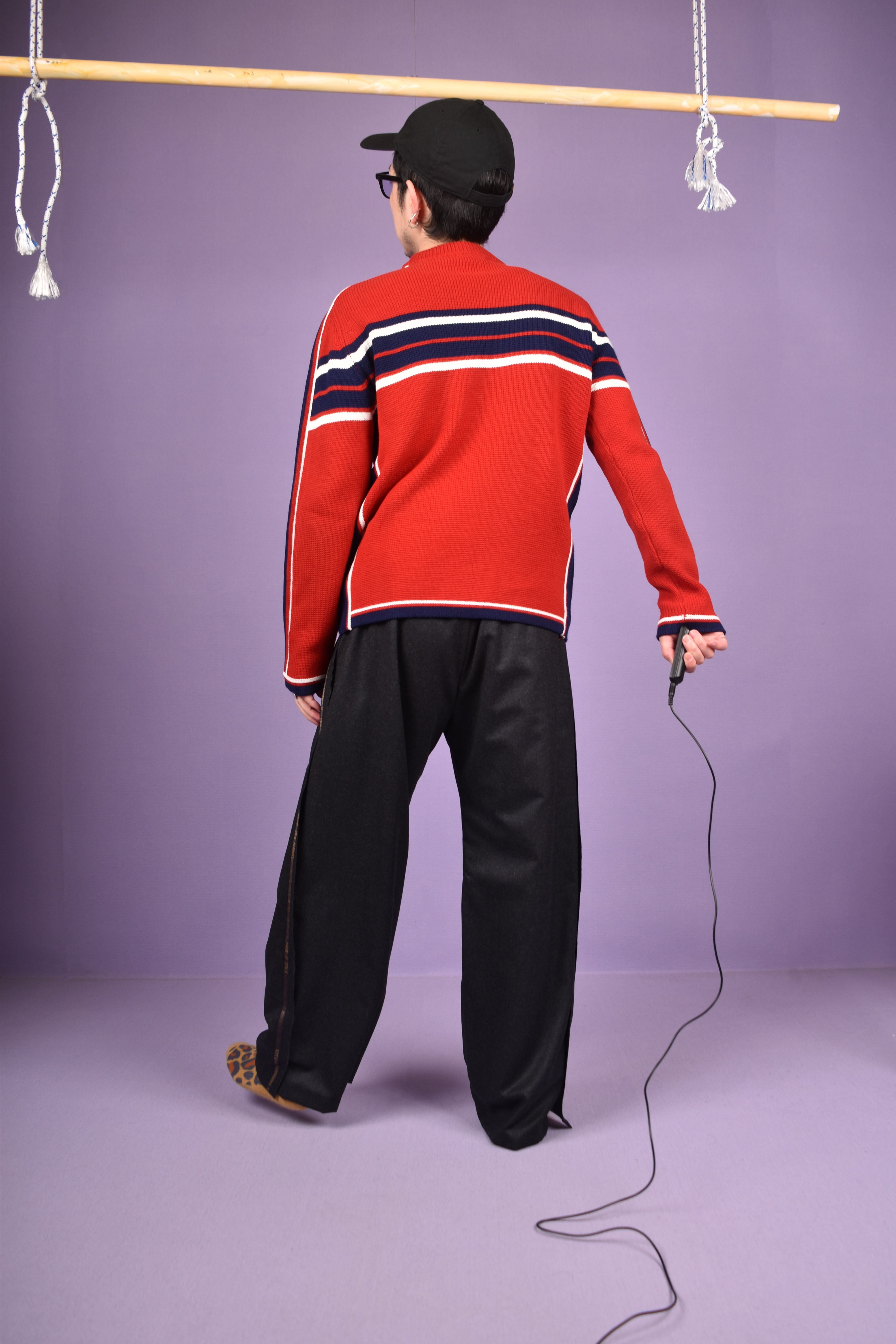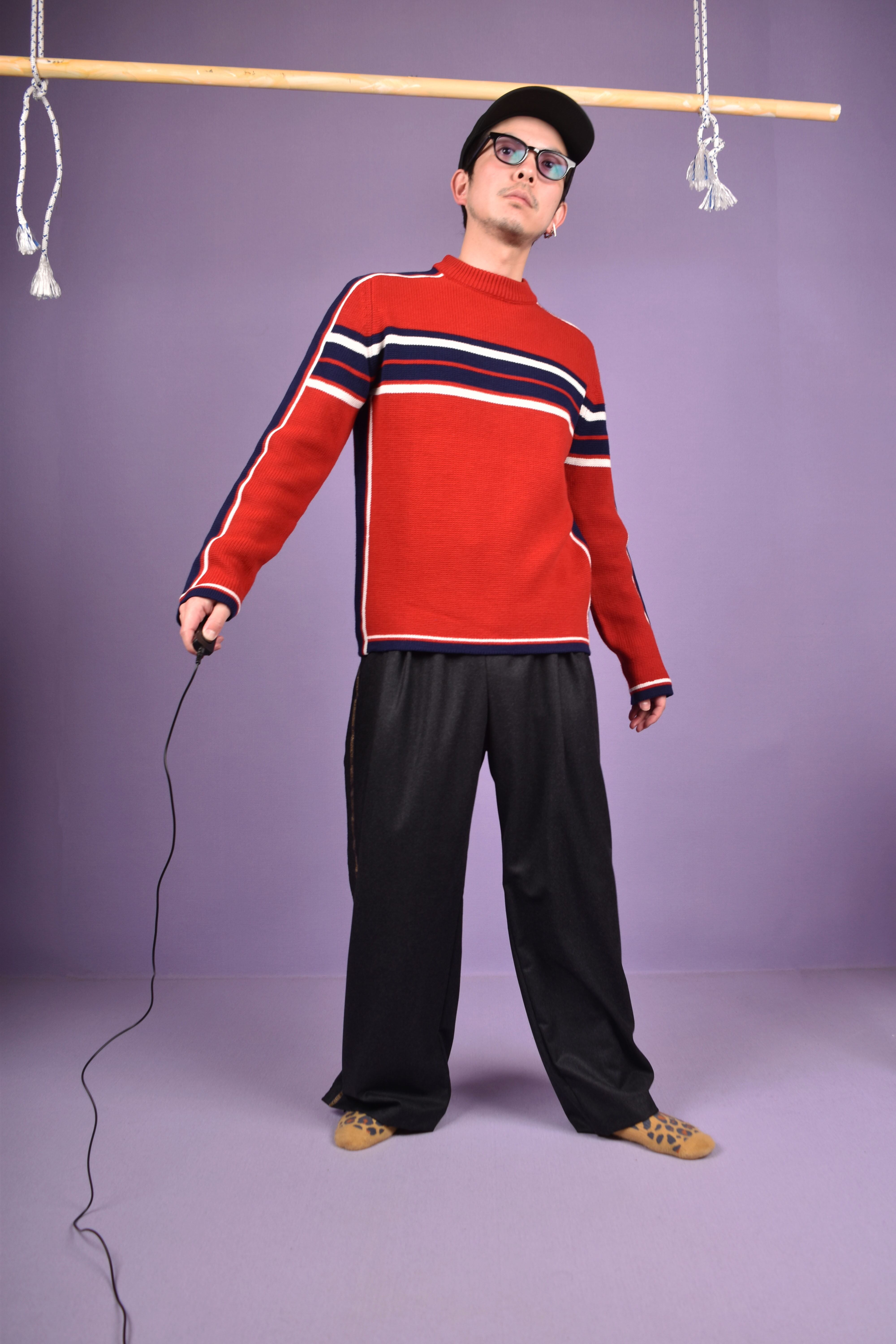 スクエア調のデザインのセーターです。タイトめなシルエットでスポーティandモードな印象です。ユニセックスで着用可能です。