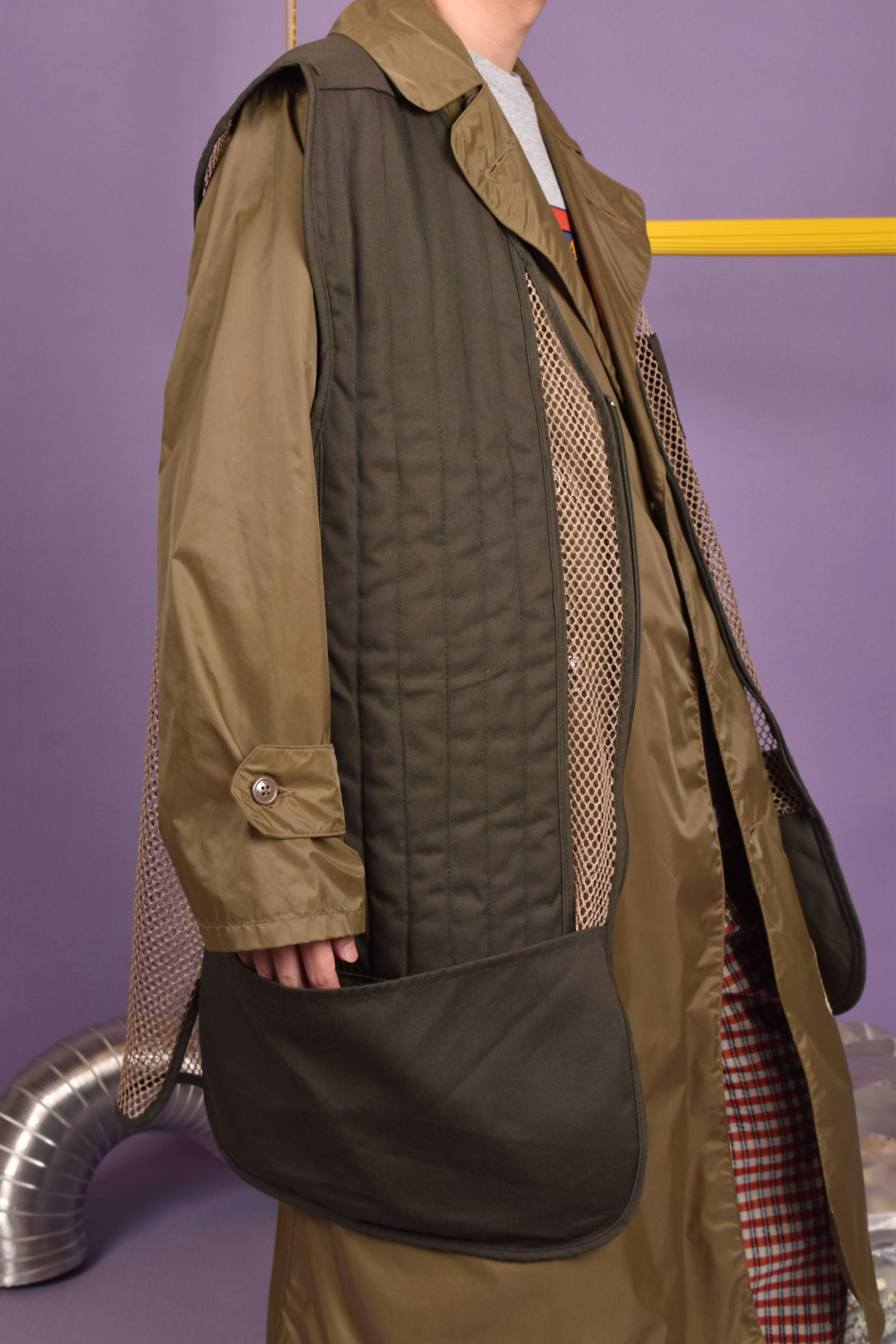 背中が全面メッシュになったハンティングベスト。かなりビッグサイズなのでアウターの上にも合わせられます。レイヤードスタイルが好きな方にはかなり重宝するアイテムだと思います!通年で活躍します。